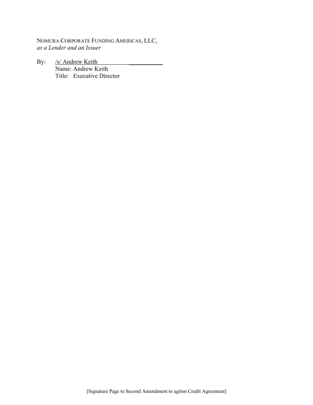 [Signature Page to Second Amendment to agilon Credit Agreement] NOMURA CORPORATE FUNDING AMERICAS, LLC, as a Lender and an Issuer By: /s/ Andrew Keith ___________ Name: Andrew Keith Title: Executive Director