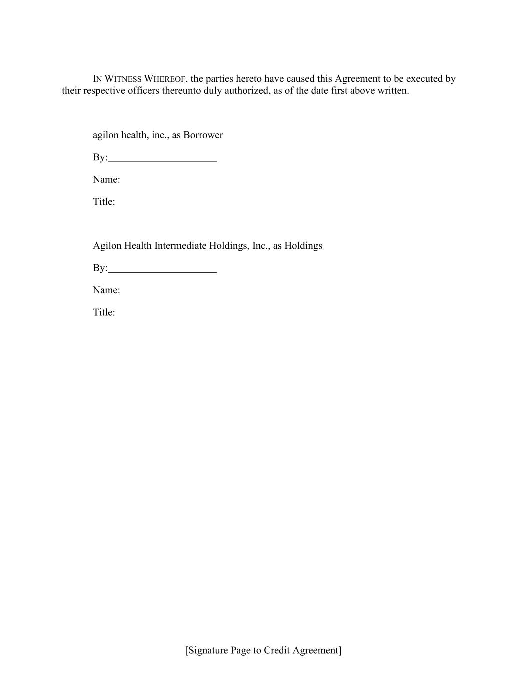 [Signature Page to Credit Agreement] IN WITNESS WHEREOF, the parties hereto have caused this Agreement to be executed by their respective officers thereunto duly authorized, as of the date first above written. agilon health, inc., as Borrower By: Name: Title: Agilon Health Intermediate Holdings, Inc., as Holdings By: Name: Title: