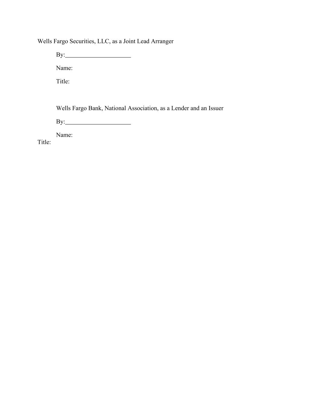 Wells Fargo Securities, LLC, as a Joint Lead Arranger By: Name: Title: Wells Fargo Bank, National Association, as a Lender and an Issuer By: Name: Title:
