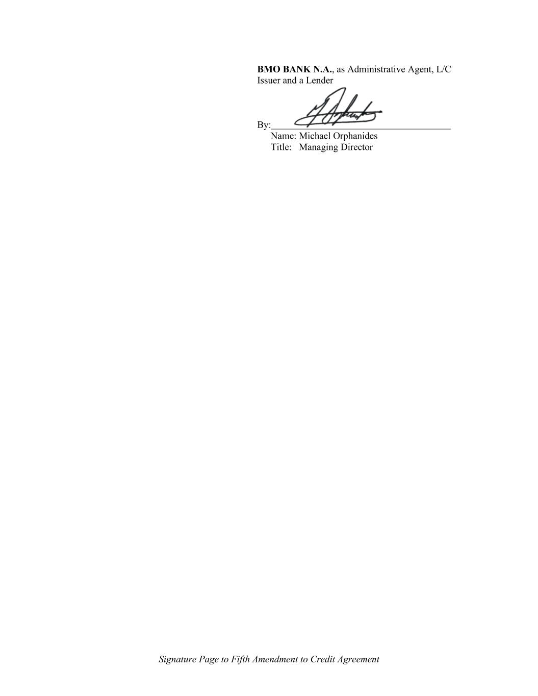 Signature Page to Fifth Amendment to Credit Agreement BMO BANK N.A., as Administrative Agent, L/C Issuer and a Lender By: Name: Michael Orphanides Title: Managing Director