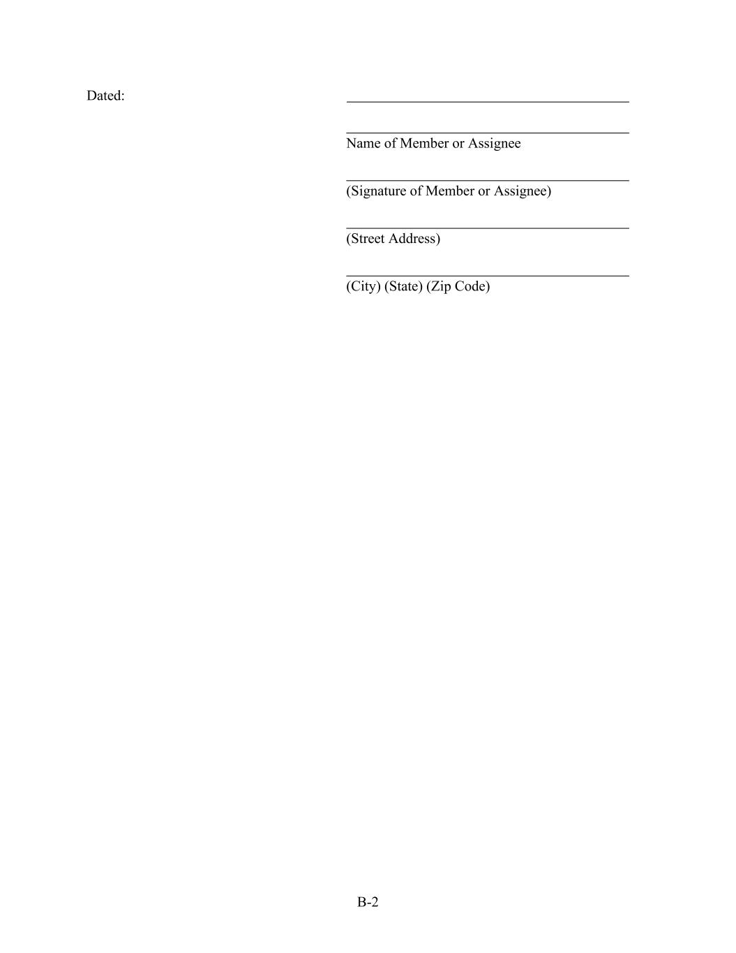 B-2 Dated: Name of Member or Assignee (Signature of Member or Assignee) (Street Address) (City) (State) (Zip Code)