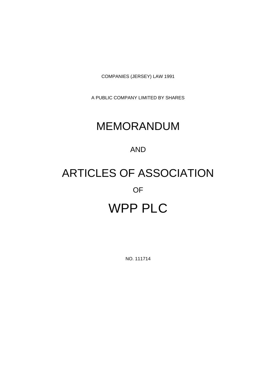 COMPANIES (JERSEY) LAW 1991 A PUBLIC COMPANY LIMITED BY SHARES MEMORANDUM AND ARTICLES OF ASSOCIATION OF WPP PLC NO. 111714