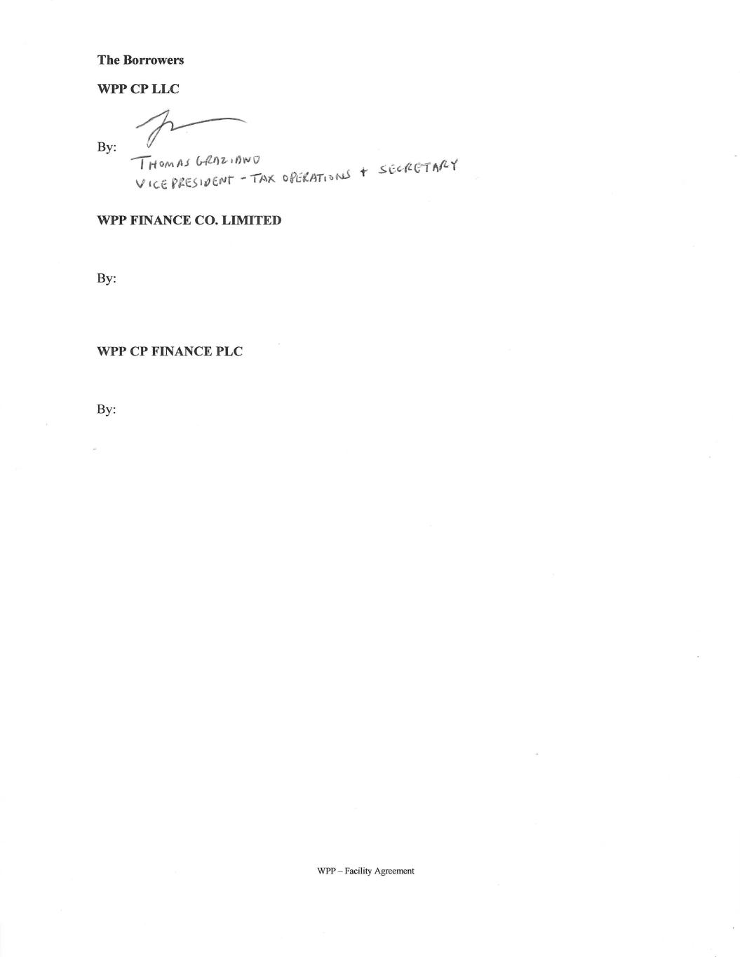 The Borrowers WPP CP LLC By: WPP FINANCE CO. LIMITED By: WPP CP FINANCE PLC By: \VPI’ — Facility Agreement Alexander Ashby Alexander Ashby