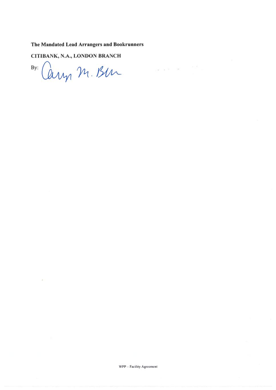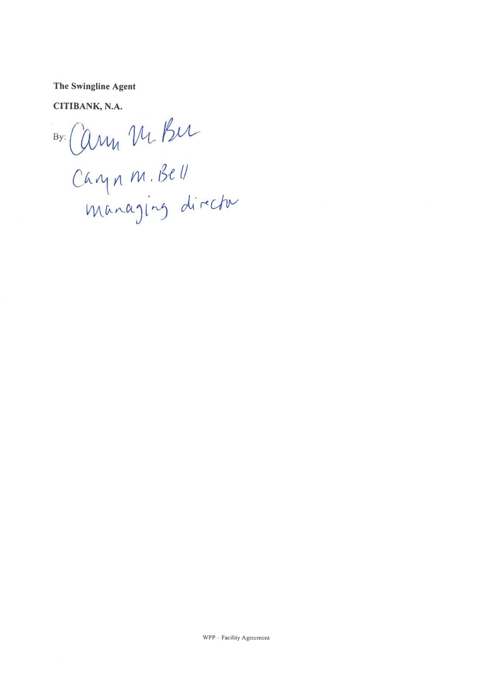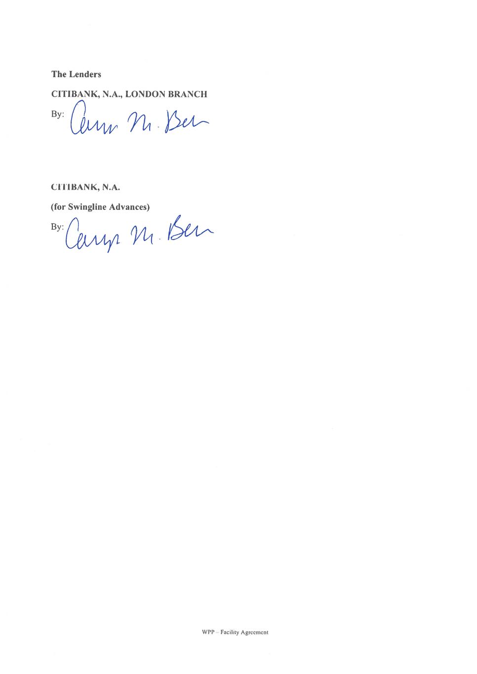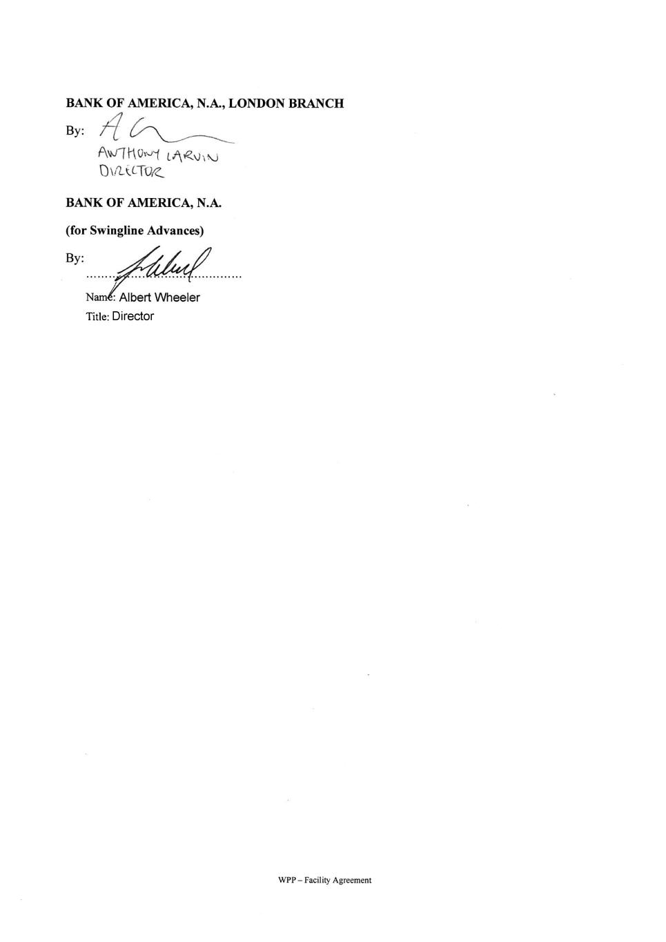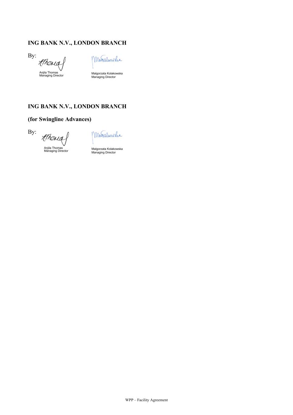 WPP – Facility Agreement ING BANK N.V., LONDON BRANCH By: ING BANK N.V., LONDON BRANCH (for Swingline Advances) By: Anjila Thomas Managing Director Anjila Thomas Managing Director Malgorzata Kolakowska Managing Director Malgorzata Kolakowska Managing Director