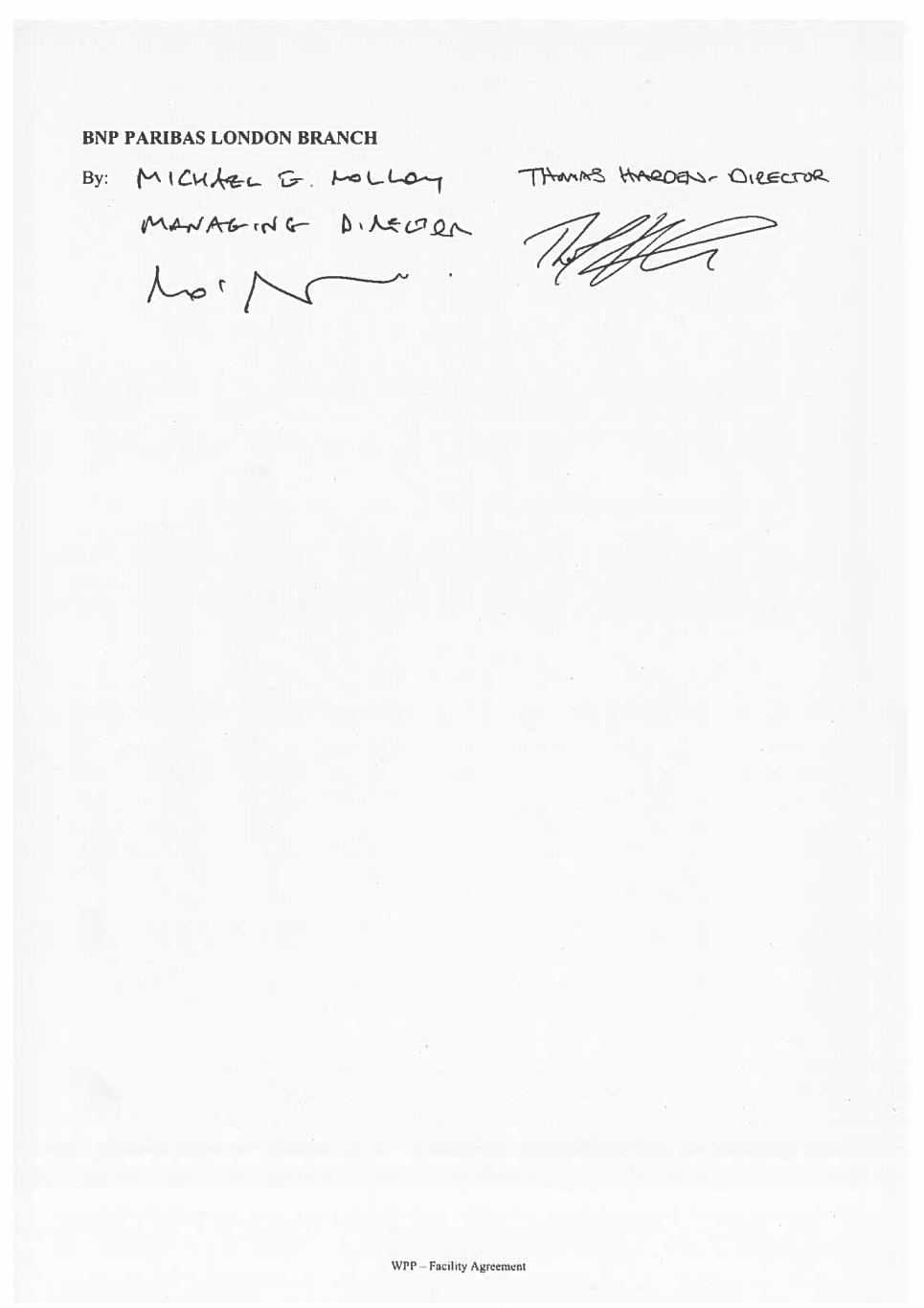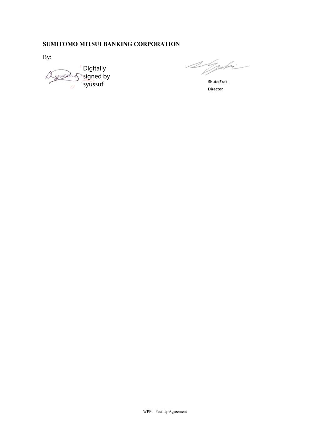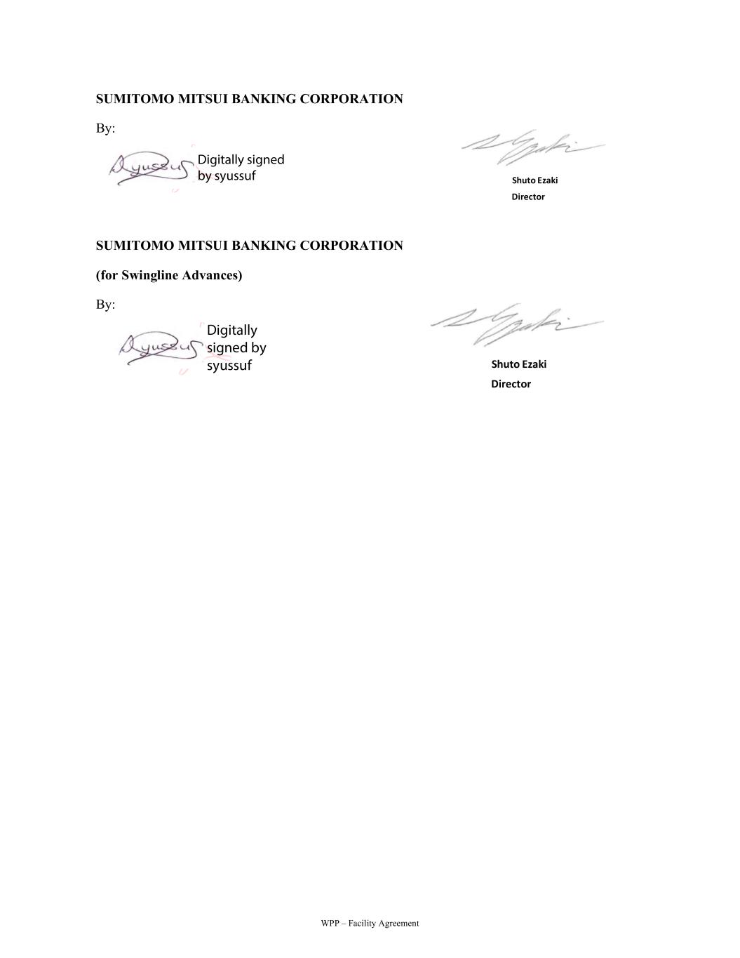 WPP – Facility Agreement SUMITOMO MITSUI BANKING CORPORATION By: SUMITOMO MITSUI BANKING CORPORATION (for Swingline Advances) By: Shuto Ezaki Director Shuto Ezaki Director