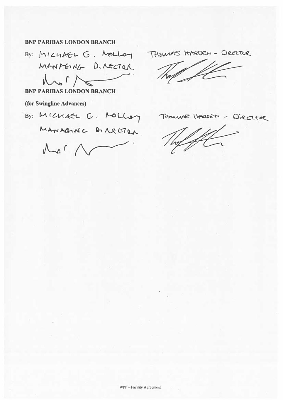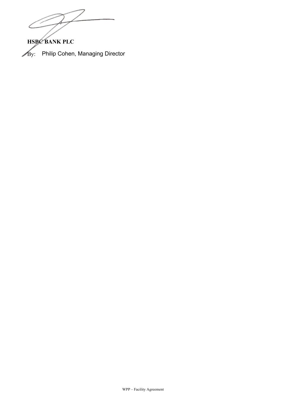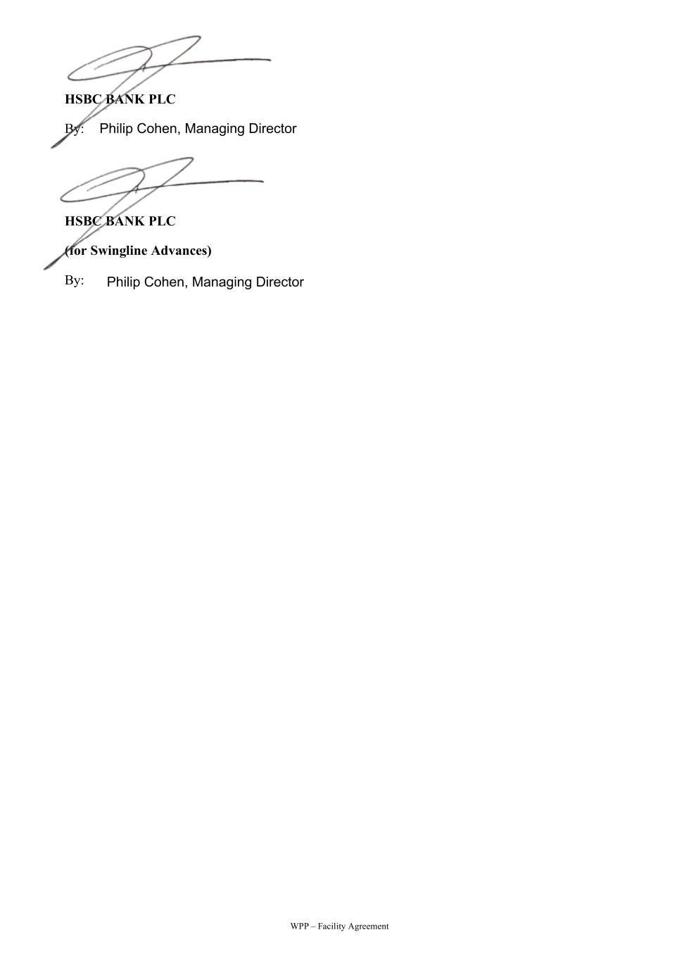 WPP – Facility Agreement HSBC BANK PLC By: HSBC BANK PLC (for Swingline Advances) By: Philip Cohen, Managing Director Philip Cohen, Managing Director