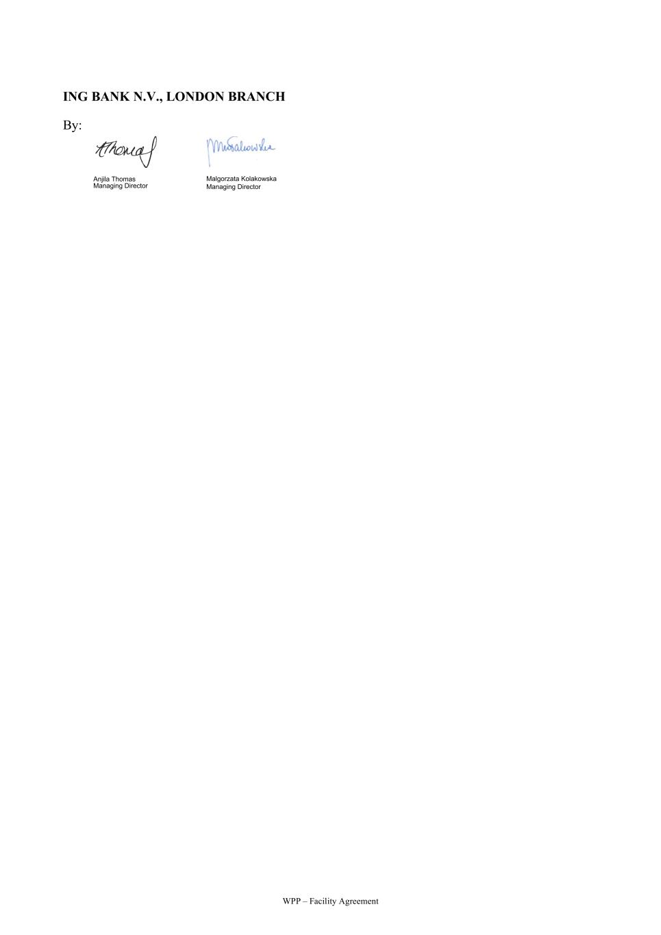 WPP – Facility Agreement ING BANK N.V., LONDON BRANCH By: Anjila Thomas Managing Director Malgorzata Kolakowska Managing Director