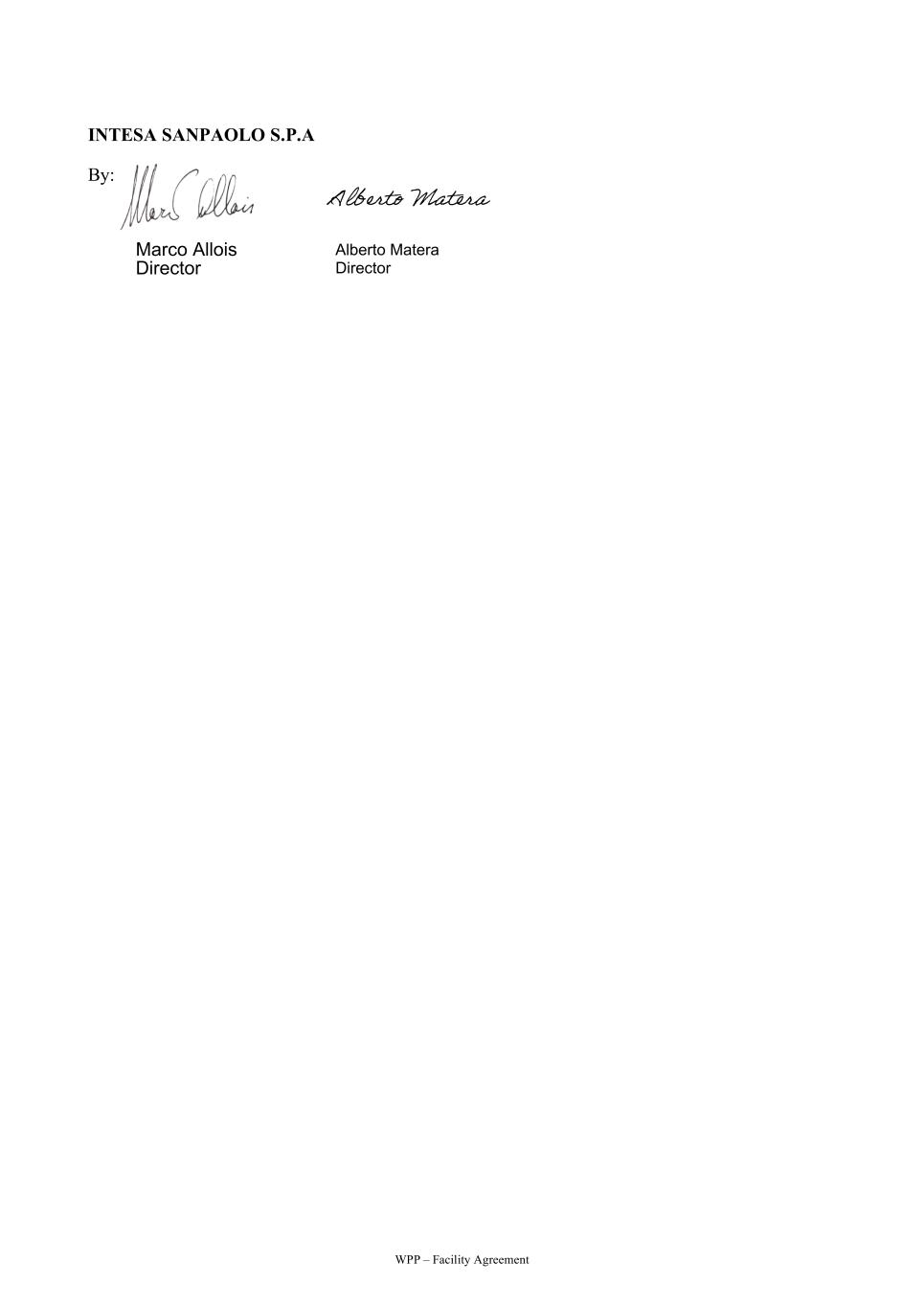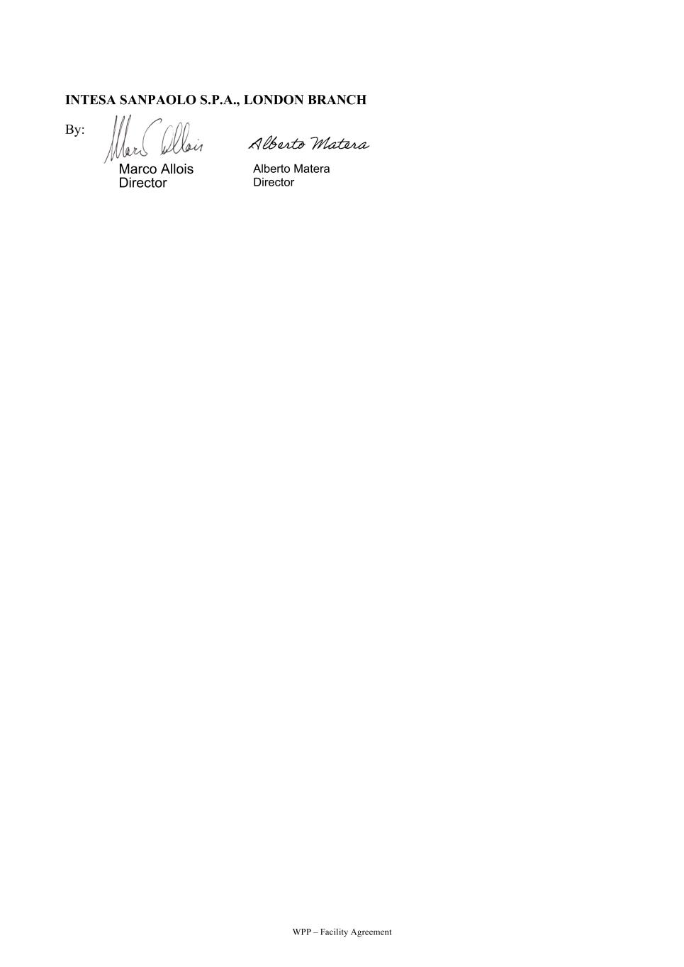 WPP – Facility Agreement INTESA SANPAOLO S.P.A., LONDON BRANCH By: Marco Allois Director Alberto Matera Director