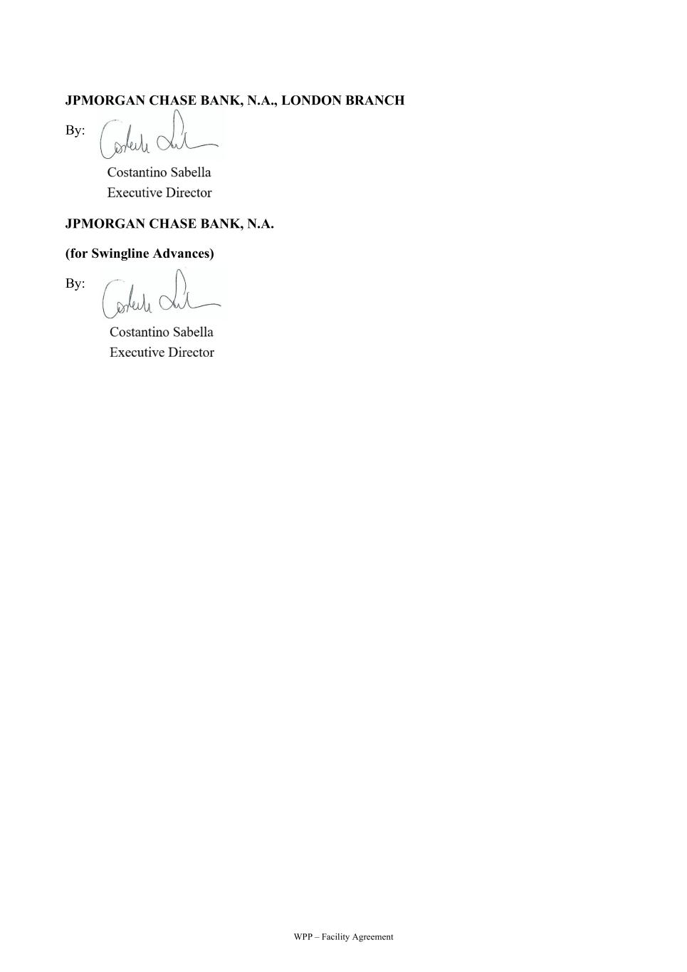 WPP – Facility Agreement JPMORGAN CHASE BANK, N.A., LONDON BRANCH By: JPMORGAN CHASE BANK, N.A. (for Swingline Advances) By: