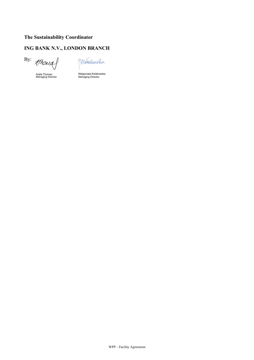 WPP – Facility Agreement The Sustainability Coordinator ING BANK N.V., LONDON BRANCH By: Anjila Thomas Managing Director Malgorzata Kolakowska Managing Director