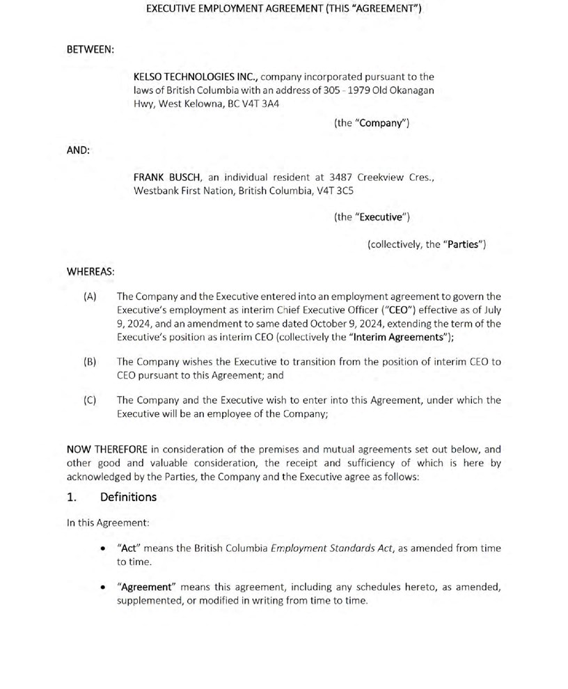 EX-4.1 2 exhibit4-1.htm EXHIBIT 4.1 Kelso Technologies Inc.: Exhibit 4.1 - Filed by newsfilecorp.com