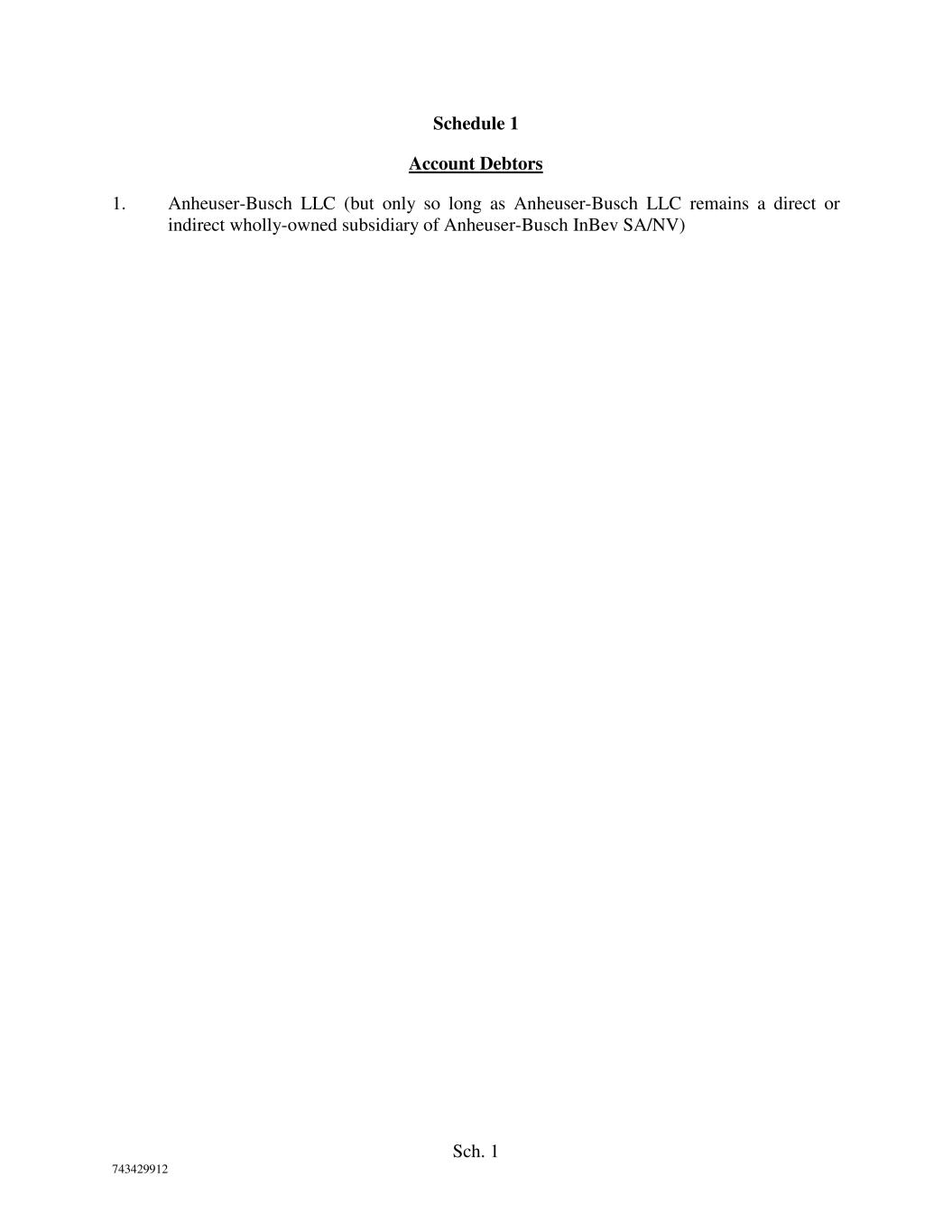 Sch. 1 743429912 Schedule 1 Account Debtors 1. Anheuser-Busch LLC (but only so long as Anheuser-Busch LLC remains a direct or indirect wholly-owned subsidiary of Anheuser-Busch InBev SA/NV)