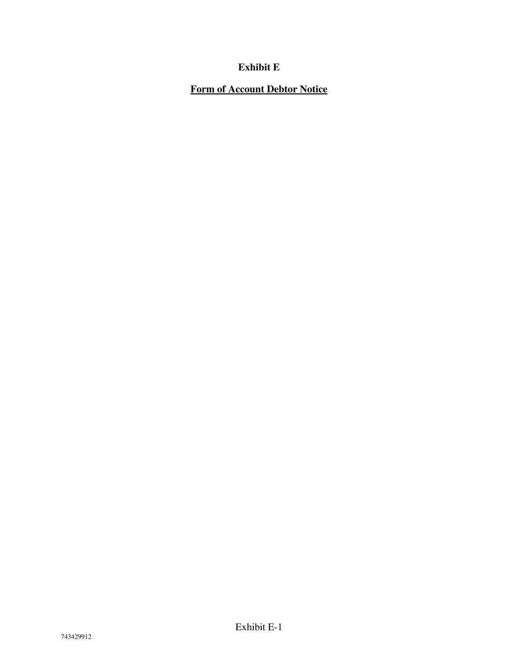 Exhibit E-1 743429912 Exhibit E Form of Account Debtor Notice