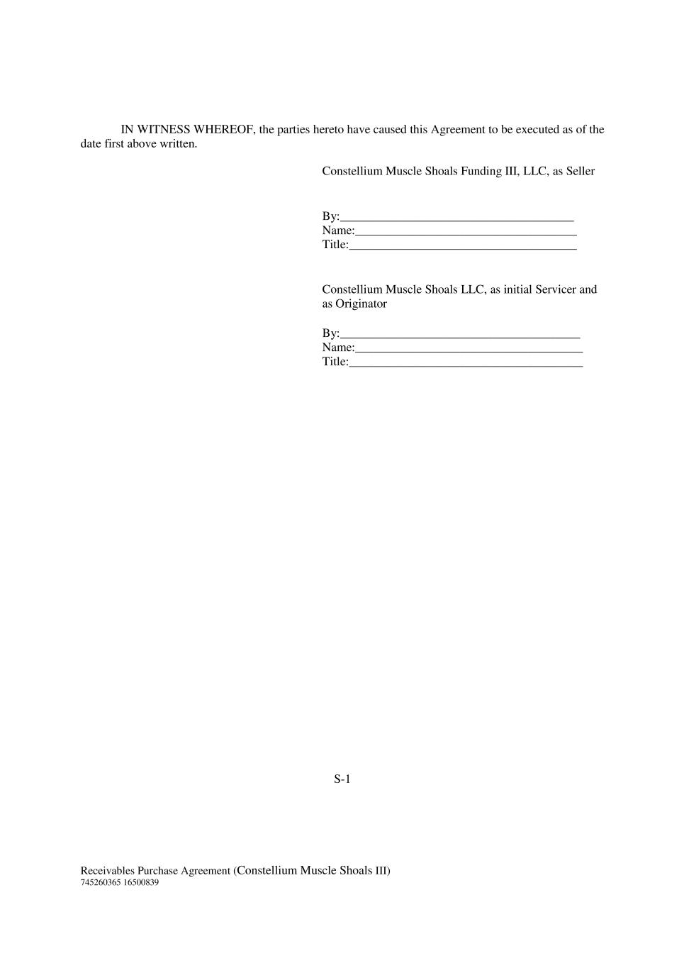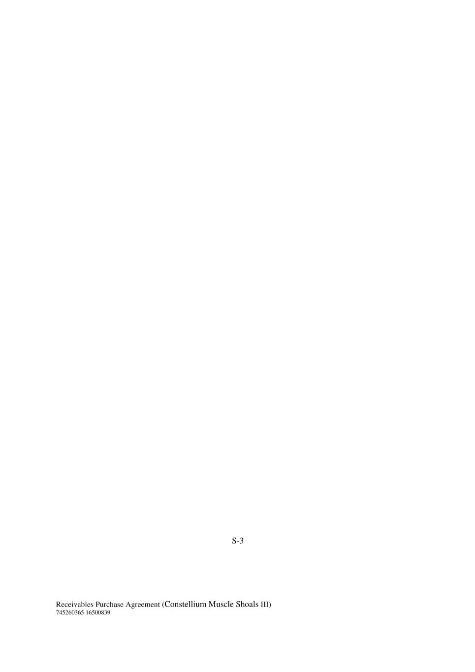 S-1 Receivables Purchase Agreement (Constellium Muscle Shoals III) 745260365 16500839 IN WITNESS WHEREOF, the parties hereto have caused this Agreement to be executed as of the date first above written. Constellium Muscle Shoals Funding III, LLC, as Seller By:______________________________________ Name:____________________________________ Title:_____________________________________ Constellium Muscle Shoals LLC, as initial Servicer and as Originator By:_______________________________________ Name:_____________________________________ Title:______________________________________