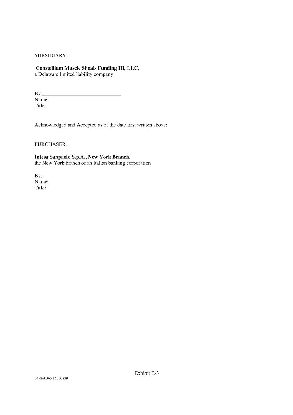 Exhibit E-3 745260365 16500839 SUBSIDIARY: Constellium Muscle Shoals Funding III, LLC, a Delaware limited liability company By: Name: Title: Acknowledged and Accepted as of the date first written above: PURCHASER: Intesa Sanpaolo S.p.A., New York Branch, the New York branch of an Italian banking corporation By: Name: Title: