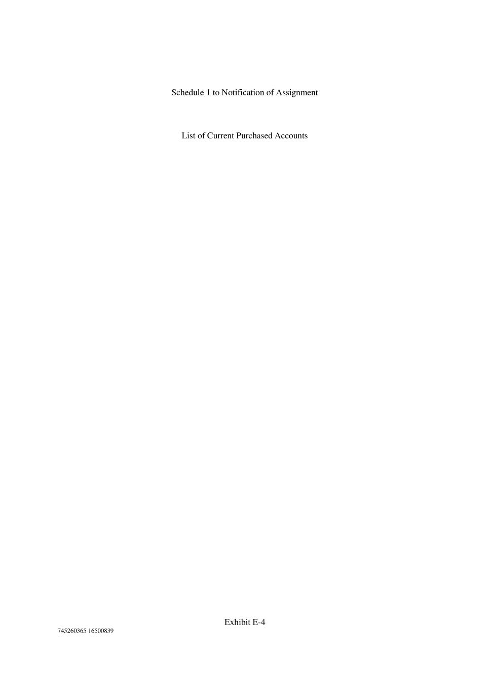 Exhibit E-4 745260365 16500839 Schedule 1 to Notification of Assignment List of Current Purchased Accounts