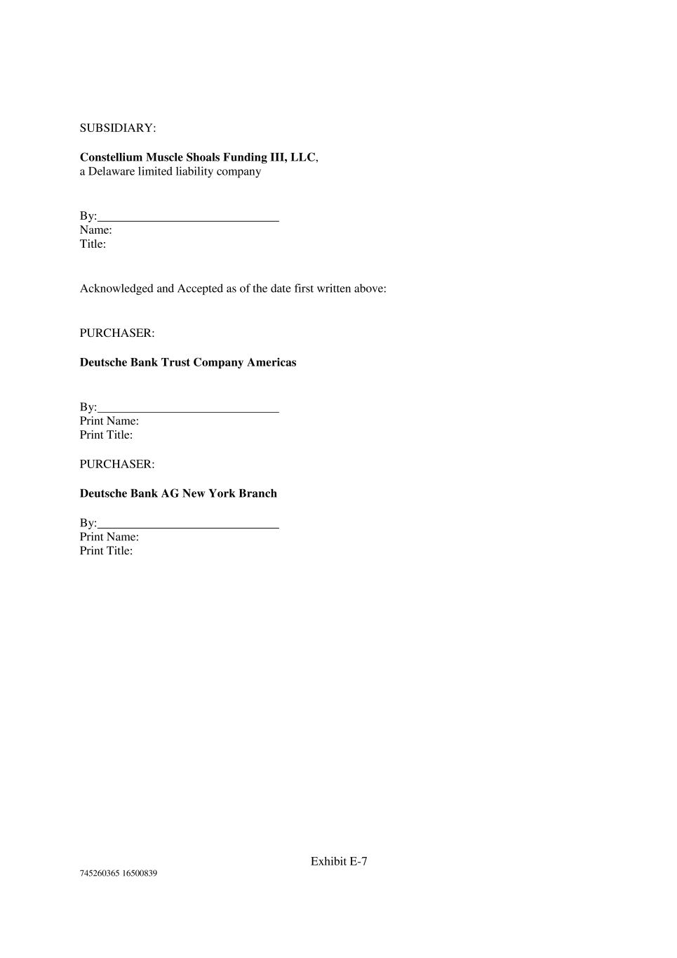 Exhibit E-7 745260365 16500839 SUBSIDIARY: Constellium Muscle Shoals Funding III, LLC, a Delaware limited liability company By: Name: Title: Acknowledged and Accepted as of the date first written above: PURCHASER: Deutsche Bank Trust Company Americas By: Print Name: Print Title: PURCHASER: Deutsche Bank AG New York Branch By: Print Name: Print Title: