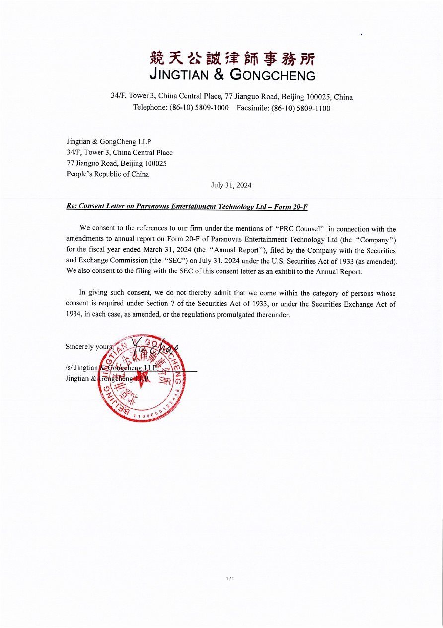 EX-99.1 19 pavs_ex991.htm CONSENT pavs_ex991.htm