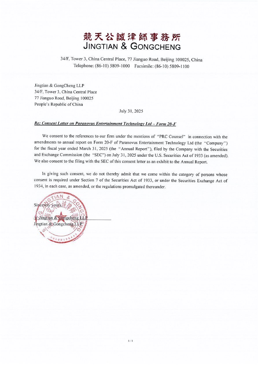 EX-99.1 7 pavs_ex991.htm CONSENT pavs_ex991.htm