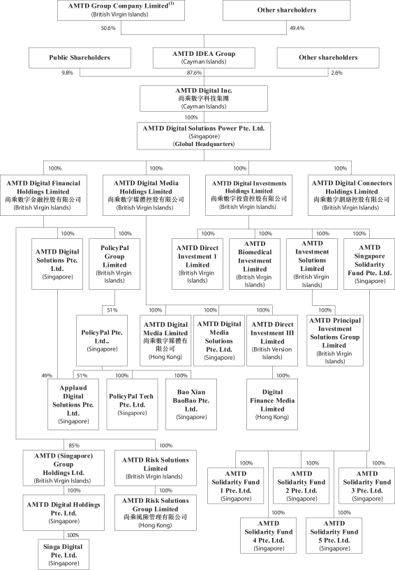| • | “we,” “us,” “our company,” or “our” refers to AMTD Digital Inc., a Cayman Islands exempted company with limited liability, and its subsidiaries. |