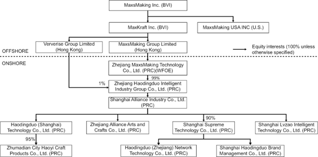 | “WFOE” or “Zhejiang MaxsMaking” | Zhejiang MaxsMaking Technology Co., Ltd., a limited liability company organized under the laws of China, which is wholly owned by MaxsMaking HK. | |