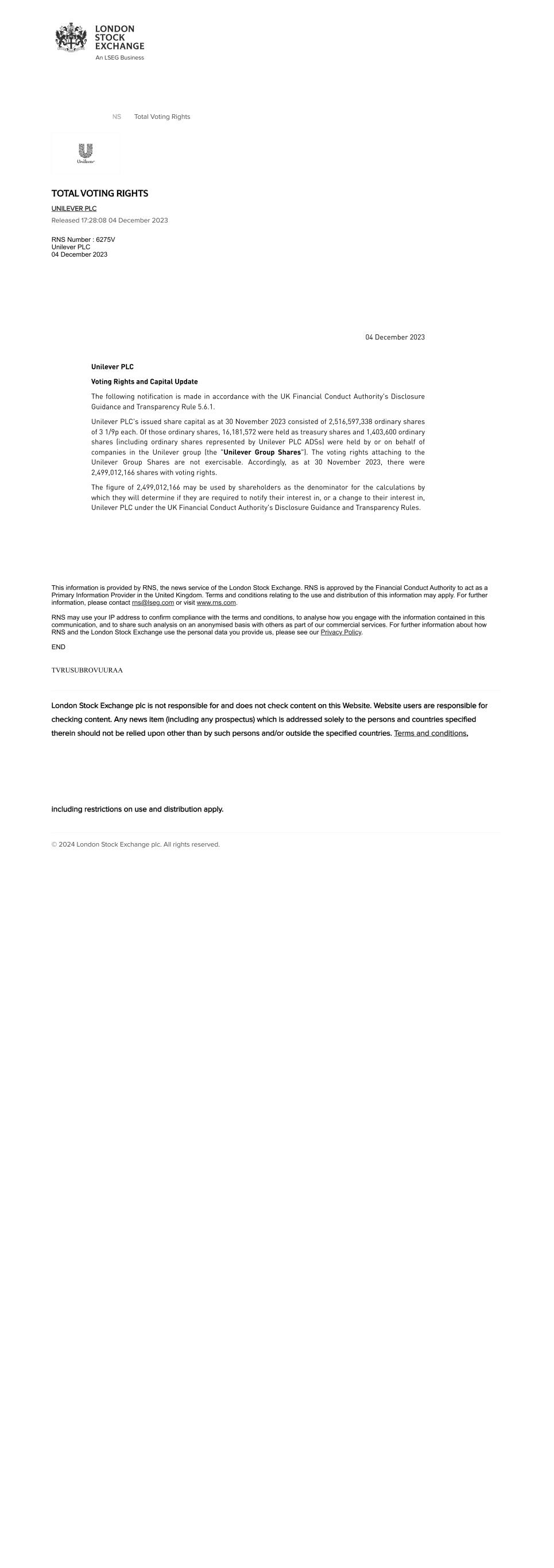 EX-99.1 2 a991-totalvotingrights.htm EX-99.1 a991-totalvotingrights