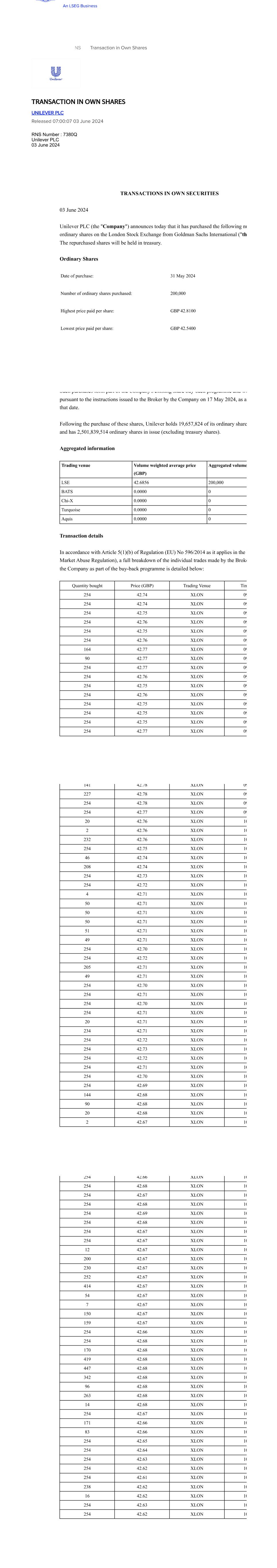 EX-99.1 2 a991-transactioninownsha.htm EX-99.1 a991-transactioninownsha
