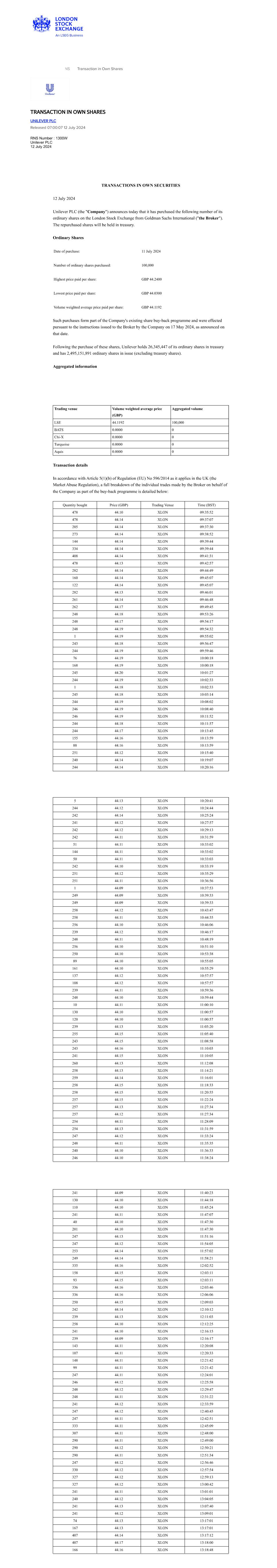 EX-99.12 12 a9912-transactioninownsh.htm EX-99.12 a9912-transactioninownsh