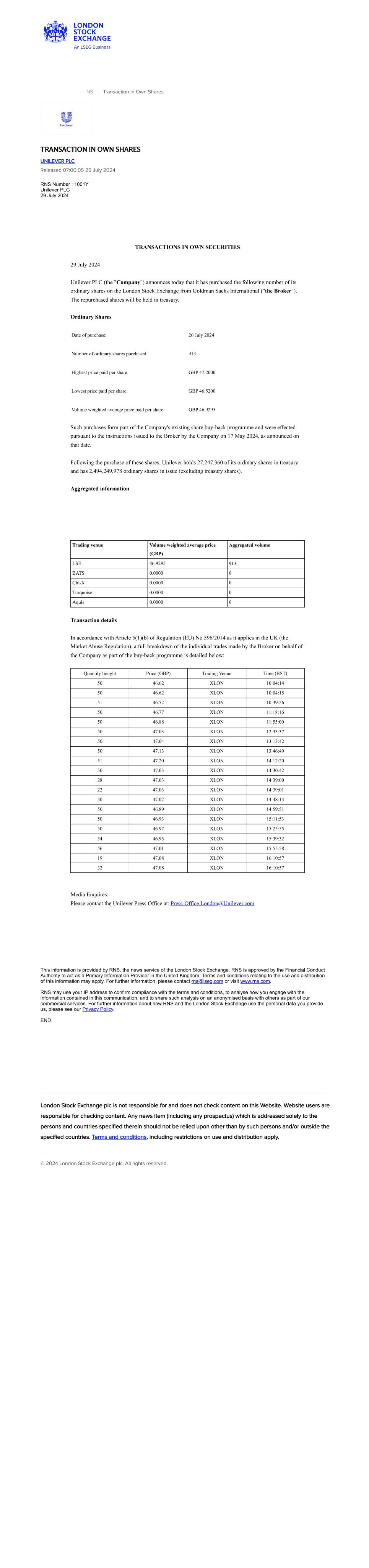 EX-99.25 25 a9925-transactioninownsh.htm EX-99.25 a9925-transactioninownsh