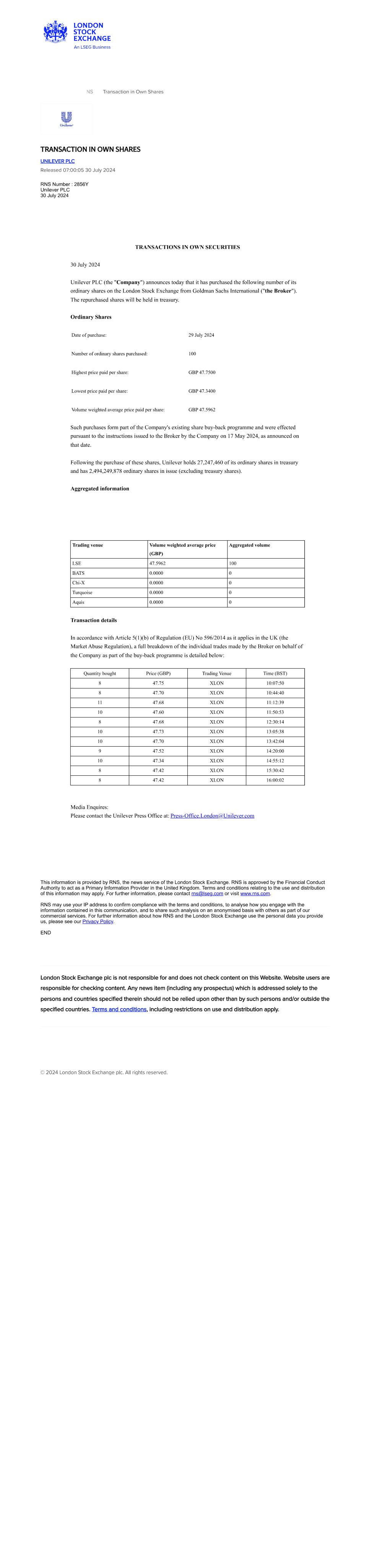 EX-99.26 26 a9926-transactioninownsh.htm EX-99.26 a9926-transactioninownsh