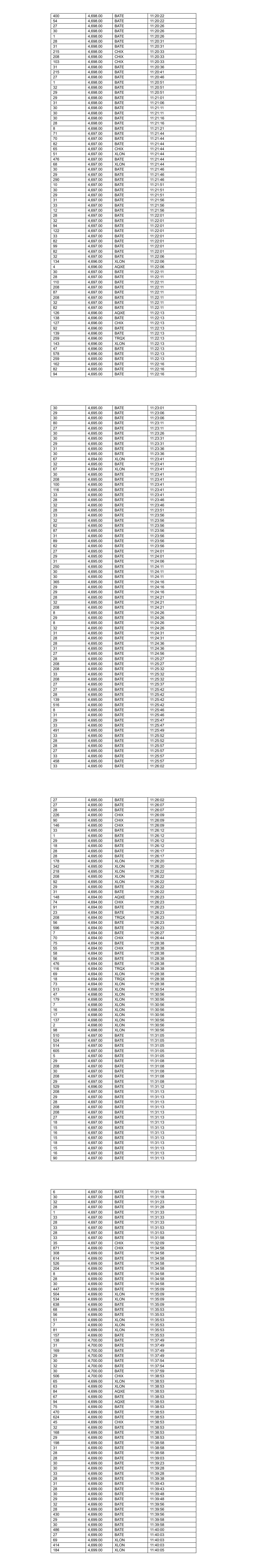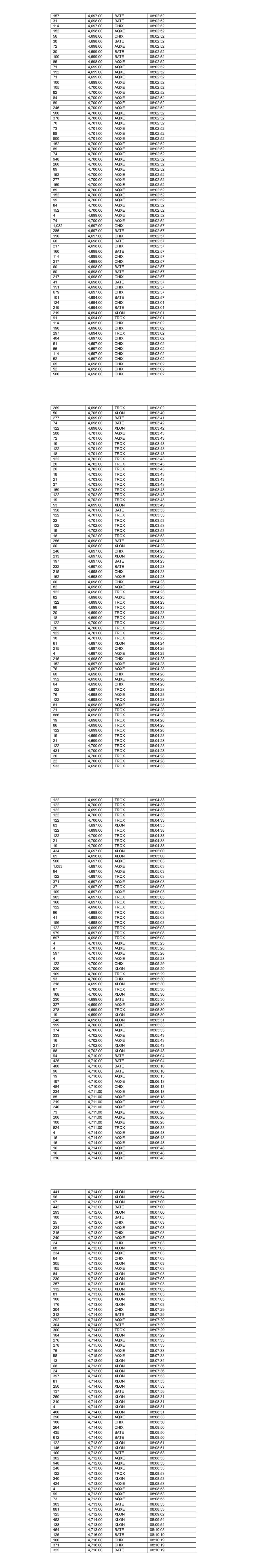 203 4,699.00 XLON 11:40:05 96 4,699.00 XLON 11:40:05 31 4,699.00 BATE 11:40:08 32 4,699.00 BATE 11:40:08 28 4,699.00 BATE 11:40:13 27 4,699.00 BATE 11:40:18 1 4,699.00 BATE 11:40:18 30 4,699.00 BATE 11:40:18 30 4,699.00 BATE 11:40:23 31 4,699.00 BATE 11:40:23 33 4,699.00 BATE 11:40:33 33 4,699.00 BATE 11:40:33 33 4,699.00 BATE 11:40:38 27 4,699.00 BATE 11:40:38 27 4,699.00 BATE 11:40:43 81 4,699.00 BATE 11:40:43 29 4,699.00 BATE 11:40:43 8 4,699.00 BATE 11:40:53 31 4,699.00 BATE 11:40:53 27 4,699.00 BATE 11:40:53 94 4,699.00 TRQX 11:40:54 94 4,699.00 TRQX 11:40:54 94 4,699.00 TRQX 11:40:54 94 4,699.00 TRQX 11:40:54 37 4,699.00 TRQX 11:40:54 80 4,699.00 TRQX 11:40:54 28 4,699.00 BATE 11:40:58 32 4,699.00 BATE 11:41:14 130 4,699.00 BATE 11:41:39 30 4,699.00 BATE 11:41:39 28 4,699.00 BATE 11:41:44 83 4,698.00 AQXE 11:41:44 32 4,699.00 BATE 11:41:44 81 4,698.00 AQXE 11:41:44 208 4,699.00 BATE 11:41:44 208 4,699.00 BATE 11:41:44 100 4,699.00 BATE 11:41:44 6 4,699.00 BATE 11:41:44 31 4,699.00 BATE 11:41:44 63 4,698.00 BATE 11:41:44 41 4,698.00 AQXE 11:41:44 52 4,698.00 BATE 11:41:44 58 4,698.00 CHIX 11:41:44 58 4,698.00 BATE 11:41:44 76 4,698.00 XLON 11:41:44 61 4,698.00 XLON 11:41:44 30 4,698.00 BATE 11:41:54 139 4,698.00 BATE 11:41:54 28 4,698.00 BATE 11:41:54 33 4,698.00 BATE 11:41:59 30 4,698.00 BATE 11:41:59 33 4,698.00 BATE 11:42:04 27 4,698.00 BATE 11:42:04 30 4,698.00 BATE 11:42:09 28 4,698.00 BATE 11:42:09 30 4,698.00 BATE 11:42:14 31 4,698.00 BATE 11:42:14 31 4,698.00 BATE 11:42:19 30 4,698.00 BATE 11:42:19 100 4,698.00 BATE 11:42:19 30 4,698.00 BATE 11:42:24 32 4,698.00 BATE 11:42:24 28 4,698.00 BATE 11:42:29 29 4,698.00 BATE 11:42:29 30 4,698.00 BATE 11:42:34 27 4,698.00 BATE 11:42:34 81 4,698.00 BATE 11:42:34 314 4,697.00 CHIX 11:42:35 138 4,697.00 XLON 11:42:35 111 4,697.00 XLON 11:42:35 29 4,698.00 BATE 11:42:39 31 4,698.00 BATE 11:42:39 100 4,698.00 BATE 11:42:39 29 4,698.00 BATE 11:42:44 33 4,698.00 BATE 11:42:44 29 4,698.00 BATE 11:42:49 27 4,698.00 BATE 11:42:49 8 4,698.00 BATE 11:42:49 92 4,698.00 BATE 11:42:49 30 4,698.00 BATE 11:42:54 29 4,698.00 BATE 11:42:54 6 4,698.00 BATE 11:42:54 32 4,698.00 BATE 11:42:54 135 4,697.00 XLON 11:42:57 81 4,697.00 BATE 11:42:57 13 4,697.00 XLON 11:42:57 106 4,697.00 XLON 11:42:57 30 4,698.00 BATE 11:42:59 81 4,697.00 BATE 11:42:59 31 4,698.00 BATE 11:42:59 81 4,698.00 BATE 11:42:59 100 4,698.00 BATE 11:42:59 30 4,698.00 BATE 11:43:04 27 4,698.00 BATE 11:43:04 32 4,698.00 BATE 11:43:09 33 4,698.00 BATE 11:43:09 39 4,698.00 BATE 11:43:09 122 4,698.00 BATE 11:43:09 27 4,698.00 BATE 11:43:09 30 4,698.00 BATE 11:43:14 31 4,698.00 BATE 11:43:14 29 4,698.00 BATE 11:43:14 33 4,698.00 BATE 11:43:14 202 4,698.00 BATE 11:43:14 231 4,698.00 BATE 11:43:14 27 4,698.00 BATE 11:43:19 81 4,698.00 BATE 11:43:19 28 4,698.00 BATE 11:43:19 11 4,698.00 BATE 11:43:24 47 4,696.00 XLON 11:44:02 49 4,696.00 XLON 11:44:02 11 4,697.00 BATE 11:44:35 1 4,697.00 BATE 11:44:35 82 4,697.00 BATE 11:44:35 404 4,697.00 BATE 11:44:35 142 4,696.00 CHIX 11:44:59 129 4,696.00 AQXE 11:44:59 49 4,696.00 BATE 11:44:59 141 4,696.00 BATE 11:44:59 24 4,696.00 XLON 11:44:59 39 4,696.00 TRQX 11:44:59 119 4,696.00 XLON 11:44:59 39 4,696.00 TRQX 11:44:59 243 4,695.00 XLON 11:46:09 135 4,695.00 XLON 11:46:09 205 4,695.00 BATE 11:46:09 32 4,695.00 BATE 11:46:09 228 4,695.00 CHIX 11:46:09 135 4,695.00 BATE 11:47:34 371 4,695.00 BATE 11:47:34 123 4,694.00 CHIX 11:48:04 103 4,694.00 BATE 11:48:04 58 4,694.00 BATE 11:48:04 1 4,694.00 XLON 11:48:04 80 4,694.00 TRQX 11:48:04 22 4,694.00 BATE 11:48:04 105 4,694.00 XLON 11:48:04 132 4,694.00 XLON 11:48:04 188 4,693.00 BATE 11:49:09 308 4,693.00 BATE 11:49:09 226 4,693.00 CHIX 11:50:02 65 4,693.00 CHIX 11:50:02 66 4,693.00 CHIX 11:50:02 2 4,693.00 CHIX 11:50:02 47 4,693.00 CHIX 11:50:02 57 4,693.00 CHIX 11:50:02 36 4,693.00 CHIX 11:50:02 508 4,693.00 XLON 11:50:15 505 4,692.00 BATE 11:50:31 56 4,692.00 BATE 11:50:54 549 4,692.00 XLON 11:50:54 55 4,692.00 XLON 11:50:54 53 4,691.00 CHIX 11:51:12 167 4,691.00 AQXE 11:51:12 55 4,691.00 BATE 11:51:12 165 4,691.00 BATE 11:51:12 150 4,691.00 TRQX 11:51:12 120 4,691.00 BATE 11:53:09 135 4,691.00 BATE 11:53:09 139 4,691.00 BATE 11:53:09 23 4,691.00 BATE 11:53:09 27 4,691.00 BATE 11:53:09 30 4,691.00 BATE 11:53:09 38 4,691.00 BATE 11:53:09 11 4,691.00 BATE 11:53:44 28 4,691.00 BATE 11:53:44 29 4,691.00 BATE 11:53:44 2 4,691.00 BATE 11:53:44 33 4,691.00 BATE 11:53:44 415 4,691.00 BATE 11:53:44 106 4,690.00 CHIX 11:54:37 65 4,690.00 CHIX 11:54:37 44 4,690.00 CHIX 11:54:37 226 4,690.00 CHIX 11:54:37 62 4,690.00 CHIX 11:54:37 34 4,690.00 CHIX 11:54:37 89 4,690.00 XLON 11:54:48 121 4,690.00 XLON 11:54:48 301 4,690.00 XLON 11:54:48 88 4,689.00 BATE 11:54:49 116 4,689.00 AQXE 11:54:49 341 4,689.00 BATE 11:54:49 80 4,689.00 BATE 11:54:49 117 4,689.00 TRQX 11:54:49 322 4,689.00 XLON 11:54:49 196 4,688.00 XLON 11:55:05 66 4,687.00 CHIX 11:55:10 196 4,687.00 BATE 11:55:10 51 4,687.00 BATE 11:55:10 67 4,686.00 CHIX 11:55:50 54 4,686.00 BATE 11:55:50 34 4,686.00 BATE 11:55:50 21 4,686.00 XLON 11:55:50 71 4,686.00 BATE 11:55:50 115 4,684.00 BATE 11:58:13 99 4,684.00 BATE 11:58:13 329 4,684.00 BATE 11:58:13 66 4,685.00 BATE 11:59:59 148 4,685.00 AQXE 11:59:59 496 4,685.00 CHIX 11:59:59 471 4,685.00 BATE 11:59:59 433 4,685.00 BATE 11:59:59 46 4,685.00 BATE 11:59:59 301 4,685.00 XLON 11:59:59 509 4,685.00 XLON 11:59:59 171 4,685.00 XLON 11:59:59 107 4,684.00 XLON 12:02:29 404 4,684.00 BATE 12:02:40 123 4,684.00 BATE 12:02:40 403 4,684.00 XLON 12:02:40 524 4,684.00 XLON 12:02:40 8 4,684.00 BATE 12:02:53 9 4,684.00 BATE 12:02:53 27 4,684.00 BATE 12:02:53 156 4,684.00 BATE 12:02:53 33 4,684.00 BATE 12:02:53 122 4,685.00 CHIX 12:04:10 560 4,685.00 BATE 12:04:10 226 4,689.00 CHIX 12:04:52 58 4,689.00 CHIX 12:04:52 55 4,689.00 CHIX 12:04:52 226 4,689.00 CHIX 12:04:52 2 4,689.00 CHIX 12:04:52 43 4,689.00 BATE 12:05:02 482 4,689.00 BATE 12:05:09 178 4,689.00 TRQX 12:05:09 63 4,689.00 TRQX 12:05:09 156 4,688.00 BATE 12:06:22 33 4,68
