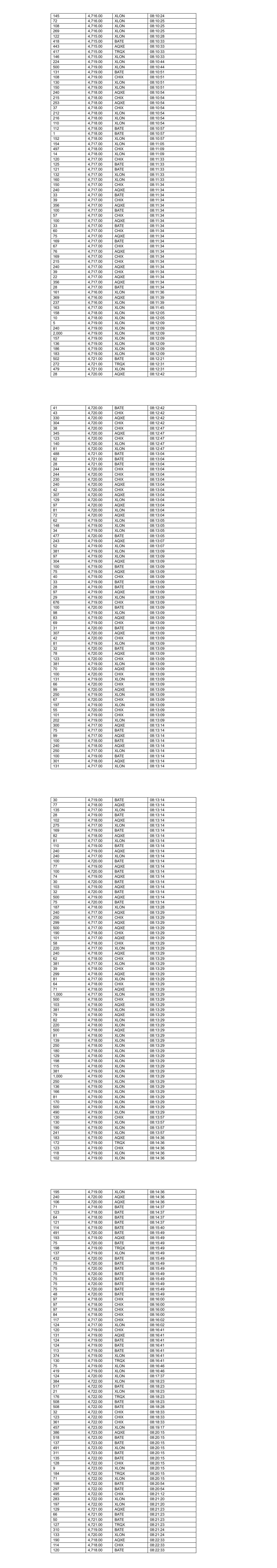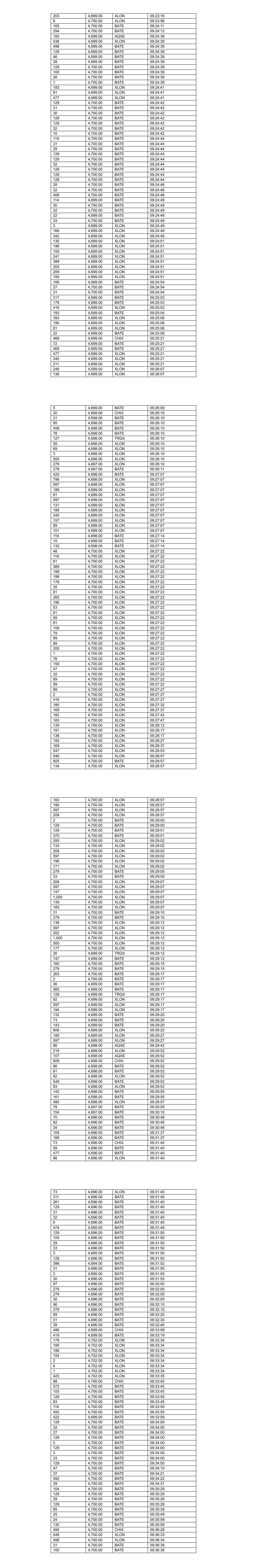 82 4,724.00 XLON 08:59:28 89 4,724.00 BATE 08:59:30 189 4,724.00 BATE 08:59:31 552 4,725.00 BATE 08:59:55 82 4,723.00 BATE 09:00:05 84 4,723.00 XLON 09:00:05 89 4,723.00 XLON 09:00:05 74 4,723.00 BATE 09:00:05 93 4,723.00 CHIX 09:00:05 249 4,721.00 BATE 09:00:24 61 4,720.00 CHIX 09:01:07 120 4,720.00 CHIX 09:01:07 260 4,720.00 BATE 09:01:07 90 4,720.00 BATE 09:01:07 81 4,720.00 BATE 09:01:07 188 4,720.00 XLON 09:01:07 195 4,720.00 XLON 09:01:07 25 4,719.00 CHIX 09:01:23 196 4,724.00 BATE 09:03:00 298 4,724.00 BATE 09:03:00 497 4,724.00 BATE 09:03:00 321 4,724.00 BATE 09:03:07 191 4,724.00 BATE 09:03:24 563 4,724.00 CHIX 09:03:24 501 4,723.00 XLON 09:03:24 428 4,723.00 XLON 09:03:24 50 4,723.00 XLON 09:03:24 110 4,722.00 BATE 09:03:49 102 4,722.00 BATE 09:03:49 102 4,722.00 CHIX 09:03:49 98 4,722.00 BATE 09:03:49 106 4,722.00 XLON 09:03:49 84 4,722.00 XLON 09:03:49 187 4,721.00 AQXE 09:03:49 102 4,721.00 BATE 09:04:17 91 4,721.00 BATE 09:04:17 96 4,721.00 XLON 09:04:17 97 4,720.00 BATE 09:04:41 98 4,720.00 BATE 09:04:41 90 4,720.00 BATE 09:04:41 88 4,720.00 CHIX 09:04:41 280 4,720.00 TRQX 09:04:41 86 4,720.00 XLON 09:04:41 98 4,720.00 XLON 09:04:41 114 4,718.00 CHIX 09:05:56 199 4,718.00 BATE 09:05:56 92 4,718.00 BATE 09:05:56 94 4,718.00 BATE 09:05:56 96 4,718.00 XLON 09:05:56 110 4,718.00 XLON 09:05:56 227 4,715.00 AQXE 09:05:58 181 4,715.00 TRQX 09:05:58 42 4,715.00 BATE 09:06:18 167 4,715.00 CHIX 09:06:18 200 4,715.00 BATE 09:06:18 127 4,715.00 BATE 09:06:18 170 4,715.00 BATE 09:06:18 162 4,715.00 XLON 09:06:18 93 4,714.00 CHIX 09:06:55 86 4,714.00 BATE 09:06:55 82 4,714.00 BATE 09:06:55 104 4,714.00 BATE 09:06:55 107 4,714.00 XLON 09:06:55 80 4,713.00 CHIX 09:07:22 91 4,712.00 XLON 09:07:25 378 4,712.00 XLON 09:07:25 34 4,712.00 BATE 09:07:25 49 4,712.00 BATE 09:07:29 77 4,712.00 BATE 09:07:29 102 4,712.00 BATE 09:07:29 95 4,711.00 CHIX 09:08:01 28 4,711.00 BATE 09:08:01 76 4,711.00 XLON 09:08:01 181 4,711.00 XLON 09:08:01 69 4,711.00 BATE 09:08:01 96 4,711.00 BATE 09:08:01 92 4,711.00 BATE 09:08:01 84 4,710.00 CHIX 09:09:13 85 4,710.00 BATE 09:09:13 88 4,710.00 BATE 09:09:13 98 4,710.00 BATE 09:09:13 89 4,710.00 XLON 09:09:13 20 4,710.00 XLON 09:09:13 115 4,711.00 XLON 09:10:41 221 4,711.00 TRQX 09:10:41 198 4,711.00 XLON 09:10:41 203 4,711.00 XLON 09:10:41 123 4,712.00 CHIX 09:10:55 69 4,712.00 CHIX 09:10:55 123 4,712.00 CHIX 09:10:55 215 4,712.00 CHIX 09:10:55 13 4,712.00 CHIX 09:10:58 27 4,712.00 BATE 09:11:07 169 4,714.00 BATE 09:11:49 200 4,714.00 BATE 09:11:49 568 4,714.00 BATE 09:11:58 230 4,714.00 BATE 09:11:58 601 4,714.00 XLON 09:11:58 14 4,714.00 BATE 09:11:58 573 4,714.00 BATE 09:11:58 73 4,713.00 CHIX 09:11:59 85 4,712.00 BATE 09:12:26 76 4,712.00 BATE 09:12:26 88 4,712.00 CHIX 09:12:26 89 4,712.00 BATE 09:12:26 171 4,712.00 XLON 09:12:26 91 4,712.00 XLON 09:12:26 215 4,711.00 AQXE 09:12:26 67 4,710.00 XLON 09:12:43 85 4,709.00 BATE 09:13:29 167 4,709.00 XLON 09:13:29 76 4,709.00 XLON 09:13:29 83 4,711.00 XLON 09:13:44 173 4,709.00 BATE 09:14:20 160 4,709.00 XLON 09:14:20 22 4,709.00 XLON 09:14:20 76 4,707.00 XLON 09:14:56 165 4,707.00 XLON 09:14:56 74 4,707.00 CHIX 09:14:56 22 4,707.00 BATE 09:15:07 31 4,708.00 BATE 09:15:07 28 4,708.00 BATE 09:15:07 141 4,708.00 CHIX 09:15:29 54 4,708.00 CHIX 09:15:29 16 4,708.00 CHIX 09:15:29 25 4,708.00 CHIX 09:15:29 215 4,708.00 CHIX 09:15:29 18 4,708.00 CHIX 09:15:29 18 4,708.00 CHIX 09:15:29 20 4,708.00 CHIX 09:15:29 425 4,707.00 BATE 09:16:18 70 4,707.00 CHIX 09:16:18 498 4,707.00 BATE 09:16:18 149 4,707.00 XLON 09:16:18 71 4,707.00 XLON 09:16:18 408 4,705.00 BATE 09:16:19 233 4,705.00 TRQX 09:16:19 165 4,703.00 BATE 09:17:31 94 4,703.00 CHIX 09:17:31 88 4,703.00 BATE 09:17:31 174 4,703.00 BATE 09:17:31 183 4,703.00 XLON 09:17:31 179 4,703.00 XLON 09:17:31 100 4,703.00 BATE 09:18:05 243 4,703.00 BATE 09:18:05 96 4,703.00 CHIX 09:18:05 76 4,703.00 BATE 09:18:05 242 4,703.00 XLON 09:18:05 243 4,703.00 XLON 09:18:05 68 4,703.00 CHIX 09:18:05 505 4,703.00 BATE 09:19:44 239 4,702.00 AQXE 09:19:46 48 4,703.00 BATE 09:20:23 148 4,703.00 BATE 09:20:23 97 4,703.00 BATE 09:20:23 201 4,703.00 BATE 09:20:23 173 4,703.00 XLON 09:20:23 477 4,703.00 XLON 09:20:23 199 4,703.00 XLON 09:20:23 249 4,703.00 XLON 09:20:23 192 4,703.00 XLON 09:20:23 78 4,703.00 XLON 09:20:23 5 4,703.00 XLON 09:20:28 189 4,703.00 XLON 09:20:28 477 4,703.00 XLON 09:20:28 173 4,703.00 XLON 09:20:28 134 4,703.00 XLON 09:20:28 184 4,703.00 XLON 09:20:28 246 4,703.00 XLON 09:20:28 173 4,703.00 XLON 09:20:28 477 4,703.00 XLON 09:20:28 166 4,703.00 XLON 09:20:28 477 4,703.00 XLON 09:20:28 173 4,703.00 XLON 09:20:28 477 4,703.00 BATE 09:21:06 419 4,703.00 CHIX 09:21:06 80 4,703.00 BATE 09:21:06 52 4,703.00 CHIX 09:21:06 467 4,703.00 XLON 09:21:06 507 4,703.00 XLON 09:21:06 208 4,703.00 TRQX 09:21:06 758 4,703.00 XLON 09:21:06 194 4,702.00 XLON 09:21:08 436 4,701.00 XLON 09:21:13 74 4,701.00 BATE 09:21:13 193 4,701.00 XLON 09:21:13 198 4,701.00 XLON 09:21:13 337 4,701.00 XLON 09:21:13 477 4,701.00 XLON 09:21:13 183 4,701.00 XLON 09:21:13 132 4,701.00 XLON 09:21:13 230 4,701.00 XLON 09:21:13 2,000 4,701.00 XLON 09:21:13 75 4,701.00 XLON 09:21:13 193 4,701.00 XLON 09:21:13 242 4,702.00 XLON 09:21:18 193 4,702.00 XLON 09:21:18 537 4,702.00 XLON 09:21:23 195 4,702.00 XLON 09:21:28 178 4,702.00 XLON 09:21:33 477 4,702.00 XLON 09:21:33 199 4,702.00 XLON 09:21:38 477 4,702.00 XLON 09:21:38 199 4,702.00 XLON 09:21:38 477 4,702.00 XLON 09:21:38 199 4,702.00 XLON 09:21:38 172 4,702.00 XLON 09:21:43 3 4,702.00 XLON 09:21:48 203 4,702.00 XLON 09:21:48 186 4,702.00 XLON 09:21:48 168 4,702.00 XLON 09:21:48 112 4,701.00 CHIX 09:21:49 105 4,701.00 BATE 09:21:49 105 4,701.00 BATE 09:21:49 175 4,701.00 BATE 09:21:49 87 4,701.00 XLON 09:21:49 36 4,701.00 XLON 09:21:49 90 4,701.00 XLON 09:21:49 474 4,701.00 XLON 09:21:49 71 4,701.00 XLON 09:21:53 477 4,701.00 XLON 09:21:53 1,500 4,701.00 XLON 09:21:53 99 4,701.00 XLON 09:21:53 500 4,701.00 XLON 09:21:53 573 4,700.00 BATE 09:22:25 65 4,700.00 BATE