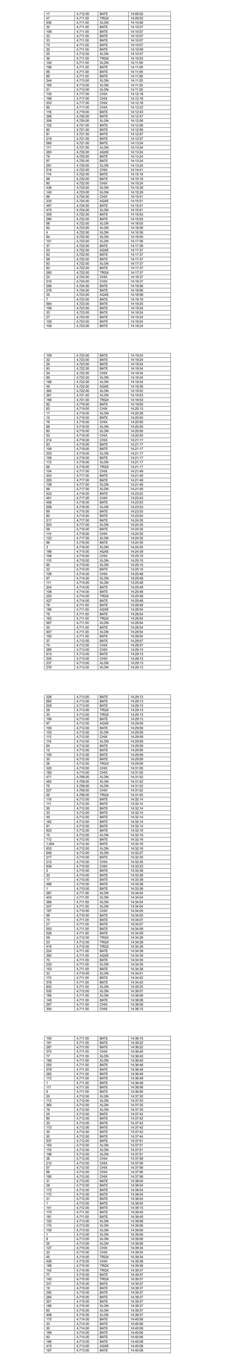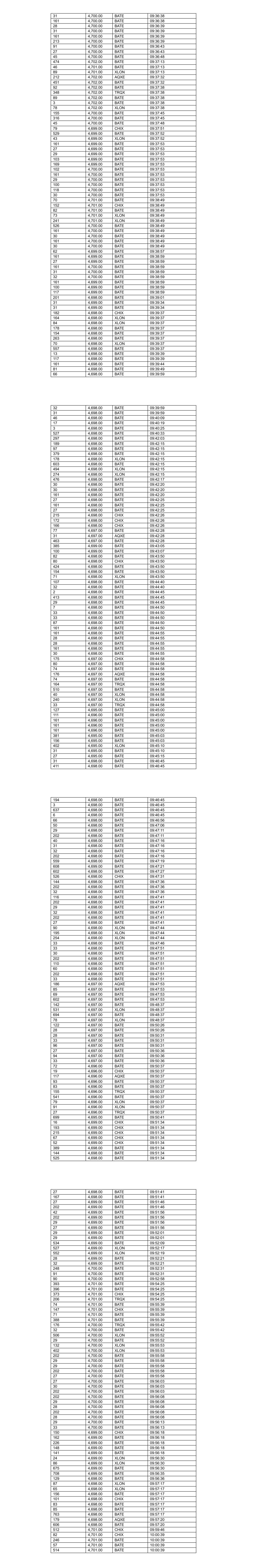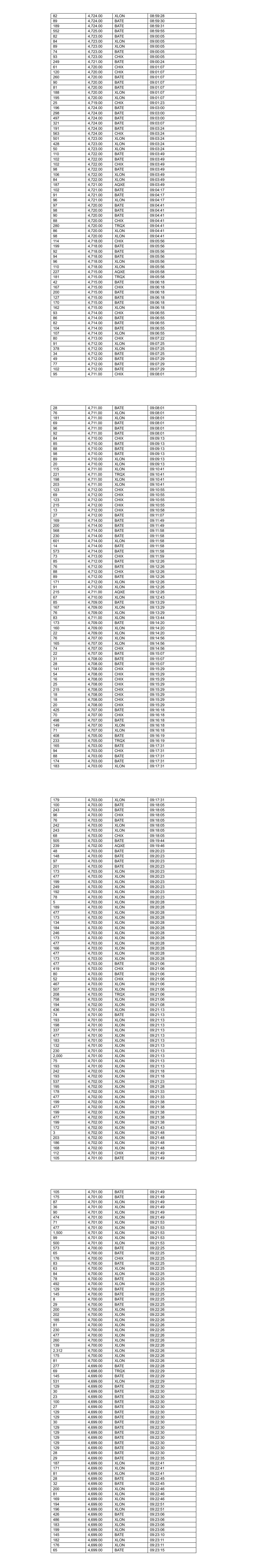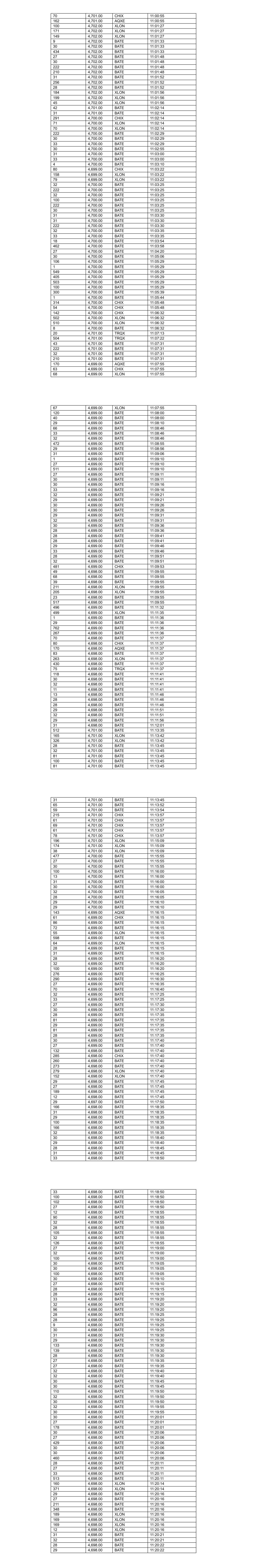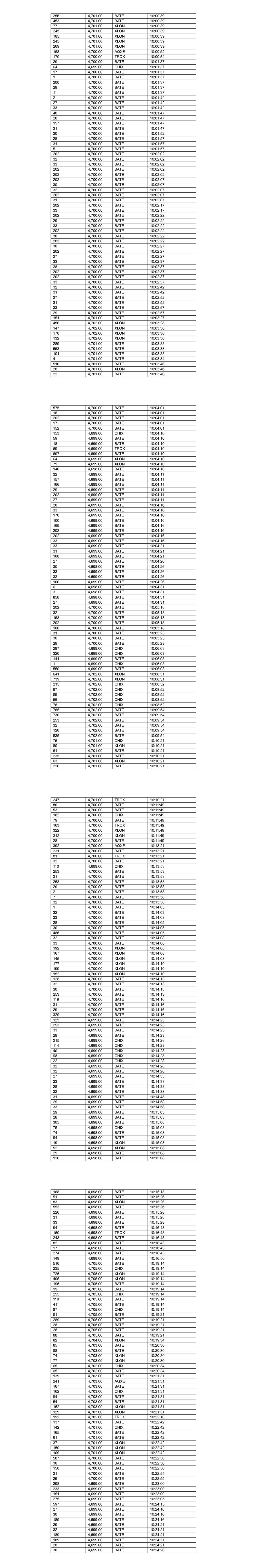 256 4,701.00 BATE 10:00:39 453 4,701.00 BATE 10:00:39 77 4,701.00 XLON 10:00:39 245 4,701.00 XLON 10:00:39 185 4,701.00 XLON 10:00:39 245 4,701.00 XLON 10:00:39 269 4,701.00 XLON 10:00:39 168 4,700.00 AQXE 10:00:52 170 4,700.00 TRQX 10:00:52 29 4,700.00 BATE 10:01:37 64 4,699.00 CHIX 10:01:37 97 4,700.00 BATE 10:01:37 1 4,700.00 BATE 10:01:37 200 4,700.00 BATE 10:01:37 29 4,700.00 BATE 10:01:37 11 4,700.00 BATE 10:01:37 2 4,700.00 BATE 10:01:42 27 4,700.00 BATE 10:01:42 33 4,700.00 BATE 10:01:42 40 4,700.00 BATE 10:01:47 28 4,700.00 BATE 10:01:47 157 4,700.00 BATE 10:01:47 31 4,700.00 BATE 10:01:47 30 4,700.00 BATE 10:01:52 28 4,700.00 BATE 10:01:57 31 4,700.00 BATE 10:01:57 5 4,700.00 BATE 10:01:57 202 4,700.00 BATE 10:02:02 32 4,700.00 BATE 10:02:02 33 4,700.00 BATE 10:02:02 202 4,700.00 BATE 10:02:02 202 4,700.00 BATE 10:02:02 202 4,700.00 BATE 10:02:07 30 4,700.00 BATE 10:02:07 32 4,700.00 BATE 10:02:07 202 4,700.00 BATE 10:02:07 31 4,700.00 BATE 10:02:07 202 4,700.00 BATE 10:02:17 33 4,700.00 BATE 10:02:17 202 4,700.00 BATE 10:02:22 29 4,700.00 BATE 10:02:22 33 4,700.00 BATE 10:02:22 202 4,700.00 BATE 10:02:22 30 4,700.00 BATE 10:02:22 202 4,700.00 BATE 10:02:22 30 4,700.00 BATE 10:02:27 202 4,700.00 BATE 10:02:27 27 4,700.00 BATE 10:02:27 33 4,700.00 BATE 10:02:37 28 4,700.00 BATE 10:02:37 202 4,700.00 BATE 10:02:37 202 4,700.00 BATE 10:02:37 33 4,700.00 BATE 10:02:37 32 4,700.00 BATE 10:02:42 31 4,700.00 BATE 10:02:42 27 4,700.00 BATE 10:02:52 31 4,700.00 BATE 10:02:52 33 4,700.00 BATE 10:02:57 29 4,700.00 BATE 10:02:57 151 4,701.00 BATE 10:03:27 450 4,702.00 XLON 10:03:28 147 4,702.00 XLON 10:03:30 170 4,702.00 XLON 10:03:30 132 4,702.00 XLON 10:03:30 289 4,701.00 BATE 10:03:33 553 4,701.00 BATE 10:03:33 101 4,701.00 BATE 10:03:33 4 4,701.00 BATE 10:03:34 510 4,701.00 BATE 10:03:46 28 4,701.00 XLON 10:03:46 22 4,701.00 BATE 10:03:46 575 4,700.00 BATE 10:04:01 18 4,700.00 BATE 10:04:01 202 4,700.00 BATE 10:04:01 97 4,700.00 BATE 10:04:01 152 4,700.00 BATE 10:04:01 153 4,699.00 CHIX 10:04:10 59 4,699.00 BATE 10:04:10 18 4,699.00 BATE 10:04:10 69 4,699.00 TRQX 10:04:10 697 4,699.00 BATE 10:04:10 64 4,699.00 XLON 10:04:10 79 4,699.00 XLON 10:04:10 140 4,698.00 BATE 10:04:10 32 4,699.00 BATE 10:04:11 157 4,699.00 BATE 10:04:11 166 4,699.00 BATE 10:04:11 29 4,699.00 BATE 10:04:11 202 4,699.00 BATE 10:04:11 27 4,699.00 BATE 10:04:11 28 4,699.00 BATE 10:04:16 33 4,699.00 BATE 10:04:16 170 4,699.00 BATE 10:04:16 100 4,699.00 BATE 10:04:16 169 4,699.00 BATE 10:04:16 202 4,699.00 BATE 10:04:16 202 4,699.00 BATE 10:04:16 33 4,699.00 BATE 10:04:16 33 4,699.00 BATE 10:04:21 31 4,699.00 BATE 10:04:21 100 4,699.00 BATE 10:04:21 27 4,698.00 BATE 10:04:26 30 4,698.00 BATE 10:04:26 33 4,699.00 BATE 10:04:26 32 4,699.00 BATE 10:04:26 100 4,699.00 BATE 10:04:26 6 4,698.00 BATE 10:04:31 3 4,698.00 BATE 10:04:31 858 4,698.00 BATE 10:04:31 27 4,698.00 BATE 10:04:31 202 4,700.00 BATE 10:05:18 32 4,700.00 BATE 10:05:18 153 4,700.00 BATE 10:05:18 202 4,700.00 BATE 10:05:18 100 4,700.00 BATE 10:05:18 31 4,700.00 BATE 10:05:23 30 4,700.00 BATE 10:05:23 29 4,700.00 BATE 10:05:28 297 4,699.00 CHIX 10:06:03 320 4,699.00 CHIX 10:06:03 141 4,699.00 BATE 10:06:03 1 4,699.00 CHIX 10:06:03 550 4,699.00 BATE 10:06:03 641 4,702.00 XLON 10:08:31 739 4,702.00 XLON 10:08:31 215 4,702.00 CHIX 10:08:52 67 4,702.00 CHIX 10:08:52 59 4,702.00 CHIX 10:08:52 56 4,702.00 CHIX 10:08:52 76 4,702.00 CHIX 10:08:52 785 4,702.00 BATE 10:09:54 730 4,702.00 BATE 10:09:54 253 4,702.00 BATE 10:09:54 32 4,702.00 BATE 10:09:54 120 4,702.00 BATE 10:09:54 535 4,702.00 BATE 10:09:54 75 4,701.00 CHIX 10:10:21 80 4,701.00 XLON 10:10:21 61 4,701.00 BATE 10:10:21 235 4,701.00 BATE 10:10:21 63 4,701.00 XLON 10:10:21 226 4,701.00 BATE 10:10:21 247 4,701.00 TRQX 10:10:21 80 4,700.00 BATE 10:11:49 53 4,700.00 BATE 10:11:49 162 4,700.00 CHIX 10:11:49 79 4,700.00 BATE 10:11:49 163 4,700.00 TRQX 10:11:49 322 4,700.00 XLON 10:11:49 312 4,700.00 XLON 10:11:49 28 4,700.00 BATE 10:11:49 392 4,700.00 AQXE 10:13:21 231 4,700.00 BATE 10:13:21 81 4,700.00 TRQX 10:13:21 32 4,700.00 BATE 10:13:21 110 4,699.00 CHIX 10:13:53 253 4,700.00 BATE 10:13:53 31 4,700.00 BATE 10:13:53 253 4,700.00 BATE 10:13:53 29 4,700.00 BATE 10:13:53 2 4,700.00 BATE 10:13:58 7 4,700.00 BATE 10:13:58 32 4,700.00 BATE 10:13:58 1 4,700.00 BATE 10:14:03 32 4,700.00 BATE 10:14:03 33 4,700.00 BATE 10:14:03 28 4,700.00 BATE 10:14:05 30 4,700.00 BATE 10:14:05 486 4,700.00 BATE 10:14:05 32 4,700.00 BATE 10:14:08 33 4,700.00 BATE 10:14:08 192 4,700.00 XLON 10:14:08 167 4,700.00 XLON 10:14:08 145 4,700.00 XLON 10:14:08 177 4,700.00 XLON 10:14:10 199 4,700.00 XLON 10:14:10 152 4,700.00 XLON 10:14:10 128 4,700.00 BATE 10:14:13 32 4,700.00 BATE 10:14:13 30 4,700.00 BATE 10:14:13 253 4,700.00 BATE 10:14:13 119 4,700.00 BATE 10:14:16 31 4,700.00 BATE 10:14:16 29 4,700.00 BATE 10:14:16 329 4,700.00 BATE 10:14:16 125 4,699.00 BATE 10:14:23 253 4,699.00 BATE 10:14:23 33 4,699.00 BATE 10:14:23 28 4,699.00 BATE 10:14:23 215 4,699.00 CHIX 10:14:28 114 4,699.00 CHIX 10:14:28 40 4,699.00 CHIX 10:14:28 98 4,699.00 CHIX 10:14:28 22 4,699.00 CHIX 10:14:28 32 4,699.00 BATE 10:14:28 32 4,699.00 BATE 10:14:28 27 4,699.00 BATE 10:14:33 33 4,699.00 BATE 10:14:33 28 4,699.00 BATE 10:14:38 32 4,699.00 BATE 10:14:38 31 4,699.00 BATE 10:14:48 29 4,699.00 BATE 10:14:58 33 4,699.00 BATE 10:14:58 29 4,699.00 BATE 10:15:03 28 4,699.00 BATE 10:15:03 305 4,698.00 BATE 10:15:08 75 4,698.00 CHIX 10:15:08 74 4,698.00 BATE 10:15:08 94 4,698.00 BATE 10:15:08 19 4,698.00 XLON 10:15:08 52 4,698.00 XLON 10:15:08 29 4,698.00 BATE 10:15:08 126 4,698.00 BATE 10:15:08 168 4,698.00 BATE 10:15:13 51 4,698.00 BATE 10:15:26 83 4,698.00 XLON 10:15:26 553 4,698.00 BATE 10:15:26 220 4,698.00 BATE 10:15:28 31 4,698.00 BATE 10:15:28 33 4,698.00 BATE 10:15:28 94 4,698.00 BATE 10:16:43 160 4,698.00 TRQX 10:16:43 243 4,698.00 BATE 10:16:43 82 4,698.00 BATE 10:16:43 97 4,698.00 BATE 10:16:43 274 4,698.00 BATE 10:16:43 149 4,698.00 BATE 10:16:50 516 4,70