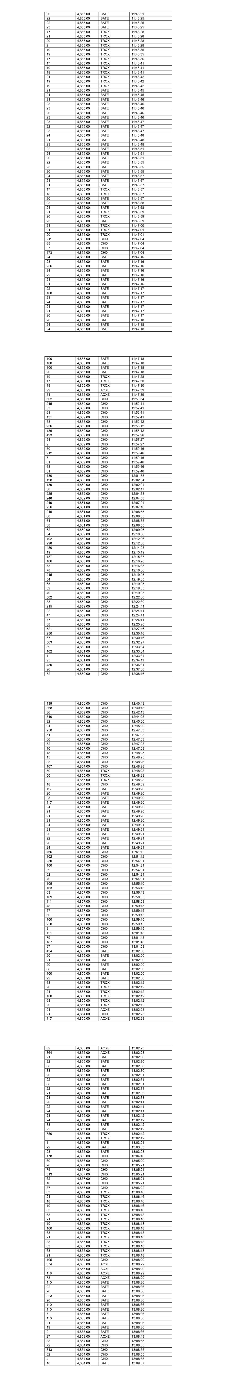66 4,814.00 TRQX 15:00:14 20 4,813.00 AQXE 15:00:21 254 4,812.00 CHIX 15:00:23 230 4,813.00 XLON 15:00:46 122 4,813.00 XLON 15:00:46 931 4,813.00 XLON 15:00:46 500 4,813.00 BATE 15:01:01 407 4,816.00 CHIX 15:01:30 153 4,814.00 CHIX 15:01:32 393 4,815.00 BATE 15:02:03 274 4,817.00 CHIX 15:02:17 284 4,819.00 XLON 15:02:46 60 4,820.00 CHIX 15:02:51 275 4,820.00 CHIX 15:02:51 59 4,820.00 CHIX 15:02:51 142 4,820.00 CHIX 15:02:51 68 4,819.00 XLON 15:02:59 121 4,820.00 BATE 15:03:00 24 4,820.00 BATE 15:03:00 20 4,820.00 BATE 15:03:00 200 4,820.00 BATE 15:03:00 503 4,820.00 XLON 15:03:02 93 4,820.00 XLON 15:03:31 376 4,820.00 BATE 15:03:39 113 4,820.00 BATE 15:03:39 275 4,820.00 CHIX 15:03:49 60 4,820.00 CHIX 15:03:49 61 4,820.00 CHIX 15:03:49 29 4,820.00 CHIX 15:03:49 93 4,820.00 XLON 15:04:10 212 4,821.00 BATE 15:04:31 117 4,821.00 TRQX 15:04:36 19 4,821.00 TRQX 15:04:36 117 4,821.00 TRQX 15:04:36 117 4,821.00 TRQX 15:04:36 117 4,821.00 TRQX 15:04:36 25 4,821.00 TRQX 15:04:36 592 4,820.00 AQXE 15:04:42 268 4,821.00 CHIX 15:04:50 57 4,821.00 CHIX 15:04:50 81 4,821.00 CHIX 15:04:50 311 4,820.00 BATE 15:04:55 79 4,819.00 XLON 15:05:02 126 4,818.00 CHIX 15:05:03 37 4,818.00 TRQX 15:05:03 104 4,818.00 XLON 15:05:03 37 4,818.00 TRQX 15:05:03 150 4,817.00 CHIX 15:05:05 60 4,817.00 BATE 15:05:05 96 4,817.00 XLON 15:05:05 70 4,817.00 AQXE 15:05:05 172 4,817.00 BATE 15:05:05 173 4,816.00 XLON 15:05:27 43 4,815.00 TRQX 15:05:35 62 4,815.00 XLON 15:05:35 249 4,815.00 CHIX 15:05:35 230 4,817.00 XLON 15:06:22 449 4,817.00 BATE 15:06:22 70 4,817.00 CHIX 15:06:22 92 4,817.00 XLON 15:06:22 165 4,817.00 CHIX 15:06:22 456 4,818.00 CHIX 15:07:13 220 4,817.00 AQXE 15:07:17 351 4,818.00 CHIX 15:08:10 221 4,817.00 XLON 15:08:11 20 4,817.00 TRQX 15:08:11 107 4,817.00 CHIX 15:08:11 64 4,817.00 AQXE 15:08:11 164 4,817.00 TRQX 15:08:11 302 4,817.00 BATE 15:08:11 544 4,817.00 BATE 15:08:11 151 4,818.00 TRQX 15:08:37 116 4,818.00 AQXE 15:08:37 137 4,819.00 XLON 15:09:18 424 4,819.00 XLON 15:09:18 480 4,819.00 CHIX 15:09:18 71 4,818.00 XLON 15:09:18 22 4,818.00 XLON 15:09:18 2 4,818.00 AQXE 15:09:18 34 4,818.00 AQXE 15:09:21 121 4,818.00 BATE 15:09:36 121 4,819.00 BATE 15:09:39 88 4,819.00 BATE 15:09:39 121 4,819.00 BATE 15:09:39 20 4,819.00 BATE 15:09:39 121 4,819.00 BATE 15:09:39 20 4,819.00 BATE 15:09:39 31 4,819.00 BATE 15:09:39 678 4,821.00 CHIX 15:10:28 130 4,820.00 XLON 15:10:29 75 4,820.00 XLON 15:10:35 18 4,820.00 XLON 15:10:55 640 4,822.00 BATE 15:11:18 248 4,822.00 CHIX 15:11:26 1 4,824.00 CHIX 15:11:57 34 4,824.00 CHIX 15:11:57 90 4,824.00 CHIX 15:11:57 57 4,824.00 CHIX 15:11:57 54 4,824.00 CHIX 15:11:57 56 4,824.00 CHIX 15:11:57 31 4,824.00 CHIX 15:11:57 149 4,824.00 CHIX 15:11:57 360 4,822.00 XLON 15:12:08 19 4,822.00 XLON 15:12:08 286 4,822.00 AQXE 15:12:08 213 4,821.00 BATE 15:12:08 175 4,820.00 TRQX 15:12:43 239 4,820.00 CHIX 15:12:43 67 4,820.00 AQXE 15:12:43 71 4,820.00 XLON 15:12:43 19 4,820.00 BATE 15:12:43 223 4,819.00 XLON 15:12:44 78 4,819.00 XLON 15:12:44 429 4,819.00 BATE 15:12:44 63 4,819.00 XLON 15:13:05 231 4,818.00 CHIX 15:13:05 51 4,818.00 AQXE 15:13:05 239 4,818.00 TRQX 15:13:05 34 4,818.00 TRQX 15:13:05 66 4,817.00 XLON 15:13:09 51 4,816.00 AQXE 15:13:11 40 4,816.00 TRQX 15:13:11 6 4,816.00 TRQX 15:13:11 92 4,813.00 XLON 15:13:34 205 4,813.00 BATE 15:13:34 222 4,811.00 CHIX 15:13:50 3 4,811.00 TRQX 15:13:50 53 4,811.00 TRQX 15:13:50 217 4,810.00 BATE 15:13:55 544 4,810.00 XLON 15:13:55 87 4,810.00 XLON 15:13:55 336 4,810.00 XLON 15:13:55 170 4,810.00 XLON 15:13:55 106 4,810.00 XLON 15:13:55 75 4,810.00 AQXE 15:14:00 620 4,809.00 XLON 15:14:06 230 4,809.00 CHIX 15:14:06 68 4,809.00 XLON 15:14:06 268 4,808.00 XLON 15:14:14 545 4,809.00 XLON 15:14:32 100 4,807.00 XLON 15:14:45 50 4,807.00 XLON 15:14:46 370 4,808.00 CHIX 15:15:00 225 4,807.00 BATE 15:15:01 102 4,807.00 XLON 15:15:01 72 4,806.00 TRQX 15:15:23 59 4,806.00 XLON 15:15:23 343 4,806.00 XLON 15:15:26 205 4,806.00 XLON 15:15:26 721 4,806.00 XLON 15:15:26 122 4,806.00 XLON 15:15:26 96 4,805.00 XLON 15:15:34 405 4,805.00 XLON 15:15:34 111 4,805.00 CHIX 15:15:34 489 4,808.00 BATE 15:15:51 156 4,808.00 BATE 15:15:52 275 4,807.00 CHIX 15:16:01 79 4,807.00 CHIX 15:16:01 271 4,806.00 XLON 15:16:13 721 4,806.00 XLON 15:16:15 195 4,806.00 XLON 15:16:15 264 4,806.00 XLON 15:16:15 595 4,807.00 CHIX 15:17:23 521 4,807.00 XLON 15:17:23 659 4,807.00 BATE 15:17:23 656 4,807.00 XLON 15:17:23 522 4,807.00 XLON 15:17:41 233 4,807.00 CHIX 15:17:43 137 4,806.00 BATE 15:17:57 71 4,806.00 BATE 15:17:57 328 4,806.00 TRQX 15:17:57 18 4,806.00 XLON 15:17:57 1,094 4,807.00 XLON 15:18:16 1,237 4,807.00 XLON 15:18:19 347 4,807.00 CHIX 15:18:33 556 4,807.00 AQXE 15:18:49 113 4,806.00 CHIX 15:18:56 18 4,806.00 AQXE 15:18:56 220 4,806.00 BATE 15:18:56 108 4,805.00 TRQX 15:19:01 208 4,805.00 BATE 15:19:01 81 4,805.00 XLON 15:19:01 674 4,804.00 XLON 15:19:07 56 4,804.00 XLON 15:19:07 153 4,804.00 XLON 15:19:07 117 4,804.00 TRQX 15:19:07 1 4,803.00 XLON 15:19:12 426 4,804.00 XLON 15:19:18 603 4,804.00 XLON 15:19:18 291 4,804.00 CHIX 15:19:34 76 4,804.00 CHIX 15:19:34 103 4,803.00 CHIX 15:19:39 128 4,803.00 BATE 15:19:39 151 4,803.00 XLON 15:19:39 92 4,803.00 BATE 15:19:39 14 4,803.00 BATE 15:19:40 4 4,803.00 BATE 15:19:43 50 4,802.00 AQXE 15:19:53 367 4,805.00 CHIX 15:20:35 179 4,806.00 XLON 15:21:01 448 4,806.00 XLON 15:21:01 185 4,806.00 XLON 15:21:01 711 4,806.00 XLON 15:21:01 624 4,804.00 BATE 15:21:14 90 4,804.00 CHIX 15:21:14 17 4,804.00 CHIX 15:21:15 2 4,804.00 AQXE 15:21:24 123 4,804.00 AQXE 15:21:24 901 4,804.00 XLON 15:21:25 187 4,804.00 XLON 15:21:25 186 4,804.00 XLON 15:21:25 336 4,804.00 XLON 15:21:25 274 4,806.00 CHIX 15:21:48 223 4,806.00 BATE 15:21:48 194 4,806.00 CHIX 15:21:48 315 4,806.00 XLON 15:22:17 414 4,806.00 XLON 15:22:17 269 4,806.00 XLON 15:22:21 190 4,806.00 XLON 15:22:21 364 4,806.00 XLON 15:22:21 87 4,806.00 XLON 15:22:21 403 4,806.00 XLON 15:22:21 20 4,806.00 XLON 15:22:21 520 4,807.00 XLON 15:22:38 455 4,807.00 CHIX 15:22:38 901 4,807.00