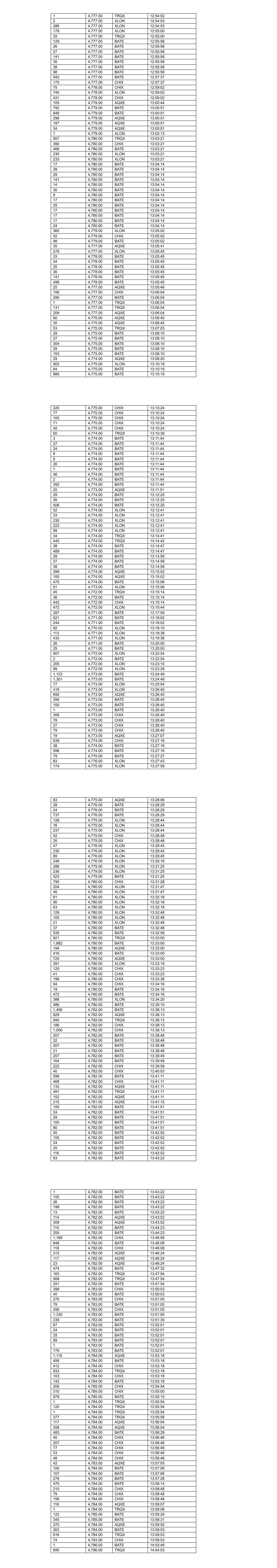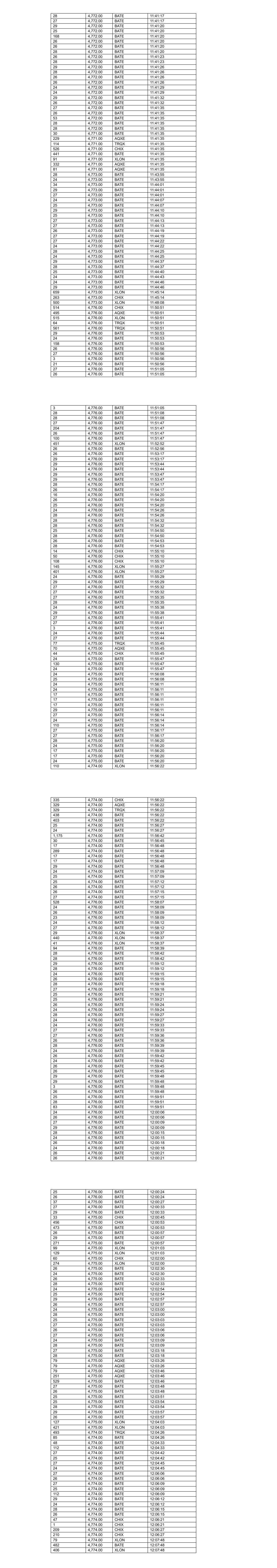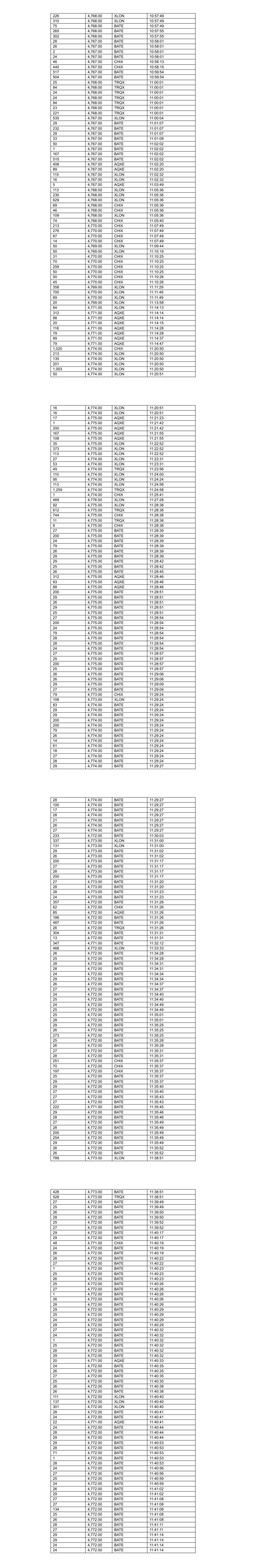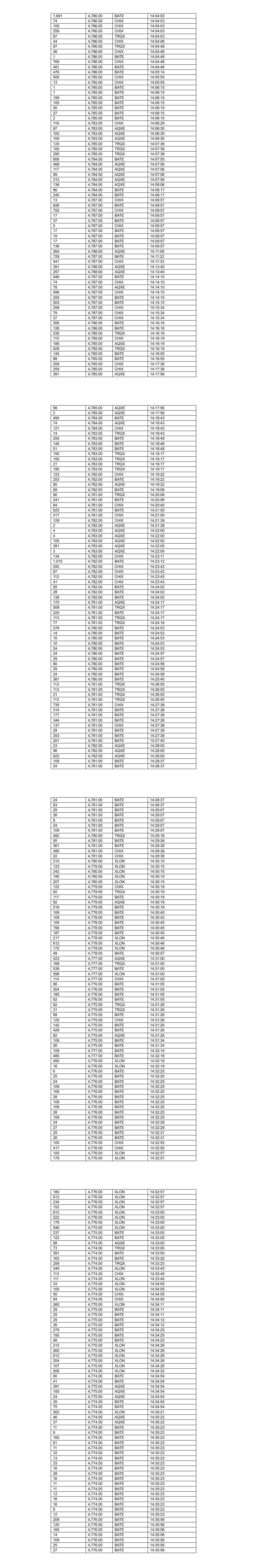 28 4,772.00 BATE 11:41:17 27 4,772.00 BATE 11:41:17 29 4,772.00 BATE 11:41:20 25 4,772.00 BATE 11:41:20 168 4,772.00 BATE 11:41:20 26 4,772.00 BATE 11:41:20 26 4,772.00 BATE 11:41:20 28 4,772.00 BATE 11:41:20 26 4,772.00 BATE 11:41:23 28 4,772.00 BATE 11:41:23 29 4,772.00 BATE 11:41:26 28 4,772.00 BATE 11:41:26 26 4,772.00 BATE 11:41:26 26 4,772.00 BATE 11:41:26 24 4,772.00 BATE 11:41:29 24 4,772.00 BATE 11:41:29 29 4,772.00 BATE 11:41:32 26 4,772.00 BATE 11:41:32 27 4,772.00 BATE 11:41:35 26 4,772.00 BATE 11:41:35 53 4,772.00 BATE 11:41:35 28 4,772.00 BATE 11:41:35 28 4,772.00 BATE 11:41:35 30 4,771.00 BATE 11:41:35 229 4,771.00 AQXE 11:41:35 114 4,771.00 TRQX 11:41:35 526 4,771.00 CHIX 11:41:35 441 4,771.00 BATE 11:41:35 91 4,771.00 XLON 11:41:35 332 4,771.00 AQXE 11:41:35 81 4,771.00 AQXE 11:41:35 28 4,773.00 BATE 11:43:55 24 4,773.00 BATE 11:43:55 34 4,773.00 BATE 11:44:01 29 4,773.00 BATE 11:44:01 27 4,773.00 BATE 11:44:01 24 4,773.00 BATE 11:44:07 25 4,773.00 BATE 11:44:07 29 4,773.00 BATE 11:44:10 25 4,773.00 BATE 11:44:10 27 4,773.00 BATE 11:44:13 27 4,773.00 BATE 11:44:13 26 4,773.00 BATE 11:44:19 27 4,773.00 BATE 11:44:19 27 4,773.00 BATE 11:44:22 24 4,773.00 BATE 11:44:22 28 4,773.00 BATE 11:44:25 24 4,773.00 BATE 11:44:25 29 4,773.00 BATE 11:44:37 28 4,773.00 BATE 11:44:37 25 4,773.00 BATE 11:44:40 24 4,773.00 BATE 11:44:43 24 4,773.00 BATE 11:44:46 29 4,773.00 BATE 11:44:46 659 4,773.00 XLON 11:45:14 263 4,773.00 CHIX 11:45:14 500 4,773.00 XLON 11:48:08 514 4,776.00 CHIX 11:50:51 495 4,776.00 AQXE 11:50:51 515 4,776.00 XLON 11:50:51 64 4,776.00 TRQX 11:50:51 561 4,776.00 TRQX 11:50:51 29 4,776.00 BATE 11:50:53 24 4,776.00 BATE 11:50:53 158 4,776.00 BATE 11:50:53 26 4,776.00 BATE 11:50:56 27 4,776.00 BATE 11:50:56 3 4,776.00 BATE 11:50:56 21 4,776.00 BATE 11:50:56 27 4,776.00 BATE 11:51:05 26 4,776.00 BATE 11:51:05 3 4,776.00 BATE 11:51:05 28 4,776.00 BATE 11:51:08 28 4,776.00 BATE 11:51:08 27 4,776.00 BATE 11:51:47 204 4,776.00 BATE 11:51:47 26 4,776.00 BATE 11:51:47 100 4,776.00 BATE 11:51:47 451 4,776.00 XLON 11:52:52 26 4,776.00 BATE 11:52:56 26 4,776.00 BATE 11:53:17 29 4,776.00 BATE 11:53:17 29 4,776.00 BATE 11:53:44 24 4,776.00 BATE 11:53:44 29 4,776.00 BATE 11:53:47 29 4,776.00 BATE 11:53:47 28 4,776.00 BATE 11:54:17 26 4,776.00 BATE 11:54:17 16 4,776.00 BATE 11:54:20 26 4,776.00 BATE 11:54:20 25 4,776.00 BATE 11:54:20 24 4,776.00 BATE 11:54:26 28 4,776.00 BATE 11:54:26 28 4,776.00 BATE 11:54:32 28 4,776.00 BATE 11:54:32 25 4,776.00 BATE 11:54:50 28 4,776.00 BATE 11:54:50 26 4,776.00 BATE 11:54:53 28 4,776.00 BATE 11:54:53 14 4,776.00 CHIX 11:55:10 50 4,776.00 CHIX 11:55:10 108 4,776.00 CHIX 11:55:10 145 4,776.00 XLON 11:55:27 401 4,776.00 XLON 11:55:27 24 4,776.00 BATE 11:55:29 29 4,776.00 BATE 11:55:29 27 4,776.00 BATE 11:55:32 27 4,776.00 BATE 11:55:32 27 4,776.00 BATE 11:55:35 28 4,776.00 BATE 11:55:35 24 4,776.00 BATE 11:55:38 29 4,776.00 BATE 11:55:38 27 4,776.00 BATE 11:55:41 27 4,776.00 BATE 11:55:41 3 4,776.00 BATE 11:55:41 24 4,776.00 BATE 11:55:44 27 4,776.00 BATE 11:55:44 77 4,775.00 TRQX 11:55:45 70 4,775.00 AQXE 11:55:45 44 4,775.00 CHIX 11:55:45 24 4,775.00 BATE 11:55:47 130 4,775.00 BATE 11:55:47 24 4,775.00 BATE 11:55:47 24 4,775.00 BATE 11:56:08 25 4,775.00 BATE 11:56:08 24 4,775.00 BATE 11:56:11 24 4,775.00 BATE 11:56:11 17 4,775.00 BATE 11:56:11 17 4,775.00 BATE 11:56:11 17 4,775.00 BATE 11:56:11 29 4,775.00 BATE 11:56:11 27 4,775.00 BATE 11:56:14 24 4,775.00 BATE 11:56:14 110 4,775.00 BATE 11:56:14 27 4,775.00 BATE 11:56:17 27 4,775.00 BATE 11:56:17 28 4,775.00 BATE 11:56:20 24 4,775.00 BATE 11:56:20 17 4,775.00 BATE 11:56:20 17 4,775.00 BATE 11:56:20 24 4,775.00 BATE 11:56:20 110 4,774.00 XLON 11:56:22 335 4,774.00 CHIX 11:56:22 329 4,774.00 AQXE 11:56:22 329 4,774.00 TRQX 11:56:22 438 4,774.00 BATE 11:56:22 403 4,774.00 BATE 11:56:22 25 4,774.00 BATE 11:56:27 24 4,774.00 BATE 11:56:27 1,175 4,774.00 BATE 11:56:42 30 4,774.00 BATE 11:56:45 17 4,774.00 BATE 11:56:48 289 4,774.00 BATE 11:56:48 17 4,774.00 BATE 11:56:48 17 4,774.00 BATE 11:56:48 29 4,774.00 BATE 11:56:48 24 4,774.00 BATE 11:57:09 25 4,774.00 BATE 11:57:09 25 4,774.00 BATE 11:57:12 26 4,774.00 BATE 11:57:12 26 4,774.00 BATE 11:57:15 27 4,774.00 BATE 11:57:15 528 4,776.00 BATE 11:58:07 24 4,776.00 BATE 11:58:09 26 4,776.00 BATE 11:58:09 23 4,776.00 BATE 11:58:09 24 4,776.00 BATE 11:58:12 27 4,776.00 BATE 11:58:12 29 4,776.00 XLON 11:58:37 440 4,776.00 XLON 11:58:37 41 4,776.00 XLON 11:58:37 94 4,776.00 BATE 11:58:39 28 4,776.00 BATE 11:58:42 28 4,776.00 BATE 11:58:42 29 4,776.00 BATE 11:59:12 28 4,776.00 BATE 11:59:12 24 4,776.00 BATE 11:59:15 26 4,776.00 BATE 11:59:15 28 4,776.00 BATE 11:59:18 27 4,776.00 BATE 11:59:18 25 4,776.00 BATE 11:59:21 25 4,776.00 BATE 11:59:21 26 4,776.00 BATE 11:59:24 24 4,776.00 BATE 11:59:24 28 4,776.00 BATE 11:59:27 24 4,776.00 BATE 11:59:27 24 4,776.00 BATE 11:59:33 27 4,776.00 BATE 11:59:33 27 4,776.00 BATE 11:59:36 26 4,776.00 BATE 11:59:36 28 4,776.00 BATE 11:59:39 24 4,776.00 BATE 11:59:39 26 4,776.00 BATE 11:59:42 24 4,776.00 BATE 11:59:42 26 4,776.00 BATE 11:59:45 26 4,776.00 BATE 11:59:45 29 4,776.00 BATE 11:59:48 29 4,776.00 BATE 11:59:48 3 4,776.00 BATE 11:59:48 26 4,776.00 BATE 11:59:48 25 4,776.00 BATE 11:59:51 28 4,776.00 BATE 11:59:51 83 4,776.00 BATE 11:59:51 24 4,776.00 BATE 12:00:06 26 4,776.00 BATE 12:00:06 27 4,776.00 BATE 12:00:09 29 4,776.00 BATE 12:00:09 28 4,776.00 BATE 12:00:15 24 4,776.00 BATE 12:00:15 26 4,776.00 BATE 12:00:18 24 4,776.00 BATE 12:00:18 26 4,776.00 BATE 12:00:21 26 4,776.00 BATE 12:00:21 25 4,776.00 BATE 12:00:24 26 4,776.00 BATE 12:00:24 37 4,775.00 BATE 12:00:27 27 4,776.00 BATE 12:00:33 29 4,776.00 BATE 12:00:33 33 4,775.00 CHIX 12:00:45 456 4,775.00 CHIX 12:00:53 473 4,775.00 BATE 12:00:53 26 4,775.00 BATE 12:00:57 29 4,775.00 BATE 12:00:57 271 4,775.00 BATE 12:00:57 99 4,775.00 XLON 12:01:03 129 4,775.00 XLON 12:01:03 60 4,775.00 CHIX 12:02:00 274 4,775.00 XLON 12:02:00 26 4,775.00 BATE 12:02:30 24 4,775.00