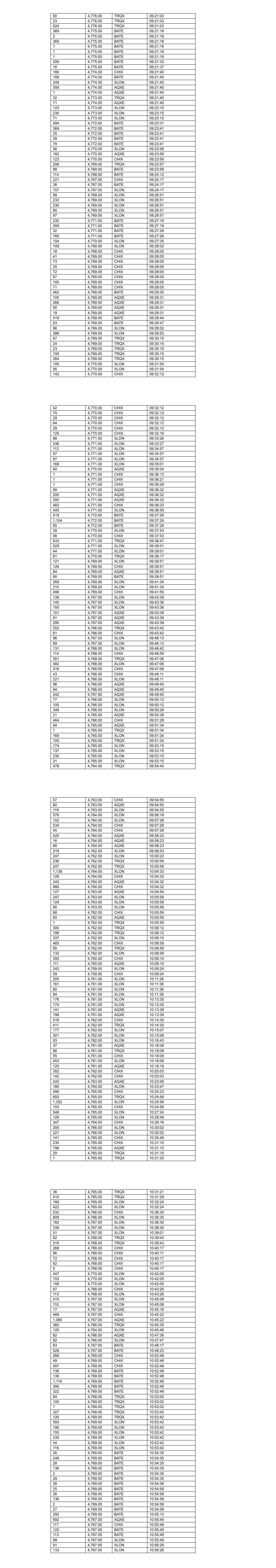 90 4,776.00 TRQX 09:21:03 23 4,776.00 TRQX 09:21:03 624 4,776.00 TRQX 09:21:03 369 4,775.00 BATE 09:21:18 2 4,775.00 BATE 09:21:18 369 4,775.00 BATE 09:21:18 1 4,775.00 BATE 09:21:18 1 4,775.00 BATE 09:21:18 1 4,775.00 BATE 09:21:18 299 4,775.00 BATE 09:21:33 16 4,775.00 BATE 09:21:37 180 4,774.00 CHIX 09:21:40 108 4,774.00 BATE 09:21:40 249 4,774.00 XLON 09:21:40 309 4,774.00 AQXE 09:21:40 1 4,774.00 AQXE 09:21:40 32 4,773.00 TRQX 09:21:40 71 4,774.00 AQXE 09:21:40 123 4,773.00 XLON 09:23:15 230 4,773.00 XLON 09:23:15 71 4,773.00 XLON 09:23:15 494 4,772.00 BATE 09:23:31 369 4,772.00 BATE 09:23:41 25 4,772.00 BATE 09:23:41 28 4,772.00 BATE 09:23:41 79 4,772.00 BATE 09:23:41 56 4,770.00 XLON 09:23:56 162 4,770.00 AQXE 09:23:56 123 4,770.00 CHIX 09:23:56 208 4,769.00 TRQX 09:23:57 88 4,769.00 BATE 09:23:58 114 4,768.00 BATE 09:24:12 221 4,767.00 CHIX 09:24:17 38 4,767.00 BATE 09:24:17 107 4,767.00 XLON 09:24:17 99 4,769.00 XLON 09:26:51 233 4,769.00 XLON 09:26:51 230 4,769.00 XLON 09:26:51 80 4,769.00 XLON 09:26:51 87 4,769.00 XLON 09:26:51 230 4,771.00 BATE 09:27:19 359 4,771.00 BATE 09:27:19 32 4,771.00 BATE 09:27:26 785 4,771.00 BATE 09:27:26 104 4,770.00 XLON 09:27:35 109 4,768.00 XLON 09:28:02 18 4,768.00 CHIX 09:28:05 41 4,769.00 CHIX 09:28:05 73 4,769.00 CHIX 09:28:05 25 4,769.00 CHIX 09:28:05 72 4,769.00 CHIX 09:28:05 67 4,769.00 CHIX 09:28:05 100 4,769.00 CHIX 09:28:05 71 4,769.00 CHIX 09:28:05 462 4,769.00 BATE 09:29:30 105 4,769.00 AQXE 09:29:31 266 4,769.00 AQXE 09:29:31 90 4,769.00 AQXE 09:29:31 19 4,769.00 AQXE 09:29:31 419 4,769.00 BATE 09:29:44 63 4,769.00 BATE 09:29:47 96 4,769.00 XLON 09:29:52 386 4,769.00 XLON 09:29:52 67 4,769.00 TRQX 09:30:15 24 4,769.00 TRQX 09:30:15 23 4,769.00 TRQX 09:30:15 100 4,769.00 TRQX 09:30:15 264 4,769.00 TRQX 09:30:15 105 4,770.00 XLON 09:31:54 95 4,770.00 XLON 09:31:54 142 4,770.00 CHIX 09:32:12 42 4,770.00 CHIX 09:32:12 70 4,770.00 CHIX 09:32:12 29 4,770.00 CHIX 09:32:12 64 4,770.00 CHIX 09:32:12 29 4,770.00 CHIX 09:32:12 125 4,770.00 CHIX 09:32:16 88 4,771.00 XLON 09:33:26 436 4,771.00 XLON 09:33:27 112 4,771.00 XLON 09:34:57 87 4,771.00 XLON 09:34:57 87 4,771.00 XLON 09:34:57 169 4,771.00 XLON 09:35:01 60 4,770.00 AQXE 09:35:04 1 4,771.00 CHIX 09:36:13 1 4,771.00 CHIX 09:36:21 1 4,771.00 CHIX 09:36:29 89 4,771.00 AQXE 09:36:32 200 4,771.00 AQXE 09:36:32 200 4,771.00 AQXE 09:36:32 483 4,771.00 CHIX 09:36:33 400 4,771.00 XLON 09:36:59 419 4,772.00 BATE 09:37:26 1,104 4,772.00 BATE 09:37:26 65 4,772.00 BATE 09:37:26 39 4,770.00 XLON 09:37:53 56 4,770.00 CHIX 09:37:53 633 4,771.00 TRQX 09:38:47 529 4,771.00 XLON 09:39:01 44 4,771.00 XLON 09:39:01 81 4,770.00 TRQX 09:39:17 121 4,769.00 XLON 09:39:51 126 4,769.00 CHIX 09:39:51 84 4,769.00 AQXE 09:39:51 90 4,769.00 BATE 09:39:51 269 4,769.00 XLON 09:41:34 210 4,769.00 XLON 09:41:34 496 4,769.00 CHIX 09:41:55 139 4,767.00 XLON 09:43:36 140 4,767.00 XLON 09:43:36 155 4,767.00 XLON 09:43:36 101 4,767.00 AQXE 09:43:39 91 4,767.00 AQXE 09:43:39 290 4,767.00 AQXE 09:43:39 252 4,766.00 TRQX 09:43:42 61 4,766.00 CHIX 09:43:42 96 4,767.00 XLON 09:46:13 69 4,767.00 XLON 09:46:13 131 4,768.00 XLON 09:46:42 114 4,768.00 CHIX 09:46:59 351 4,768.00 TRQX 09:47:06 482 4,768.00 XLON 09:47:06 416 4,768.00 CHIX 09:47:06 43 4,766.00 CHIX 09:48:11 221 4,766.00 XLON 09:48:11 96 4,766.00 AQXE 09:49:45 94 4,766.00 AQXE 09:49:45 242 4,767.00 AQXE 09:49:45 77 4,766.00 XLON 09:50:12 105 4,766.00 XLON 09:50:12 349 4,766.00 XLON 09:50:28 21 4,765.00 AQXE 09:50:38 464 4,766.00 CHIX 09:51:28 94 4,765.00 AQXE 09:51:34 1 4,765.00 TRQX 09:51:34 169 4,765.00 XLON 09:51:34 105 4,765.00 TRQX 09:51:34 174 4,765.00 XLON 09:53:15 137 4,765.00 XLON 09:53:15 230 4,765.00 XLON 09:53:15 31 4,765.00 XLON 09:53:15 478 4,764.00 TRQX 09:54:45 57 4,763.00 CHIX 09:54:55 80 4,763.00 AQXE 09:54:55 118 4,763.00 XLON 09:54:55 576 4,764.00 XLON 09:56:18 102 4,764.00 XLON 09:57:28 534 4,764.00 CHIX 09:57:28 45 4,764.00 CHIX 09:57:28 420 4,764.00 AQXE 09:58:23 16 4,764.00 AQXE 09:58:23 66 4,764.00 AQXE 09:58:23 219 4,762.00 XLON 09:58:53 247 4,762.00 XLON 10:00:22 236 4,762.00 TRQX 10:00:59 247 4,762.00 TRQX 10:00:59 1,138 4,764.00 XLON 10:04:32 129 4,764.00 CHIX 10:04:32 343 4,764.00 AQXE 10:04:32 666 4,764.00 CHIX 10:04:32 127 4,763.00 AQXE 10:04:54 247 4,763.00 XLON 10:05:58 129 4,763.00 XLON 10:05:58 90 4,763.00 XLON 10:05:58 68 4,762.00 CHIX 10:05:59 65 4,762.00 AQXE 10:05:59 1 4,762.00 TRQX 10:05:59 300 4,762.00 TRQX 10:08:12 198 4,762.00 TRQX 10:08:12 337 4,762.00 XLON 10:08:15 465 4,762.00 CHIX 10:08:59 90 4,762.00 TRQX 10:08:59 132 4,762.00 XLON 10:08:59 355 4,760.00 CHIX 10:09:10 111 4,760.00 AQXE 10:09:10 242 4,759.00 XLON 10:09:24 59 4,759.00 CHIX 10:09:24 205 4,761.00 XLON 10:11:38 161 4,761.00 XLON 10:11:38 80 4,761.00 XLON 10:11:38 84 4,761.00 XLON 10:11:38 176 4,761.00 XLON 10:13:35 174 4,761.00 XLON 10:13:35 141 4,761.00 AQXE 10:13:39 198 4,761.00 AQXE 10:13:39 518 4,762.00 CHIX 10:14:30 411 4,762.00 TRQX 10:14:30 177 4,762.00 XLON 10:15:07 301 4,762.00 XLON 10:15:08 93 4,762.00 XLON 10:16:43 37 4,761.00 AQXE 10:18:08 86 4,761.00 TRQX 10:18:08 55 4,761.00 CHIX 10:18:08 453 4,761.00 XLON 10:18:08 120 4,761.00 AQXE 10:18:19 352 4,762.00 CHIX 10:20:03 142 4,762.00 CHIX 10:20:03 420 4,763.00 AQXE 10:23:09 180 4,764.00 XLON 10:23:47 499 4,765.00 CHIX 10:24:23 693 4,765.00 TRQX 10:24:56 1,352 4,765.00 XLON 10:24:56 103 4,765.00 CHIX 10:24:56 546 4,765.00 XLON 10:27:24 129 4,765.00 XLON 10:28:49 347 4,764.00 CHIX 10:29:16 205 4,766.00 XLON 10:30:02 221 4,766.00 XLON 10:30:02 141 4,765.00 CHIX 10:30:49 230 4,765.00 CHIX 10:31:10 796 4,765.00 AQXE 10:31:10 29 4,765.00 TRQX 10:31:15 1 4,765.00 TRQX 10:31:20 36 4,765.00 TRQX 10:31:21 410 4,765.00 TRQX 10:31:29 168 4,765.00 XLON 10:32:24 422 4,765.00 XLON 10:32:24 532 4,766.00 CHIX 10:36:30 809 4,766.00 XLON 10:36:30 182 4,767.00 XLON 10:38:30 339 4,767.00 XLON 10:38:30 51 4,767.00 XLON 10:39:01 62 4,768.00 TRQX 10:39:43 515 4,768.00 TRQX 10:39:43 268 4,768.00 CHIX 10:40:17 86 4,768.00 CHIX 10: