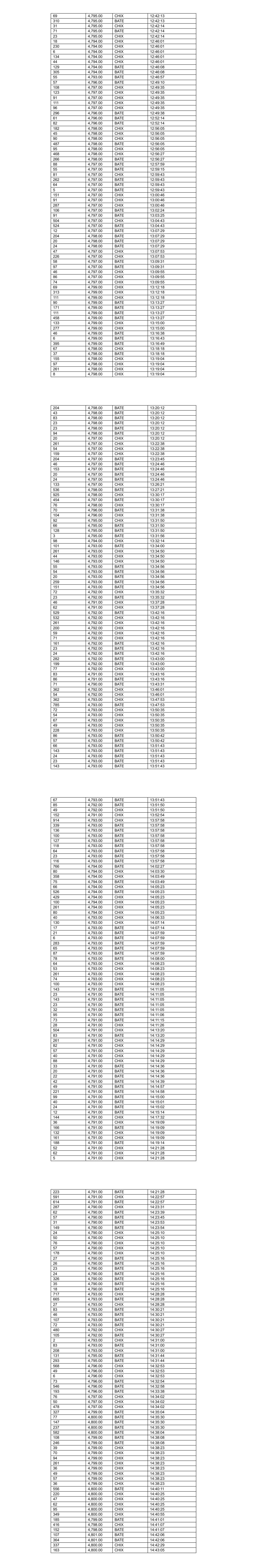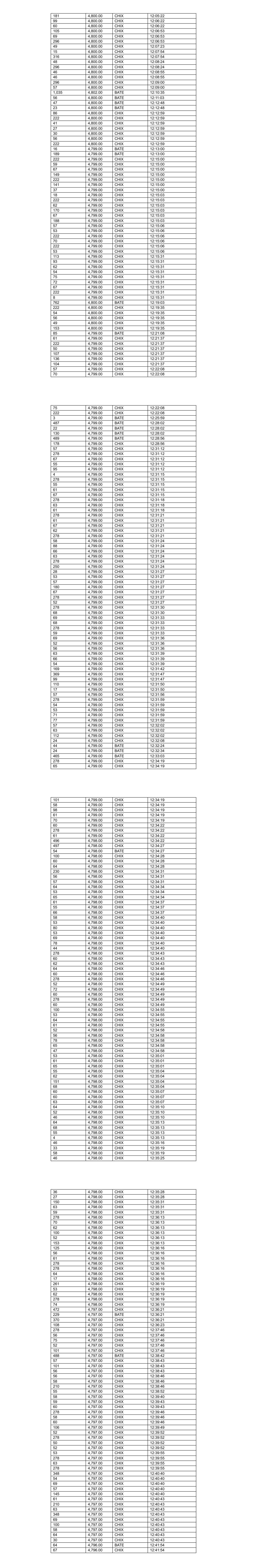 20 4,800.00 BATE 14:43:05 455 4,801.00 BATE 14:44:15 168 4,800.00 BATE 14:44:56 3 4,801.00 BATE 14:45:56 34 4,801.00 BATE 14:46:00 52 4,801.00 BATE 14:46:01 257 4,801.00 BATE 14:46:06 120 4,801.00 BATE 14:46:09 107 4,801.00 BATE 14:47:08 30 4,801.00 BATE 14:47:08 80 4,801.00 BATE 14:47:08 23 4,801.00 BATE 14:47:08 20 4,801.00 BATE 14:47:08 107 4,801.00 BATE 14:47:08 32 4,801.00 BATE 14:47:08 81 4,800.00 BATE 14:48:30 449 4,801.00 BATE 14:49:02 9 4,801.00 BATE 14:49:03 15 4,801.00 BATE 14:50:11 82 4,801.00 BATE 14:50:11 25 4,801.00 BATE 14:50:11 24 4,801.00 BATE 14:50:11 23 4,801.00 BATE 14:50:11 158 4,800.00 BATE 14:50:11 88 4,800.00 BATE 14:50:36 54 4,800.00 BATE 14:50:36 158 4,800.00 BATE 14:51:02 326 4,800.00 CHIX 14:51:05 57 4,800.00 CHIX 14:51:05 64 4,800.00 CHIX 14:51:05 88 4,800.00 CHIX 14:51:05 15 4,800.00 CHIX 14:51:05 57 4,800.00 CHIX 14:51:05 100 4,800.00 CHIX 14:51:05 37 4,800.00 CHIX 14:51:05 380 4,799.00 CHIX 14:51:09 49 4,802.00 BATE 14:53:14 107 4,802.00 BATE 14:53:14 24 4,802.00 BATE 14:53:14 107 4,802.00 BATE 14:53:14 348 4,802.00 BATE 14:53:14 100 4,801.00 BATE 14:53:49 65 4,801.00 BATE 14:53:49 23 4,801.00 BATE 14:54:45 107 4,801.00 BATE 14:54:45 24 4,801.00 BATE 14:54:45 24 4,801.00 BATE 14:54:45 107 4,801.00 BATE 14:54:45 107 4,801.00 BATE 14:54:45 22 4,801.00 BATE 14:54:45 1 4,801.00 BATE 14:54:45 62 4,800.00 BATE 14:55:36 148 4,800.00 CHIX 14:55:40 69 4,800.00 CHIX 14:55:40 24 4,800.00 CHIX 14:55:40 326 4,800.00 CHIX 14:55:40 57 4,800.00 CHIX 14:55:40 92 4,800.00 CHIX 14:55:40 64 4,800.00 CHIX 14:55:40 65 4,801.00 BATE 14:57:49 481 4,801.00 BATE 14:57:49 119 4,801.00 BATE 14:58:41 214 4,801.00 BATE 14:58:41 66 4,801.00 BATE 14:58:41 126 4,801.00 BATE 14:58:41 47 4,803.00 BATE 15:00:21 52 4,803.00 BATE 15:00:21 22 4,803.00 BATE 15:00:21 24 4,803.00 BATE 15:00:21 59 4,803.00 BATE 15:00:24 441 4,803.00 BATE 15:00:30 181 4,802.00 BATE 15:01:20 184 4,801.00 BATE 15:02:04 499 4,801.00 BATE 15:03:07 92 4,800.00 BATE 15:03:43 100 4,800.00 CHIX 15:03:48 52 4,800.00 CHIX 15:03:48 57 4,800.00 CHIX 15:03:48 60 4,800.00 CHIX 15:03:48 367 4,800.00 CHIX 15:03:48 240 4,798.00 CHIX 15:04:12 105 4,798.00 BATE 15:04:12 66 4,798.00 BATE 15:04:12 582 4,800.00 BATE 15:05:09 55 4,800.00 CHIX 15:05:20 34 4,800.00 CHIX 15:05:20 19 4,800.00 CHIX 15:05:20 117 4,800.00 BATE 15:05:59 58 4,800.00 BATE 15:05:59 82 4,800.00 CHIX 15:06:21 49 4,800.00 CHIX 15:06:21 37 4,800.00 CHIX 15:06:21 475 4,800.00 BATE 15:07:13 326 4,800.00 CHIX 15:07:22 110 4,800.00 CHIX 15:07:22 60 4,800.00 CHIX 15:07:22 52 4,802.00 BATE 15:08:29 19 4,802.00 BATE 15:09:00 46 4,802.00 BATE 15:09:00 107 4,802.00 BATE 15:09:00 23 4,802.00 BATE 15:09:00 23 4,802.00 BATE 15:09:00 107 4,802.00 BATE 15:09:00 104 4,802.00 BATE 15:09:00 193 4,802.00 BATE 15:10:01 214 4,802.00 BATE 15:10:01 83 4,801.00 BATE 15:10:21 167 4,800.00 BATE 15:11:02 86 4,800.00 CHIX 15:11:26 50 4,800.00 CHIX 15:11:26 63 4,800.00 CHIX 15:11:26 326 4,800.00 CHIX 15:11:26 92 4,800.00 CHIX 15:11:26 60 4,800.00 CHIX 15:11:26 154 4,799.00 CHIX 15:11:37 161 4,799.00 BATE 15:11:37 167 4,799.00 CHIX 15:11:37 53 4,799.00 CHIX 15:11:37 495 4,799.00 BATE 15:14:21 22 4,799.00 BATE 15:14:21 23 4,799.00 BATE 15:14:21 134 4,799.00 BATE 15:14:21 134 4,799.00 BATE 15:14:21 24 4,799.00 BATE 15:14:21 134 4,799.00 BATE 15:14:21 52 4,799.00 CHIX 15:14:21 53 4,799.00 CHIX 15:14:21 175 4,799.00 CHIX 15:14:21 60 4,799.00 CHIX 15:14:21 190 4,799.00 CHIX 15:14:21 92 4,799.00 CHIX 15:14:24 53 4,799.00 CHIX 15:14:24 53 4,799.00 CHIX 15:14:24 54 4,799.00 CHIX 15:14:27 60 4,799.00 CHIX 15:14:30 95 4,799.00 CHIX 15:14:30 60 4,799.00 CHIX 15:14:30 62 4,799.00 CHIX 15:14:30 326 4,799.00 CHIX 15:14:30 52 4,799.00 CHIX 15:14:33 38 4,799.00 CHIX 15:14:33 64 4,799.00 CHIX 15:14:33 93 4,799.00 CHIX 15:14:33 326 4,799.00 CHIX 15:14:33 86 4,799.00 CHIX 15:14:33 64 4,799.00 CHIX 15:14:59 29 4,799.00 CHIX 15:14:59 326 4,799.00 CHIX 15:14:59 63 4,799.00 CHIX 15:14:59 55 4,798.00 CHIX 15:15:25 186 4,798.00 CHIX 15:15:25 22 4,798.00 BATE 15:15:25 123 4,798.00 CHIX 15:15:25 83 4,798.00 BATE 15:15:36 3 4,798.00 BATE 15:15:36 133 4,798.00 BATE 15:15:36 71 4,798.00 BATE 15:15:46 200 4,798.00 BATE 15:15:55 40 4,798.00 CHIX 15:16:00 62 4,798.00 CHIX 15:16:00 59 4,798.00 CHIX 15:16:00 326 4,798.00 CHIX 15:16:00 48 4,798.00 CHIX 15:16:31 23 4,798.00 CHIX 15:16:31 147 4,798.00 CHIX 15:16:31 46 4,798.00 CHIX 15:16:31 52 4,798.00 CHIX 15:16:31 62 4,798.00 CHIX 15:16:31 326 4,798.00 CHIX 15:16:31 53 4,798.00 CHIX 15:16:31 25 4,798.00 CHIX 15:16:31 94 4,798.00 CHIX 15:16:31 232 4,798.00 CHIX 15:16:31 8 4,797.00 CHIX 15:16:54 172 4,797.00 BATE 15:16:54 96 4,797.00 CHIX 15:16:54 249 4,797.00 CHIX 15:16:54 237 4,797.00 CHIX 15:17:06 329 4,797.00 BATE 15:17:38 81 4,797.00 CHIX 15:18:02 73 4,797.00 CHIX 15:18:02 326 4,797.00 CHIX 15:18:02 44 4,798.00 CHIX 15:18:33 50 4,798.00 CHIX 15:18:33 231 4,798.00 CHIX 15:18:33 250 4,798.00 CHIX 15:18:33 40 4,798.00 CHIX 15:18:33 55 4,798.00 CHIX 15:18:33 20 4,798.00 CHIX 15:18:33 59 4,798.00 CHIX 15:18:33 29 4,798.00 CHIX 15:18:33 25 4,798.00 BATE 15:18:39 27 4,798.00 BATE 15:18:39 141 4,798.00 BATE 15:18:39 24 4,798.00 BATE 15:18:39 20 4,798.00 BATE 15:18:39 79 4,798.00 BATE 15:18:39 158 4,796.00 BATE 15:19:32 113 4,797.00 CHIX 15:19:34 45 4,797.00 CHIX 15:19:34 144 4,797.00 CHIX 15:19:34 59 4,797.00 CHIX 15:19:34 326 4,797.00 CHIX 15:19:34 95 4,797.00 CHIX 15:19:34 54 4,797.00 CHIX 15:19:34 332 4,796.00 CHIX 15:20:03 168 4,796.00 BATE 15:20:03 408 4,798.00 CHIX 15:21:59 60 4,798.00 CHIX 15:21:59 47 4,798.00 CHIX 15:21:59 175 4,799.00 CHIX 15:22:02 61 4,799.00 CHIX 15:22:02 71 4,799.00 BATE 15:22:02 754 4,799.00 BATE 15:22:02 97 4,799.00 CHIX 15:22:07 174 4,799.00 CHIX 15:22:07 99 4,799.00 BATE 15:23:14 134 4,799.00 BATE 15:23:14 24 4,799.00 BATE 15:23:14 24 4,799.00 BATE 15:23:14 28 4,799.00 BATE 15:23:14 113 4,798.00 CHIX 15:23:46 152 4,798.00 BATE 15:23:46 300 4,798.00 CHIX 15:23:46 65 4,798.00 CHIX 15:23:46 156 4,798.00 CHIX 15:23:46 100 4,798.00 CHIX 15:24:43 67 4,798.00 CH