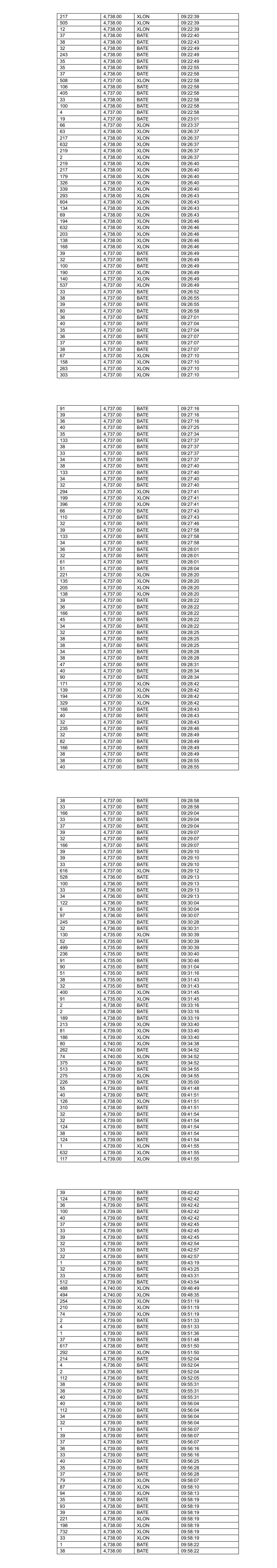 32 4,738.00 BATE 09:58:22 120 4,738.00 XLON 09:58:22 196 4,738.00 XLON 09:58:22 131 4,738.00 XLON 09:58:22 119 4,738.00 XLON 09:58:22 126 4,738.00 XLON 09:58:28 32 4,738.00 BATE 09:58:37 33 4,738.00 BATE 09:58:37 93 4,738.00 BATE 09:58:37 32 4,738.00 BATE 09:58:37 138 4,738.00 XLON 09:58:37 186 4,738.00 XLON 09:58:37 189 4,738.00 XLON 09:58:37 65 4,738.00 XLON 09:58:37 553 4,737.00 XLON 09:58:39 36 4,737.00 BATE 09:58:39 32 4,738.00 BATE 09:58:40 100 4,738.00 BATE 09:58:40 39 4,738.00 BATE 09:58:40 35 4,738.00 BATE 09:58:40 36 4,738.00 BATE 09:58:43 34 4,738.00 BATE 09:58:43 93 4,738.00 BATE 09:58:43 37 4,738.00 BATE 09:58:43 40 4,738.00 BATE 09:58:46 40 4,738.00 BATE 09:58:46 93 4,738.00 BATE 09:58:46 40 4,738.00 BATE 09:58:46 35 4,738.00 BATE 09:59:34 1 4,738.00 BATE 09:59:37 251 4,737.00 XLON 09:59:45 21 4,737.00 BATE 09:59:45 20 4,737.00 BATE 09:59:45 476 4,737.00 BATE 09:59:45 5 4,737.00 BATE 10:00:01 4 4,737.00 BATE 10:00:04 37 4,737.00 BATE 10:00:07 38 4,737.00 BATE 10:00:07 93 4,737.00 BATE 10:00:07 40 4,737.00 BATE 10:00:10 34 4,737.00 BATE 10:00:10 93 4,737.00 BATE 10:00:10 36 4,737.00 BATE 10:00:13 93 4,737.00 BATE 10:00:13 479 4,736.00 BATE 10:00:17 279 4,736.00 XLON 10:00:17 16 4,737.00 BATE 10:01:25 544 4,736.00 XLON 10:01:44 49 4,737.00 BATE 10:01:46 12 4,737.00 BATE 10:01:46 1 4,737.00 BATE 10:01:46 61 4,737.00 BATE 10:01:55 132 4,737.00 BATE 10:03:10 4 4,739.00 XLON 10:03:50 129 4,739.00 XLON 10:03:50 129 4,739.00 XLON 10:03:50 307 4,739.00 XLON 10:03:53 107 4,738.00 XLON 10:04:48 34 4,738.00 XLON 10:04:48 40 4,738.00 BATE 10:05:35 21 4,738.00 BATE 10:05:35 3 4,738.00 BATE 10:05:35 365 4,738.00 BATE 10:05:35 385 4,739.00 XLON 10:06:19 32 4,739.00 BATE 10:07:49 40 4,739.00 BATE 10:07:49 93 4,739.00 BATE 10:07:49 12 4,739.00 BATE 10:07:49 33 4,739.00 BATE 10:07:49 9 4,739.00 BATE 10:07:49 10 4,739.00 BATE 10:07:49 9 4,739.00 BATE 10:07:49 422 4,739.00 XLON 10:07:50 306 4,740.00 BATE 10:09:21 133 4,740.00 XLON 10:09:22 105 4,740.00 XLON 10:09:22 509 4,740.00 BATE 10:10:06 415 4,740.00 XLON 10:10:06 438 4,740.00 BATE 10:10:06 130 4,739.00 XLON 10:10:41 435 4,739.00 BATE 10:10:41 34 4,739.00 BATE 10:11:28 93 4,739.00 BATE 10:12:54 35 4,739.00 BATE 10:12:54 32 4,739.00 BATE 10:12:54 100 4,739.00 BATE 10:12:54 39 4,739.00 BATE 10:12:54 781 4,739.00 XLON 10:13:27 32 4,739.00 BATE 10:13:30 435 4,739.00 XLON 10:15:28 70 4,738.00 XLON 10:15:28 326 4,737.00 BATE 10:15:57 189 4,737.00 BATE 10:15:57 125 4,737.00 XLON 10:16:21 319 4,737.00 BATE 10:16:21 112 4,736.00 XLON 10:17:12 258 4,736.00 BATE 10:17:12 177 4,736.00 BATE 10:17:12 35 4,736.00 BATE 10:17:26 22 4,737.00 BATE 10:17:38 440 4,736.00 XLON 10:18:34 60 4,736.00 XLON 10:18:35 166 4,738.00 XLON 10:20:52 332 4,738.00 XLON 10:20:52 193 4,739.00 XLON 10:22:35 245 4,739.00 XLON 10:22:35 32 4,739.00 BATE 10:23:23 93 4,739.00 BATE 10:23:23 33 4,739.00 BATE 10:23:43 93 4,739.00 BATE 10:24:19 93 4,739.00 BATE 10:24:29 38 4,739.00 BATE 10:24:29 37 4,739.00 BATE 10:24:29 37 4,739.00 BATE 10:24:29 34 4,739.00 BATE 10:24:32 32 4,739.00 BATE 10:24:32 4 4,739.00 BATE 10:24:32 93 4,739.00 BATE 10:24:32 29 4,739.00 BATE 10:24:32 211 4,739.00 BATE 10:24:32 39 4,739.00 BATE 10:24:35 440 4,739.00 XLON 10:24:37 34 4,739.00 BATE 10:24:38 34 4,739.00 BATE 10:24:44 38 4,739.00 BATE 10:24:44 39 4,739.00 BATE 10:24:47 368 4,740.00 XLON 10:26:09 64 4,739.00 XLON 10:27:41 443 4,739.00 XLON 10:27:41 57 4,739.00 XLON 10:28:31 76 4,739.00 XLON 10:28:31 71 4,738.00 XLON 10:34:08 56 4,738.00 XLON 10:34:08 116 4,739.00 BATE 10:34:08 33 4,739.00 BATE 10:34:08 36 4,739.00 BATE 10:34:08 100 4,739.00 BATE 10:34:08 100 4,739.00 BATE 10:34:08 36 4,739.00 BATE 10:34:08 37 4,739.00 BATE 10:34:08 116 4,739.00 BATE 10:34:08 31 4,739.00 BATE 10:34:08 116 4,739.00 BATE 10:34:08 116 4,739.00 BATE 10:34:08 152 4,740.00 BATE 10:35:29 6 4,740.00 BATE 10:35:29 428 4,740.00 BATE 10:35:29 1,355 4,740.00 XLON 10:36:37 547 4,739.00 XLON 10:37:36 428 4,739.00 BATE 10:37:36 14 4,739.00 XLON 10:41:26 9 4,739.00 XLON 10:41:26 837 4,739.00 XLON 10:41:26 35 4,739.00 BATE 10:41:26 100 4,739.00 BATE 10:41:26 34 4,739.00 BATE 10:41:26 40 4,739.00 BATE 10:41:26 16 4,739.00 BATE 10:41:26 13 4,739.00 BATE 10:41:26 14 4,739.00 BATE 10:41:26 13 4,739.00 BATE 10:41:26 4 4,739.00 BATE 10:41:29 37 4,739.00 BATE 10:41:29 82 4,739.00 BATE 10:41:37 282 4,738.00 BATE 10:41:44 312 4,738.00 XLON 10:41:44 579 4,738.00 BATE 10:43:41 778 4,739.00 XLON 10:44:21 40 4,739.00 BATE 10:44:23 146 4,739.00 BATE 10:44:23 36 4,739.00 BATE 10:44:23 16 4,739.00 BATE 10:44:23 38 4,739.00 BATE 10:44:23 13 4,739.00 BATE 10:44:23 14 4,739.00 BATE 10:44:23 13 4,739.00 BATE 10:44:23 36 4,739.00 BATE 10:44:26 37 4,739.00 BATE 10:44:26 146 4,739.00 BATE 10:44:26 36 4,739.00 BATE 10:44:26 32 4,739.00 BATE 10:44:42 37 4,739.00 BATE 10:44:42 38 4,739.00 BATE 10:44:42 116 4,738.00 XLON 10:46:36 33 4,739.00 BATE 10:46:39 146 4,739.00 BATE 10:46:39 100 4,739.00 BATE 10:46:39 33 4,739.00 BATE 10:46:39 37 4,739.00 BATE 10:46:39 146 4,739.00 BATE 10:46:39 33 4,739.00 BATE 10:46:42 33 4,739.00 BATE 10:46:42 146 4,739.00 BATE 10:46:42 100 4,739.00 BATE 10:46:42 65 4,739.00 BATE 10:46:42 38 4,739.00 BATE 10:46:42 37 4,739.00 BATE 10:46:45 37 4,739.00 BATE 10:46:45 38 4,739.00 BATE 10:46:45 35 4,739.00 BATE 10:46:48 37 4,739.00 BATE 10:46:48 38 4,739.00 BATE 10:46:48 34 4,739.00 BATE 10:46:48 720 4,738.00 XLON 10:47:32 39 4,739.00 BATE 10:47:32 40 4,739.00 BATE 10:47:32 146 4,739.00 BATE 10:47:32 100 4,739.00 BATE 10:47:32 34 4,739.00 BATE 10:47:32 43 4,739.00 BATE 10:47:32 38 4,739.00 BATE 10:47:35 35 4,739.00 BATE 10:47:35 1 4,739.00 BATE 10:47:35 37 4,739.00 BATE 10:47:35 69 4,739.00 XLON 10:48:01 49 4,739.00 XLON 10:48:24 404 4,739.00 BATE 10:48:24 1,187 4,739.00 BATE 10:48:24 36 4,739.00 BATE 10:48:24 329 4,739.00 BATE 10:48:24 40 4,740.00 BATE 10:50:12 163 4,740.00 XLON 10:50:12 202 4,740.00 XLON 10:50:12 108 4,740.00 XLON 10:50:12 102 4,740.00 BATE 10:50:21 171 4,740.00 BATE 10:50:21 35 4,739.00 BATE 10:53:00 122 4,739.00 XLON 10: