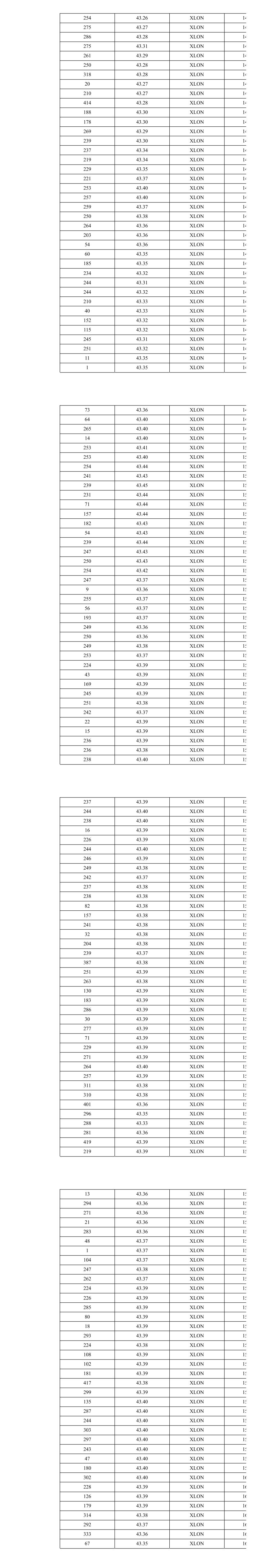 254 43.26 XLON 14 275 43.27 XLON 14 286 43.28 XLON 14 275 43.31 XLON 14 261 43.29 XLON 14 250 43.28 XLON 14 318 43.28 XLON 14 20 43.27 XLON 14 210 43.27 XLON 14 414 43.28 XLON 14 188 43.30 XLON 14 178 43.30 XLON 14 269 43.29 XLON 14 239 43.30 XLON 14 237 43.34 XLON 14 219 43.34 XLON 14 229 43.35 XLON 14 221 43.37 XLON 14 253 43.40 XLON 14 257 43.40 XLON 14 259 43.37 XLON 14 250 43.38 XLON 14 264 43.36 XLON 14 203 43.36 XLON 14 54 43.36 XLON 14 60 43.35 XLON 14 185 43.35 XLON 14 234 43.32 XLON 14 244 43.31 XLON 14 244 43.32 XLON 14 210 43.33 XLON 14 40 43.33 XLON 14 152 43.32 XLON 14 115 43.32 XLON 14 245 43.31 XLON 14 251 43.32 XLON 14 11 43.35 XLON 14 1 43.35 XLON 14 73 43.36 XLON 14 64 43.40 XLON 14 265 43.40 XLON 14 14 43.40 XLON 14 253 43.41 XLON 15 253 43.40 XLON 15 254 43.44 XLON 15 241 43.43 XLON 15 239 43.45 XLON 15 231 43.44 XLON 15 71 43.44 XLON 15 157 43.44 XLON 15 182 43.43 XLON 15 54 43.43 XLON 15 239 43.44 XLON 15 247 43.43 XLON 15 250 43.43 XLON 15 254 43.42 XLON 15 247 43.37 XLON 15 9 43.36 XLON 15 255 43.37 XLON 15 56 43.37 XLON 15 193 43.37 XLON 15 249 43.36 XLON 15 250 43.36 XLON 15 249 43.38 XLON 15 253 43.37 XLON 15 224 43.39 XLON 15 43 43.39 XLON 15 169 43.39 XLON 15 245 43.39 XLON 15 251 43.38 XLON 15 242 43.37 XLON 15 22 43.39 XLON 15 15 43.39 XLON 15 236 43.39 XLON 15 236 43.38 XLON 15 238 43.40 XLON 15 237 43.39 XLON 15 244 43.40 XLON 15 238 43.40 XLON 15 16 43.39 XLON 15 226 43.39 XLON 15 244 43.40 XLON 15 246 43.39 XLON 15 249 43.38 XLON 15 242 43.37 XLON 15 237 43.38 XLON 15 238 43.38 XLON 15 82 43.38 XLON 15 157 43.38 XLON 15 241 43.38 XLON 15 32 43.38 XLON 15 204 43.38 XLON 15 239 43.37 XLON 15 387 43.38 XLON 15 251 43.39 XLON 15 263 43.38 XLON 15 130 43.39 XLON 15 183 43.39 XLON 15 286 43.39 XLON 15 30 43.39 XLON 15 277 43.39 XLON 15 71 43.39 XLON 15 229 43.39 XLON 15 271 43.39 XLON 15 264 43.40 XLON 15 257 43.39 XLON 15 311 43.38 XLON 15 310 43.38 XLON 15 401 43.36 XLON 15 296 43.35 XLON 15 288 43.33 XLON 15 281 43.36 XLON 15 419 43.39 XLON 15 219 43.39 XLON 15 13 43.36 XLON 15 294 43.36 XLON 15 271 43.36 XLON 15 21 43.36 XLON 15 283 43.36 XLON 15 48 43.37 XLON 15 1 43.37 XLON 15 104 43.37 XLON 15 247 43.38 XLON 15 262 43.37 XLON 15 224 43.39 XLON 15 226 43.39 XLON 15 285 43.39 XLON 15 80 43.39 XLON 15 18 43.39 XLON 15 293 43.39 XLON 15 224 43.38 XLON 15 108 43.39 XLON 15 102 43.39 XLON 15 181 43.39 XLON 15 417 43.38 XLON 15 299 43.39 XLON 15 135 43.40 XLON 15 287 43.40 XLON 15 244 43.40 XLON 15 303 43.40 XLON 15 297 43.40 XLON 15 243 43.40 XLON 15 47 43.40 XLON 15 180 43.40 XLON 15 302 43.40 XLON 16 228 43.39 XLON 16 126 43.39 XLON 16 179 43.39 XLON 16 314 43.38 XLON 16 292 43.37 XLON 16 333 43.36 XLON 16 67 43.35 XLON 16