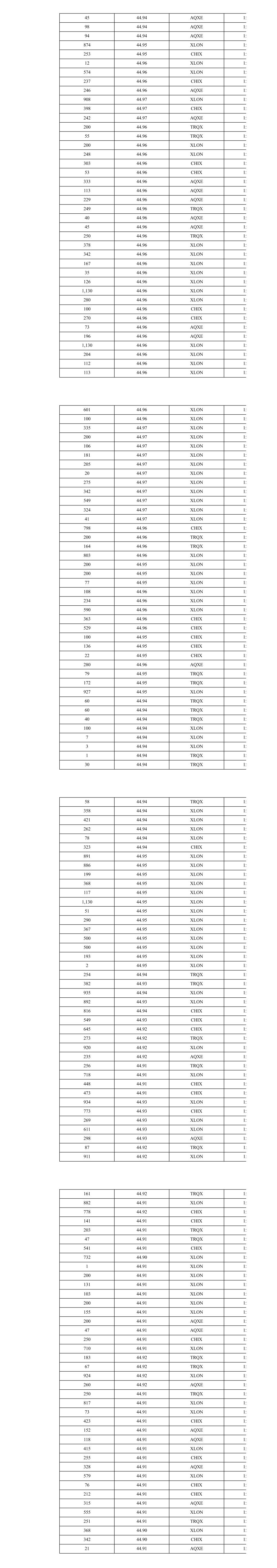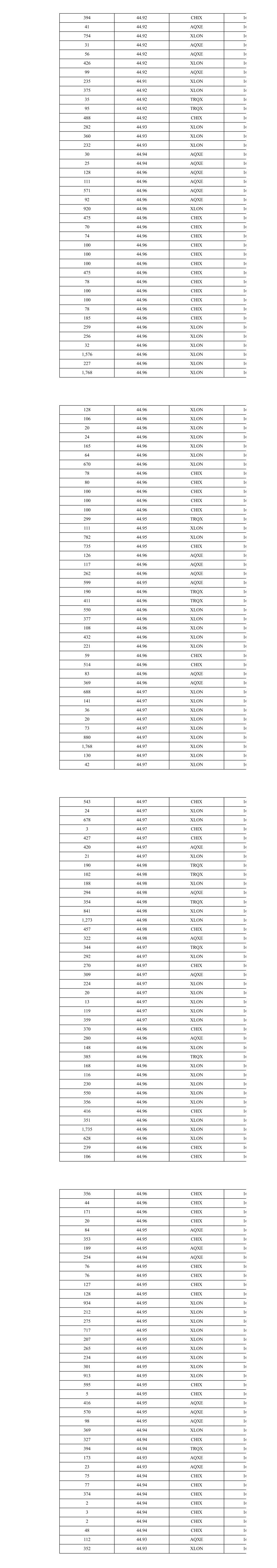 45 44.94 AQXE 15 98 44.94 AQXE 15 94 44.94 AQXE 15 874 44.95 XLON 15 253 44.95 CHIX 15 12 44.96 XLON 15 574 44.96 XLON 15 237 44.96 CHIX 15 246 44.96 AQXE 15 908 44.97 XLON 15 398 44.97 CHIX 15 242 44.97 AQXE 15 200 44.96 TRQX 15 55 44.96 TRQX 15 200 44.96 XLON 15 248 44.96 XLON 15 303 44.96 CHIX 15 53 44.96 CHIX 15 333 44.96 AQXE 15 113 44.96 AQXE 15 229 44.96 AQXE 15 249 44.96 TRQX 15 40 44.96 AQXE 15 45 44.96 AQXE 15 250 44.96 TRQX 15 378 44.96 XLON 15 342 44.96 XLON 15 167 44.96 XLON 15 35 44.96 XLON 15 126 44.96 XLON 15 1,130 44.96 XLON 15 280 44.96 XLON 15 100 44.96 CHIX 15 270 44.96 CHIX 15 73 44.96 AQXE 15 196 44.96 AQXE 15 1,130 44.96 XLON 15 204 44.96 XLON 15 112 44.96 XLON 15 113 44.96 XLON 15 601 44.96 XLON 15 100 44.96 XLON 15 335 44.97 XLON 15 200 44.97 XLON 15 106 44.97 XLON 15 181 44.97 XLON 15 205 44.97 XLON 15 20 44.97 XLON 15 275 44.97 XLON 15 342 44.97 XLON 15 549 44.97 XLON 15 324 44.97 XLON 15 41 44.97 XLON 15 798 44.96 CHIX 15 200 44.96 TRQX 15 164 44.96 TRQX 15 803 44.96 XLON 15 200 44.95 XLON 15 200 44.95 XLON 15 77 44.95 XLON 15 108 44.96 XLON 15 234 44.96 XLON 15 590 44.96 XLON 15 363 44.96 CHIX 15 529 44.96 CHIX 15 100 44.95 CHIX 15 136 44.95 CHIX 15 22 44.95 CHIX 15 280 44.96 AQXE 15 79 44.95 TRQX 15 172 44.95 TRQX 15 927 44.95 XLON 15 60 44.94 TRQX 15 60 44.94 TRQX 15 40 44.94 TRQX 15 100 44.94 XLON 15 7 44.94 XLON 15 3 44.94 XLON 15 1 44.94 TRQX 15 30 44.94 TRQX 15 58 44.94 TRQX 15 358 44.94 XLON 15 421 44.94 XLON 15 262 44.94 XLON 15 78 44.94 XLON 15 323 44.94 CHIX 15 891 44.95 XLON 15 886 44.95 XLON 15 199 44.95 XLON 15 368 44.95 XLON 15 117 44.95 XLON 15 1,130 44.95 XLON 15 51 44.95 XLON 15 290 44.95 XLON 15 367 44.95 XLON 15 500 44.95 XLON 15 500 44.95 XLON 15 193 44.95 XLON 15 2 44.95 XLON 15 254 44.94 TRQX 15 382 44.93 TRQX 15 935 44.94 XLON 15 892 44.93 XLON 15 816 44.94 CHIX 15 549 44.93 CHIX 15 645 44.92 CHIX 15 273 44.92 TRQX 15 920 44.92 XLON 15 235 44.92 AQXE 15 256 44.91 TRQX 15 718 44.91 XLON 15 448 44.91 CHIX 15 473 44.91 CHIX 15 934 44.93 XLON 15 773 44.93 CHIX 15 269 44.93 XLON 15 611 44.93 XLON 15 298 44.93 AQXE 15 87 44.92 TRQX 15 911 44.92 XLON 15 161 44.92 TRQX 15 882 44.91 XLON 15 778 44.92 CHIX 15 141 44.91 CHIX 15 203 44.91 TRQX 15 47 44.91 TRQX 15 541 44.91 CHIX 15 732 44.90 XLON 15 1 44.91 XLON 15 200 44.91 XLON 15 131 44.91 XLON 15 103 44.91 XLON 15 200 44.91 XLON 15 155 44.91 XLON 15 200 44.91 AQXE 15 47 44.91 AQXE 15 250 44.91 CHIX 15 710 44.91 XLON 15 183 44.92 TRQX 15 67 44.92 TRQX 15 924 44.92 XLON 15 260 44.92 AQXE 15 250 44.91 TRQX 15 817 44.91 XLON 15 73 44.91 XLON 15 423 44.91 CHIX 15 152 44.91 AQXE 15 118 44.91 AQXE 15 415 44.91 XLON 15 255 44.91 CHIX 15 328 44.91 AQXE 15 579 44.91 XLON 15 76 44.91 CHIX 15 212 44.91 CHIX 15 315 44.91 AQXE 15 555 44.91 XLON 15 251 44.91 TRQX 15 368 44.90 XLON 15 342 44.90 CHIX 15 21 44.91 AQXE 15
