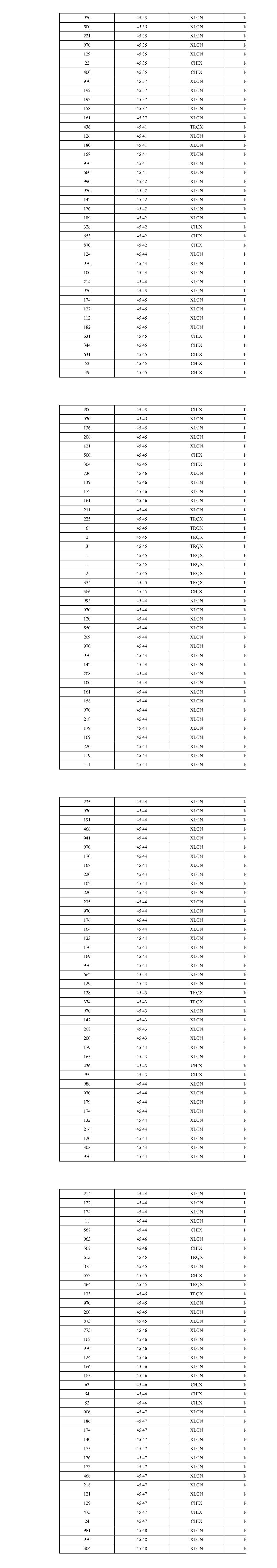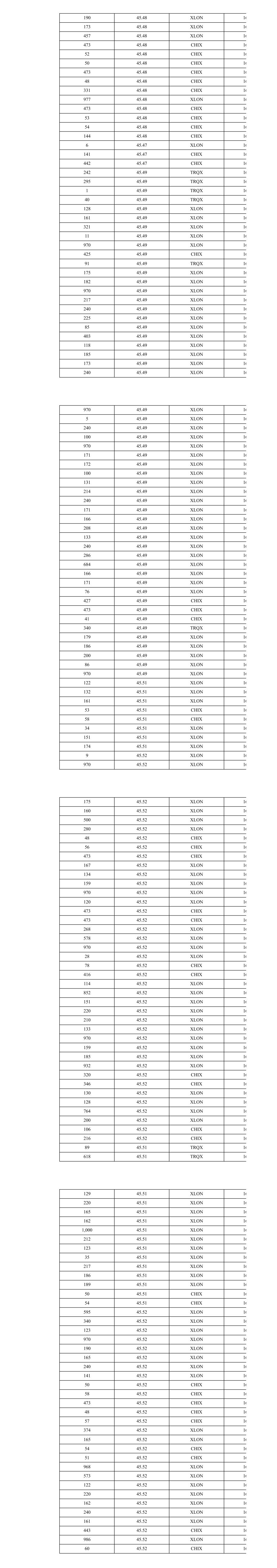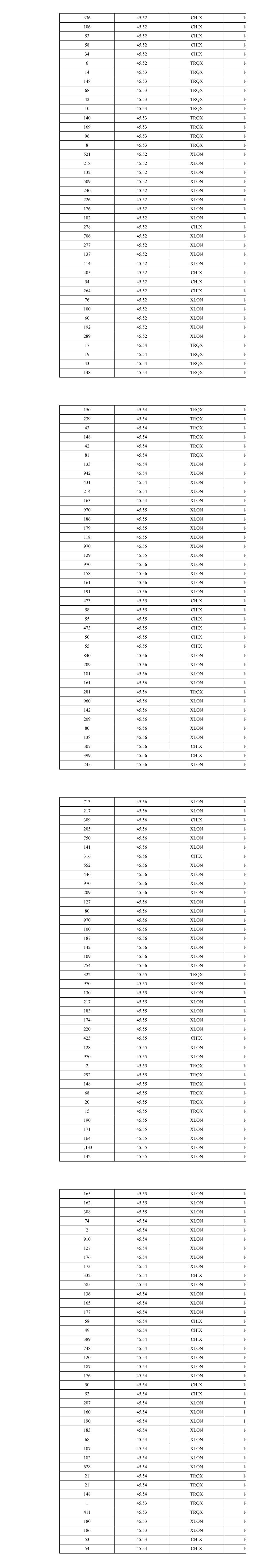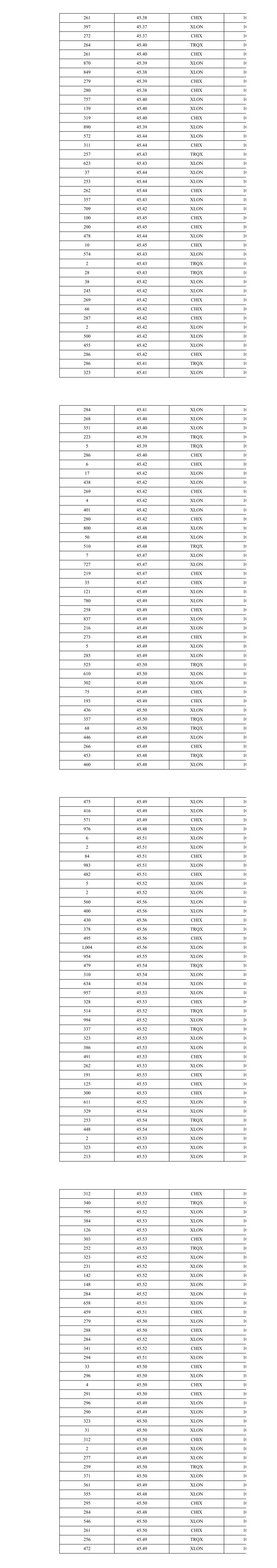 261 45.38 CHIX 10 397 45.37 XLON 10 272 45.37 CHIX 10 264 45.40 TRQX 10 261 45.40 CHIX 10 870 45.39 XLON 10 849 45.38 XLON 10 279 45.39 CHIX 10 280 45.38 CHIX 10 757 45.40 XLON 10 139 45.40 XLON 10 319 45.40 CHIX 10 890 45.39 XLON 10 572 45.44 XLON 10 311 45.44 CHIX 10 257 45.43 TRQX 10 623 45.43 XLON 10 37 45.44 XLON 10 253 45.44 XLON 10 262 45.44 CHIX 10 357 45.43 XLON 10 709 45.42 XLON 10 100 45.45 CHIX 10 200 45.45 CHIX 10 478 45.44 XLON 10 10 45.45 CHIX 10 574 45.43 XLON 10 2 45.43 TRQX 10 28 45.43 TRQX 10 38 45.42 XLON 10 245 45.42 XLON 10 269 45.42 CHIX 10 66 45.42 CHIX 10 287 45.42 CHIX 10 2 45.42 XLON 10 500 45.42 XLON 10 455 45.42 XLON 10 286 45.42 CHIX 10 286 45.41 TRQX 10 323 45.41 XLON 10 284 45.41 XLON 10 268 45.40 XLON 10 351 45.40 XLON 10 223 45.39 TRQX 10 5 45.39 TRQX 10 286 45.40 CHIX 10 6 45.42 CHIX 10 17 45.42 XLON 10 438 45.42 XLON 10 269 45.42 CHIX 10 4 45.42 XLON 10 401 45.42 XLON 10 280 45.42 CHIX 10 800 45.48 XLON 10 50 45.48 XLON 10 510 45.48 TRQX 10 7 45.47 XLON 10 727 45.47 XLON 10 219 45.47 CHIX 10 35 45.47 CHIX 10 121 45.49 XLON 10 780 45.49 XLON 10 258 45.49 CHIX 10 837 45.49 XLON 10 216 45.49 XLON 10 273 45.49 CHIX 10 5 45.49 XLON 10 285 45.49 XLON 10 525 45.50 TRQX 10 610 45.50 XLON 10 302 45.49 XLON 10 75 45.49 CHIX 10 193 45.49 CHIX 10 436 45.50 XLON 10 357 45.50 TRQX 10 68 45.50 TRQX 10 446 45.49 XLON 10 266 45.49 CHIX 10 453 45.48 TRQX 10 460 45.48 XLON 10 475 45.49 XLON 10 416 45.49 XLON 10 571 45.49 CHIX 10 976 45.48 XLON 10 6 45.51 XLON 10 2 45.51 XLON 10 84 45.51 CHIX 10 983 45.51 XLON 10 482 45.51 CHIX 10 5 45.52 XLON 10 2 45.52 XLON 10 560 45.56 XLON 10 400 45.56 XLON 10 430 45.56 CHIX 10 378 45.56 TRQX 10 495 45.56 CHIX 10 1,004 45.56 XLON 10 954 45.55 XLON 10 479 45.54 TRQX 10 310 45.54 XLON 10 634 45.54 XLON 10 957 45.53 XLON 10 328 45.53 CHIX 10 514 45.52 TRQX 10 994 45.52 XLON 10 337 45.52 TRQX 10 323 45.53 XLON 10 386 45.53 XLON 10 491 45.53 CHIX 10 262 45.53 XLON 10 191 45.53 CHIX 10 125 45.53 CHIX 10 300 45.53 CHIX 10 611 45.52 XLON 10 329 45.54 XLON 10 253 45.54 TRQX 10 448 45.54 XLON 10 2 45.53 XLON 10 323 45.53 XLON 10 213 45.53 XLON 10 312 45.53 CHIX 10 340 45.52 TRQX 10 795 45.52 XLON 10 384 45.53 XLON 10 126 45.53 XLON 10 303 45.53 CHIX 10 252 45.53 TRQX 10 323 45.52 XLON 10 231 45.52 XLON 10 142 45.52 XLON 10 148 45.52 XLON 10 284 45.52 XLON 10 658 45.51 XLON 10 459 45.51 CHIX 10 279 45.50 XLON 10 288 45.50 CHIX 10 284 45.52 XLON 10 341 45.52 CHIX 10 294 45.51 XLON 10 33 45.50 CHIX 10 296 45.50 XLON 10 4 45.50 CHIX 10 291 45.50 CHIX 10 296 45.49 XLON 10 290 45.49 XLON 10 323 45.50 XLON 10 31 45.50 XLON 10 312 45.50 CHIX 10 2 45.49 XLON 10 277 45.49 XLON 10 259 45.50 TRQX 10 371 45.50 XLON 10 361 45.49 XLON 10 355 45.48 XLON 10 295 45.50 CHIX 10 284 45.48 CHIX 10 546 45.50 XLON 10 261 45.50 CHIX 10 256 45.49 TRQX 10 472 45.49 XLON 10
