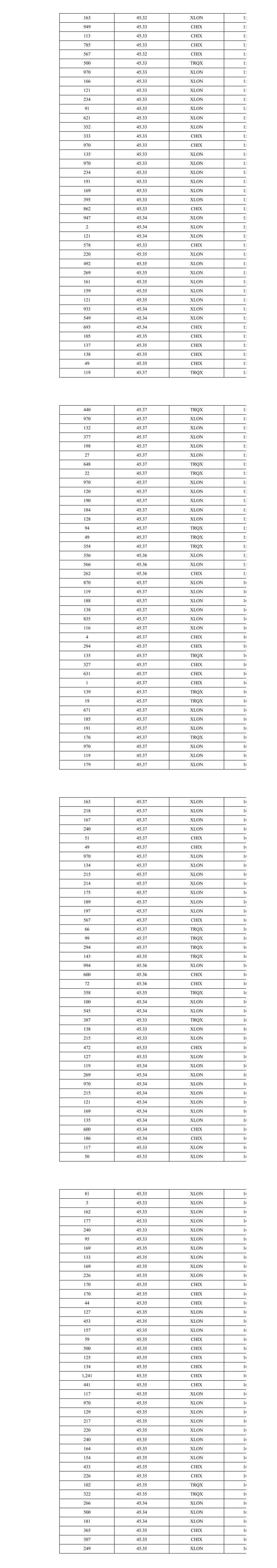 163 45.32 XLON 15 949 45.33 CHIX 15 113 45.33 CHIX 15 785 45.33 CHIX 15 567 45.32 CHIX 15 500 45.33 TRQX 15 970 45.33 XLON 15 166 45.33 XLON 15 121 45.33 XLON 15 234 45.33 XLON 15 91 45.33 XLON 15 621 45.33 XLON 15 352 45.33 XLON 15 333 45.33 CHIX 15 970 45.33 CHIX 15 135 45.33 XLON 15 970 45.33 XLON 15 234 45.33 XLON 15 191 45.33 XLON 15 169 45.33 XLON 15 395 45.33 XLON 15 862 45.33 CHIX 15 947 45.34 XLON 15 2 45.34 XLON 15 121 45.34 XLON 15 578 45.33 CHIX 15 220 45.35 XLON 15 492 45.35 XLON 15 269 45.35 XLON 15 161 45.35 XLON 15 159 45.35 XLON 15 121 45.35 XLON 15 933 45.34 XLON 15 549 45.34 XLON 15 693 45.34 CHIX 15 105 45.35 CHIX 15 137 45.35 CHIX 15 138 45.35 CHIX 15 49 45.35 CHIX 15 119 45.37 TRQX 15 440 45.37 TRQX 15 970 45.37 XLON 15 132 45.37 XLON 15 377 45.37 XLON 15 198 45.37 XLON 15 27 45.37 XLON 15 648 45.37 TRQX 15 22 45.37 TRQX 15 970 45.37 XLON 15 120 45.37 XLON 15 190 45.37 XLON 15 184 45.37 XLON 15 128 45.37 XLON 15 94 45.37 TRQX 15 49 45.37 TRQX 15 354 45.37 TRQX 15 356 45.36 XLON 15 566 45.36 XLON 15 262 45.36 CHIX 15 870 45.37 XLON 16 119 45.37 XLON 16 188 45.37 XLON 16 138 45.37 XLON 16 835 45.37 XLON 16 116 45.37 XLON 16 4 45.37 CHIX 16 294 45.37 CHIX 16 135 45.37 TRQX 16 327 45.37 CHIX 16 631 45.37 CHIX 16 1 45.37 CHIX 16 139 45.37 TRQX 16 19 45.37 TRQX 16 671 45.37 XLON 16 185 45.37 XLON 16 191 45.37 XLON 16 176 45.37 TRQX 16 970 45.37 XLON 16 119 45.37 XLON 16 179 45.37 XLON 16 163 45.37 XLON 16 218 45.37 XLON 16 167 45.37 XLON 16 240 45.37 XLON 16 51 45.37 CHIX 16 49 45.37 CHIX 16 970 45.37 XLON 16 134 45.37 XLON 16 215 45.37 XLON 16 214 45.37 XLON 16 175 45.37 XLON 16 189 45.37 XLON 16 197 45.37 XLON 16 567 45.37 CHIX 16 66 45.37 TRQX 16 99 45.37 TRQX 16 294 45.37 TRQX 16 143 45.35 TRQX 16 994 45.36 XLON 16 600 45.36 CHIX 16 72 45.36 CHIX 16 358 45.35 TRQX 16 100 45.34 XLON 16 545 45.34 XLON 16 387 45.33 TRQX 16 138 45.33 XLON 16 215 45.33 XLON 16 472 45.33 CHIX 16 127 45.33 XLON 16 119 45.34 XLON 16 269 45.34 XLON 16 970 45.34 XLON 16 215 45.34 XLON 16 121 45.34 XLON 16 169 45.34 XLON 16 135 45.34 XLON 16 600 45.34 CHIX 16 186 45.34 CHIX 16 117 45.33 XLON 16 50 45.33 XLON 16 81 45.33 XLON 16 3 45.33 XLON 16 162 45.33 XLON 16 177 45.33 XLON 16 240 45.33 XLON 16 95 45.33 XLON 16 169 45.35 XLON 16 133 45.35 XLON 16 169 45.35 XLON 16 226 45.35 XLON 16 170 45.35 CHIX 16 170 45.35 CHIX 16 44 45.35 CHIX 16 127 45.35 XLON 16 453 45.35 XLON 16 157 45.35 XLON 16 59 45.35 CHIX 16 500 45.35 CHIX 16 125 45.35 CHIX 16 134 45.35 CHIX 16 1,241 45.35 CHIX 16 441 45.35 CHIX 16 117 45.35 XLON 16 970 45.35 XLON 16 129 45.35 XLON 16 217 45.35 XLON 16 220 45.35 XLON 16 240 45.35 XLON 16 164 45.35 XLON 16 154 45.35 XLON 16 433 45.35 CHIX 16 226 45.35 CHIX 16 102 45.35 TRQX 16 322 45.35 TRQX 16 266 45.34 XLON 16 500 45.34 XLON 16 181 45.34 XLON 16 365 45.35 CHIX 16 307 45.35 CHIX 16 249 45.35 XLON 16
