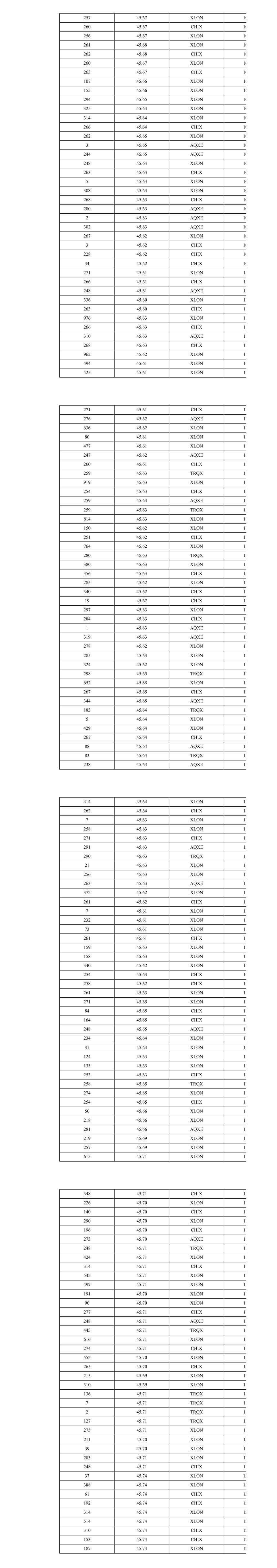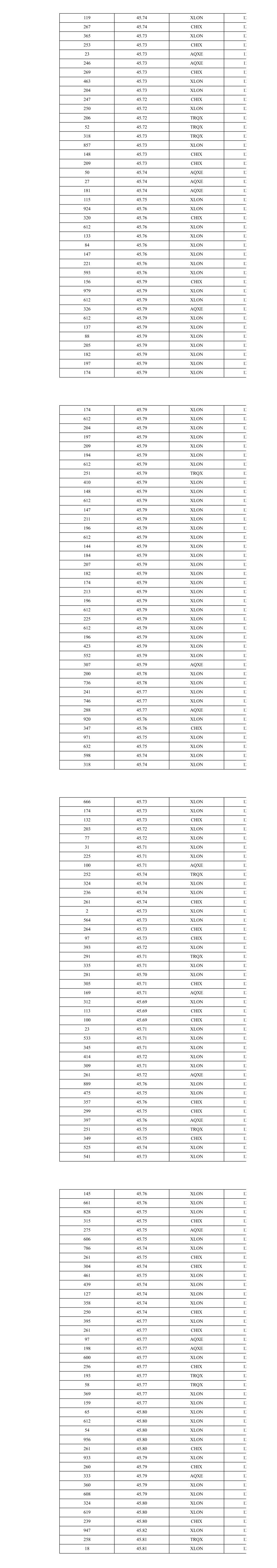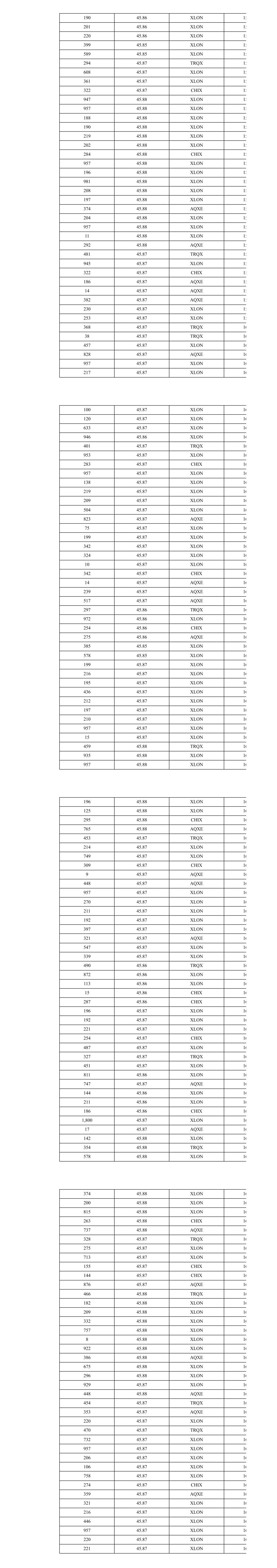 257 45.67 XLON 10 260 45.67 CHIX 10 256 45.67 XLON 10 261 45.68 XLON 10 262 45.68 CHIX 10 260 45.67 XLON 10 263 45.67 CHIX 10 107 45.66 XLON 10 155 45.66 XLON 10 294 45.65 XLON 10 325 45.64 XLON 10 314 45.64 XLON 10 266 45.64 CHIX 10 262 45.65 XLON 10 3 45.65 AQXE 10 244 45.65 AQXE 10 248 45.64 XLON 10 263 45.64 CHIX 10 5 45.63 XLON 10 308 45.63 XLON 10 268 45.63 CHIX 10 280 45.63 AQXE 10 2 45.63 AQXE 10 302 45.63 AQXE 10 267 45.62 XLON 10 3 45.62 CHIX 10 228 45.62 CHIX 10 34 45.62 CHIX 10 271 45.61 XLON 11 266 45.61 CHIX 11 248 45.61 AQXE 11 336 45.60 XLON 11 263 45.60 CHIX 11 976 45.63 XLON 11 266 45.63 CHIX 11 310 45.63 AQXE 11 268 45.63 CHIX 11 962 45.62 XLON 11 494 45.61 XLON 11 425 45.61 XLON 11 271 45.61 CHIX 11 276 45.62 AQXE 11 636 45.62 XLON 11 80 45.61 XLON 11 477 45.61 XLON 11 247 45.62 AQXE 11 260 45.61 CHIX 11 259 45.63 TRQX 11 919 45.63 XLON 11 254 45.63 CHIX 11 259 45.63 AQXE 11 259 45.63 TRQX 11 814 45.63 XLON 11 150 45.62 XLON 11 251 45.62 CHIX 11 764 45.62 XLON 11 280 45.63 TRQX 11 380 45.63 XLON 11 356 45.63 CHIX 11 285 45.62 XLON 11 340 45.62 CHIX 11 19 45.62 CHIX 11 297 45.63 XLON 11 284 45.63 CHIX 11 1 45.63 AQXE 11 319 45.63 AQXE 11 278 45.62 XLON 11 285 45.63 XLON 11 324 45.62 XLON 11 298 45.65 TRQX 11 652 45.65 XLON 11 267 45.65 CHIX 11 344 45.65 AQXE 11 183 45.64 TRQX 11 5 45.64 XLON 11 429 45.64 XLON 11 267 45.64 CHIX 11 88 45.64 AQXE 11 83 45.64 TRQX 11 238 45.64 AQXE 11 414 45.64 XLON 11 262 45.64 CHIX 11 7 45.63 XLON 11 258 45.63 XLON 11 271 45.63 CHIX 11 291 45.63 AQXE 11 290 45.63 TRQX 11 21 45.63 XLON 11 256 45.63 XLON 11 263 45.63 AQXE 11 372 45.62 XLON 11 261 45.62 CHIX 11 7 45.61 XLON 11 232 45.61 XLON 11 73 45.61 XLON 11 261 45.61 CHIX 11 159 45.63 XLON 11 158 45.63 XLON 11 340 45.62 XLON 11 254 45.63 CHIX 11 258 45.62 CHIX 11 261 45.63 XLON 11 271 45.65 XLON 11 84 45.65 CHIX 11 164 45.65 CHIX 11 248 45.65 AQXE 11 234 45.64 XLON 11 31 45.64 XLON 11 124 45.63 XLON 11 135 45.63 XLON 11 253 45.63 CHIX 11 258 45.65 TRQX 11 274 45.65 XLON 11 254 45.65 CHIX 11 50 45.66 XLON 11 218 45.66 XLON 11 281 45.66 AQXE 11 219 45.69 XLON 11 257 45.69 XLON 11 615 45.71 XLON 11 348 45.71 CHIX 11 226 45.70 XLON 11 140 45.70 CHIX 11 290 45.70 XLON 11 196 45.70 CHIX 11 273 45.70 AQXE 11 248 45.71 TRQX 11 424 45.71 XLON 11 314 45.71 CHIX 11 545 45.71 XLON 11 497 45.71 XLON 11 191 45.70 XLON 11 90 45.70 XLON 11 277 45.71 CHIX 11 248 45.71 AQXE 11 445 45.71 TRQX 11 616 45.71 XLON 11 274 45.71 CHIX 11 552 45.70 XLON 11 265 45.70 CHIX 11 215 45.69 XLON 11 310 45.69 XLON 11 136 45.71 TRQX 11 7 45.71 TRQX 11 2 45.71 TRQX 11 127 45.71 TRQX 11 275 45.71 XLON 11 211 45.70 XLON 11 39 45.70 XLON 11 283 45.71 XLON 11 248 45.71 CHIX 11 37 45.74 XLON 12 388 45.74 XLON 12 61 45.74 CHIX 12 192 45.74 CHIX 12 314 45.74 XLON 12 514 45.74 XLON 12 310 45.74 CHIX 12 153 45.74 CHIX 12 187 45.74 XLON 12