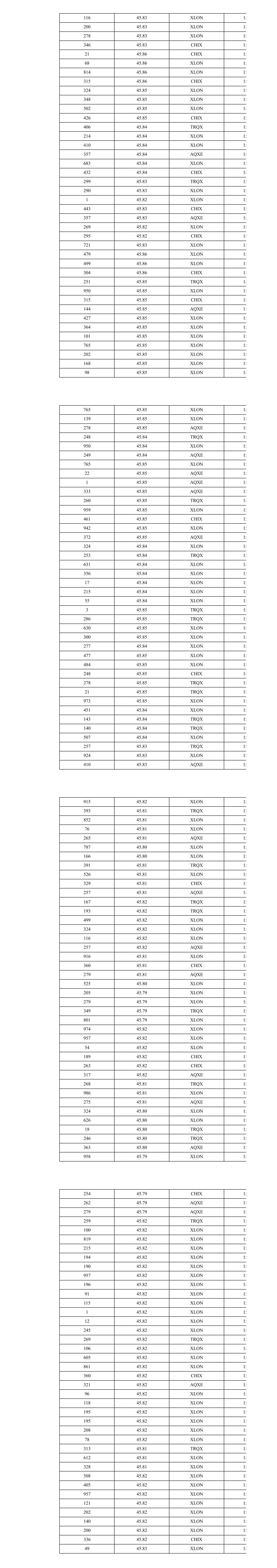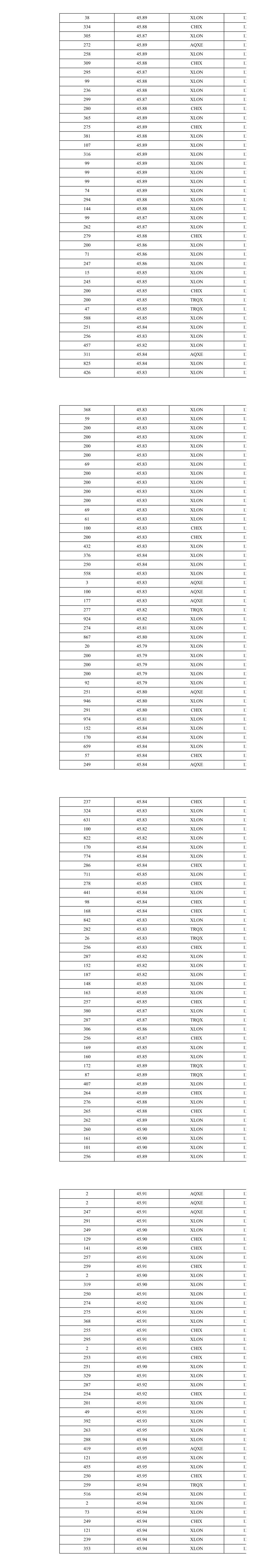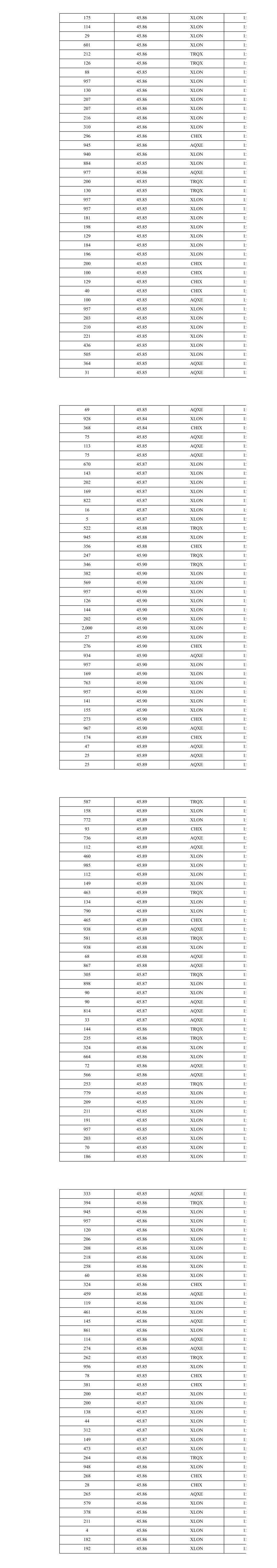 38 45.89 XLON 13 334 45.88 CHIX 13 305 45.87 XLON 13 272 45.89 AQXE 13 258 45.89 XLON 13 309 45.88 CHIX 13 295 45.87 XLON 13 99 45.88 XLON 13 236 45.88 XLON 13 299 45.87 XLON 13 280 45.88 CHIX 13 365 45.89 XLON 13 275 45.89 CHIX 13 381 45.88 XLON 13 107 45.89 XLON 13 316 45.89 XLON 13 99 45.89 XLON 13 99 45.89 XLON 13 99 45.89 XLON 13 74 45.89 XLON 13 294 45.88 XLON 13 144 45.88 XLON 13 99 45.87 XLON 13 262 45.87 XLON 13 279 45.88 CHIX 13 200 45.86 XLON 13 71 45.86 XLON 13 247 45.86 XLON 13 15 45.85 XLON 13 245 45.85 XLON 13 200 45.85 CHIX 13 200 45.85 TRQX 13 47 45.85 TRQX 13 588 45.85 XLON 13 251 45.84 XLON 13 256 45.83 XLON 13 457 45.82 XLON 13 311 45.84 AQXE 13 825 45.84 XLON 13 426 45.83 XLON 13 368 45.83 XLON 13 59 45.83 XLON 13 200 45.83 XLON 13 200 45.83 XLON 13 200 45.83 XLON 13 200 45.83 XLON 13 69 45.83 XLON 13 200 45.83 XLON 13 200 45.83 XLON 13 200 45.83 XLON 13 200 45.83 XLON 13 69 45.83 XLON 13 61 45.83 XLON 13 100 45.83 CHIX 13 200 45.83 CHIX 13 432 45.83 XLON 13 376 45.84 XLON 13 250 45.84 XLON 13 558 45.83 XLON 13 3 45.83 AQXE 13 100 45.83 AQXE 13 177 45.83 AQXE 13 277 45.82 TRQX 13 924 45.82 XLON 13 274 45.81 XLON 13 867 45.80 XLON 13 20 45.79 XLON 13 200 45.79 XLON 13 200 45.79 XLON 13 200 45.79 XLON 13 92 45.79 XLON 13 251 45.80 AQXE 13 946 45.80 XLON 13 291 45.80 CHIX 13 974 45.81 XLON 13 152 45.84 XLON 13 170 45.84 XLON 13 659 45.84 XLON 13 57 45.84 CHIX 13 249 45.84 AQXE 13 237 45.84 CHIX 13 324 45.83 XLON 13 631 45.83 XLON 13 100 45.82 XLON 13 822 45.82 XLON 13 170 45.84 XLON 13 774 45.84 XLON 13 286 45.84 CHIX 13 711 45.85 XLON 13 278 45.85 CHIX 13 441 45.84 XLON 13 98 45.84 CHIX 13 168 45.84 CHIX 13 842 45.83 XLON 13 282 45.83 TRQX 13 26 45.83 TRQX 13 256 45.83 CHIX 13 287 45.82 XLON 13 152 45.82 XLON 13 187 45.82 XLON 13 148 45.85 XLON 13 163 45.85 XLON 13 257 45.85 CHIX 13 380 45.87 XLON 13 287 45.87 TRQX 13 306 45.86 XLON 13 256 45.87 CHIX 13 169 45.85 XLON 13 160 45.85 XLON 13 172 45.89 TRQX 13 87 45.89 TRQX 13 407 45.89 XLON 13 264 45.89 CHIX 13 276 45.88 XLON 13 265 45.88 CHIX 13 262 45.89 XLON 13 260 45.90 XLON 13 161 45.90 XLON 13 101 45.90 XLON 13 256 45.89 XLON 13 2 45.91 AQXE 13 2 45.91 AQXE 13 247 45.91 AQXE 13 291 45.91 XLON 13 249 45.90 XLON 13 129 45.90 CHIX 13 141 45.90 CHIX 13 257 45.91 XLON 13 259 45.91 CHIX 13 2 45.90 XLON 13 319 45.90 XLON 13 250 45.91 XLON 13 274 45.92 XLON 13 275 45.91 XLON 13 368 45.91 XLON 13 255 45.91 CHIX 13 295 45.91 XLON 13 2 45.91 CHIX 13 253 45.91 CHIX 13 251 45.90 XLON 13 329 45.91 XLON 13 287 45.92 XLON 13 254 45.92 CHIX 13 201 45.91 XLON 13 49 45.91 XLON 13 392 45.93 XLON 13 263 45.95 XLON 13 288 45.94 XLON 13 419 45.95 AQXE 13 121 45.95 XLON 13 455 45.95 XLON 13 250 45.95 CHIX 13 259 45.94 TRQX 13 516 45.94 XLON 13 2 45.94 XLON 13 73 45.94 XLON 13 249 45.94 CHIX 13 121 45.94 XLON 13 239 45.94 XLON 13 353 45.94 XLON 13