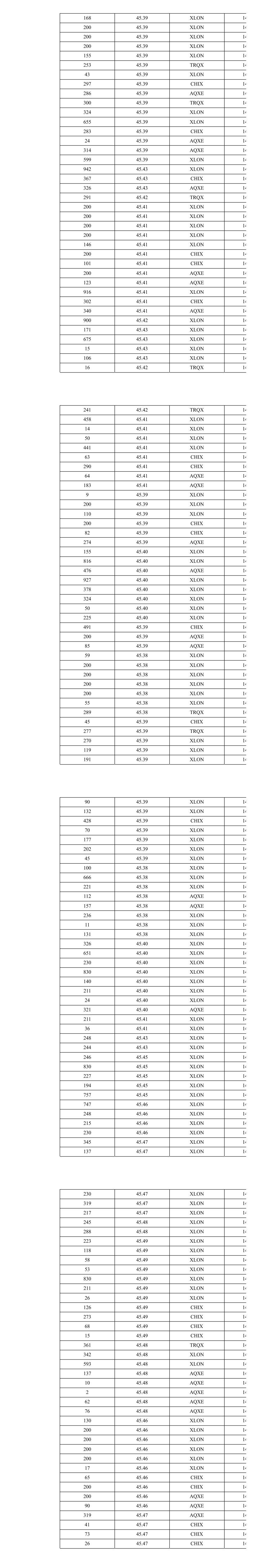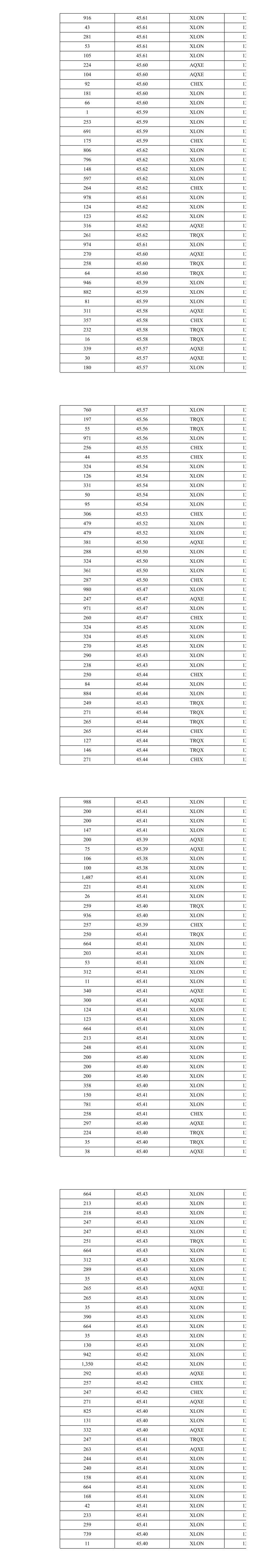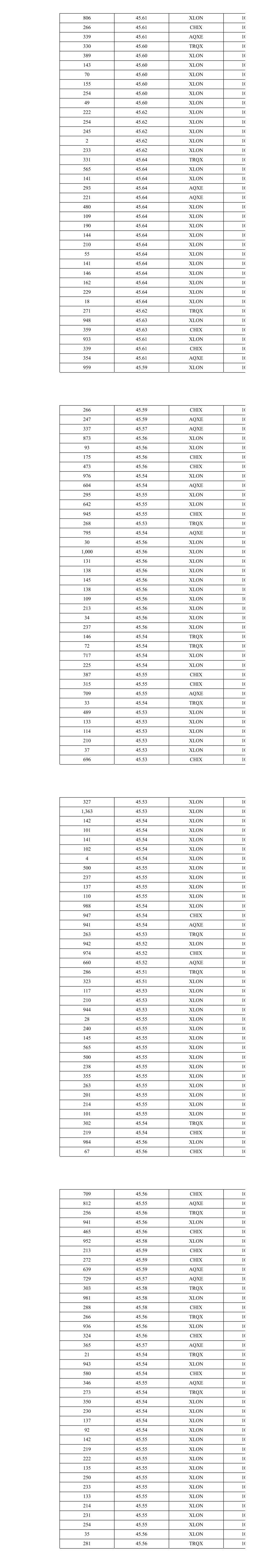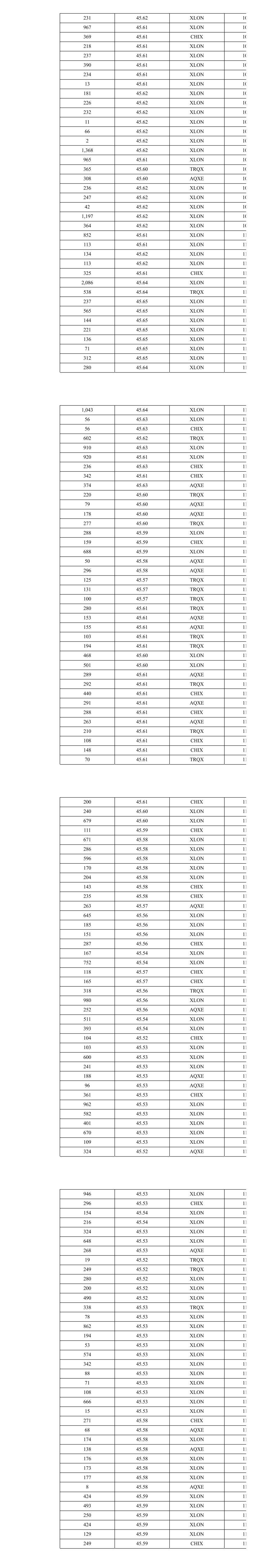 916 45.61 XLON 13 43 45.61 XLON 13 281 45.61 XLON 13 53 45.61 XLON 13 105 45.61 XLON 13 224 45.60 AQXE 13 104 45.60 AQXE 13 92 45.60 CHIX 13 181 45.60 XLON 13 66 45.60 XLON 13 1 45.59 XLON 13 253 45.59 XLON 13 691 45.59 XLON 13 175 45.59 CHIX 13 806 45.62 XLON 13 796 45.62 XLON 13 148 45.62 XLON 13 597 45.62 XLON 13 264 45.62 CHIX 13 978 45.61 XLON 13 124 45.62 XLON 13 123 45.62 XLON 13 316 45.62 AQXE 13 261 45.62 TRQX 13 974 45.61 XLON 13 270 45.60 AQXE 13 258 45.60 TRQX 13 64 45.60 TRQX 13 946 45.59 XLON 13 882 45.59 XLON 13 81 45.59 XLON 13 311 45.58 AQXE 13 357 45.58 CHIX 13 232 45.58 TRQX 13 16 45.58 TRQX 13 339 45.57 AQXE 13 30 45.57 AQXE 13 180 45.57 XLON 13 760 45.57 XLON 13 197 45.56 TRQX 13 55 45.56 TRQX 13 971 45.56 XLON 13 256 45.55 CHIX 13 44 45.55 CHIX 13 324 45.54 XLON 13 126 45.54 XLON 13 331 45.54 XLON 13 50 45.54 XLON 13 95 45.54 XLON 13 306 45.53 CHIX 13 479 45.52 XLON 13 479 45.52 XLON 13 381 45.50 AQXE 13 288 45.50 XLON 13 324 45.50 XLON 13 361 45.50 XLON 13 287 45.50 CHIX 13 980 45.47 XLON 13 247 45.47 AQXE 13 971 45.47 XLON 13 260 45.47 CHIX 13 324 45.45 XLON 13 324 45.45 XLON 13 270 45.45 XLON 13 290 45.43 XLON 13 238 45.43 XLON 13 250 45.44 CHIX 13 84 45.44 XLON 13 884 45.44 XLON 13 249 45.43 TRQX 13 271 45.44 TRQX 13 265 45.44 TRQX 13 265 45.44 CHIX 13 127 45.44 TRQX 13 146 45.44 TRQX 13 271 45.44 CHIX 13 988 45.43 XLON 13 200 45.41 XLON 13 200 45.41 XLON 13 147 45.41 XLON 13 200 45.39 AQXE 13 75 45.39 AQXE 13 106 45.38 XLON 13 100 45.38 XLON 13 1,487 45.41 XLON 13 221 45.41 XLON 13 26 45.41 XLON 13 259 45.40 TRQX 13 936 45.40 XLON 13 257 45.39 CHIX 13 250 45.41 TRQX 13 664 45.41 XLON 13 203 45.41 XLON 13 53 45.41 XLON 13 312 45.41 XLON 13 11 45.41 XLON 13 340 45.41 AQXE 13 300 45.41 AQXE 13 124 45.41 XLON 13 123 45.41 XLON 13 664 45.41 XLON 13 213 45.41 XLON 13 248 45.41 XLON 13 200 45.40 XLON 13 200 45.40 XLON 13 200 45.40 XLON 13 358 45.40 XLON 13 150 45.41 XLON 13 781 45.41 XLON 13 258 45.41 CHIX 13 297 45.40 AQXE 13 224 45.40 TRQX 13 35 45.40 TRQX 13 38 45.40 AQXE 13 664 45.43 XLON 13 213 45.43 XLON 13 218 45.43 XLON 13 247 45.43 XLON 13 247 45.43 XLON 13 251 45.43 TRQX 13 664 45.43 XLON 13 312 45.43 XLON 13 289 45.43 XLON 13 35 45.43 XLON 13 265 45.43 AQXE 13 265 45.43 XLON 13 35 45.43 XLON 13 390 45.43 XLON 13 664 45.43 XLON 13 35 45.43 XLON 13 130 45.43 XLON 13 942 45.42 XLON 13 1,350 45.42 XLON 13 292 45.43 AQXE 13 257 45.42 CHIX 13 247 45.42 CHIX 13 271 45.41 AQXE 13 825 45.40 XLON 13 131 45.40 XLON 13 332 45.40 AQXE 13 247 45.41 TRQX 13 263 45.41 AQXE 13 244 45.41 XLON 13 240 45.41 XLON 13 158 45.41 XLON 13 664 45.41 XLON 13 168 45.41 XLON 13 42 45.41 XLON 13 233 45.41 XLON 13 259 45.41 XLON 13 739 45.40 XLON 13 11 45.40 XLON 13