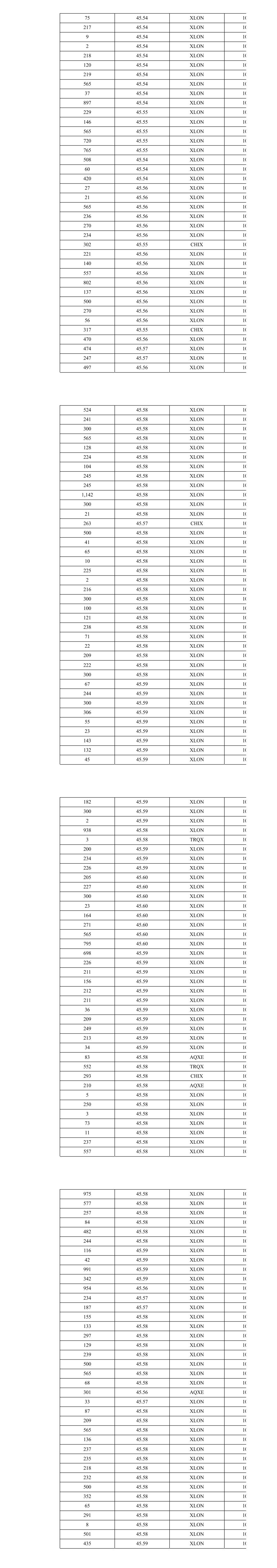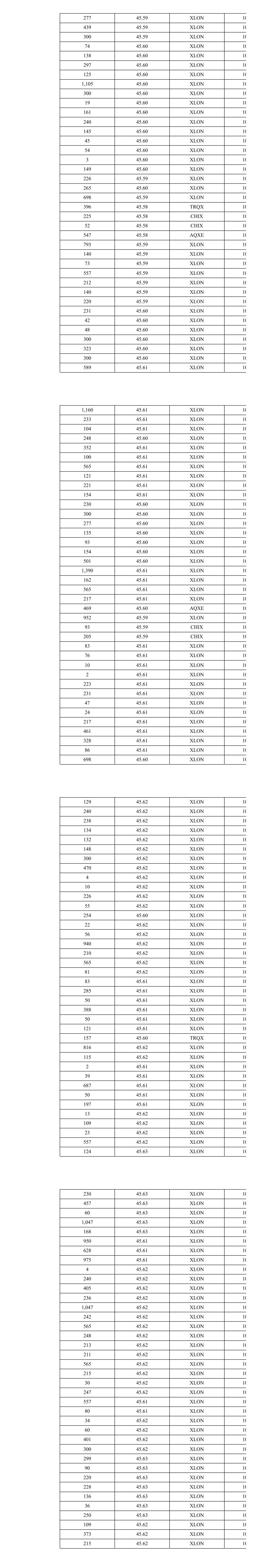 250 45.56 XLON 10 565 45.56 XLON 10 138 45.56 XLON 10 313 45.56 CHIX 10 397 45.56 AQXE 10 223 45.56 XLON 10 24 45.56 XLON 10 242 45.56 XLON 10 5 45.56 XLON 10 923 45.55 XLON 10 159 45.55 XLON 10 279 45.55 XLON 10 158 45.55 XLON 10 142 45.55 XLON 10 137 45.55 XLON 10 158 45.55 XLON 10 136 45.55 XLON 10 158 45.55 XLON 10 139 45.55 XLON 10 221 45.55 XLON 10 157 45.55 XLON 10 219 45.55 XLON 10 137 45.55 XLON 10 138 45.55 XLON 10 30 45.56 XLON 10 158 45.56 XLON 10 71 45.56 XLON 10 32 45.56 XLON 10 565 45.56 XLON 10 252 45.56 XLON 10 104 45.58 XLON 10 168 45.58 XLON 10 210 45.58 XLON 10 439 45.58 XLON 10 231 45.58 XLON 10 190 45.58 XLON 10 214 45.58 XLON 10 421 45.58 XLON 10 180 45.58 XLON 10 252 45.58 XLON 10 237 45.58 XLON 10 172 45.58 XLON 10 269 45.58 XLON 10 200 45.58 XLON 10 175 45.58 XLON 10 980 45.57 XLON 10 294 45.56 TRQX 10 327 45.56 CHIX 10 209 45.56 CHIX 10 604 45.56 AQXE 10 937 45.57 XLON 10 248 45.57 XLON 10 236 45.57 XLON 10 188 45.57 XLON 10 280 45.57 XLON 10 565 45.57 XLON 10 210 45.57 XLON 10 250 45.57 XLON 10 150 45.58 XLON 10 565 45.58 XLON 10 526 45.58 XLON 10 324 45.57 XLON 10 631 45.57 XLON 10 248 45.56 TRQX 10 409 45.56 CHIX 10 133 45.56 AQXE 10 333 45.56 AQXE 10 741 45.56 XLON 10 177 45.56 XLON 10 208 45.56 XLON 10 202 45.56 XLON 10 203 45.56 XLON 10 227 45.57 XLON 10 960 45.57 XLON 10 190 45.57 XLON 10 201 45.57 XLON 10 201 45.57 XLON 10 201 45.57 XLON 10 253 45.57 XLON 10 565 45.57 XLON 10 240 45.57 XLON 10 93 45.57 XLON 10 192 45.57 XLON 10 489 45.57 XLON 10 184 45.57 XLON 10 565 45.57 XLON 10 182 45.57 XLON 10 565 45.57 XLON 10 149 45.58 XLON 10 50 45.58 XLON 10 201 45.58 XLON 10 45 45.58 XLON 10 960 45.58 XLON 10 145 45.58 XLON 10 536 45.58 XLON 10 987 45.57 XLON 10 299 45.56 TRQX 10 48 45.56 CHIX 10 446 45.56 CHIX 10 664 45.56 AQXE 10 200 45.56 XLON 10 186 45.56 XLON 10 380 45.56 XLON 10 166 45.56 XLON 10 535 45.55 XLON 10 966 45.56 CHIX 10 253 45.57 XLON 10 213 45.57 XLON 10 132 45.57 XLON 10 200 45.57 XLON 10 220 45.57 XLON 10 133 45.57 XLON 10 188 45.57 XLON 10 141 45.57 XLON 10 232 45.57 XLON 10 242 45.57 XLON 10 169 45.57 XLON 10 141 45.57 XLON 10 248 45.57 XLON 10 252 45.57 XLON 10 857 45.57 XLON 10 140 45.57 XLON 10 229 45.57 XLON 10 242 45.57 XLON 10 269 45.56 TRQX 10 247 45.57 XLON 10 508 45.57 XLON 10 388 45.55 XLON 10 269 45.54 TRQX 10 328 45.54 CHIX 10 278 45.54 AQXE 10 306 45.53 XLON 10 611 45.53 XLON 10 865 45.50 XLON 10 97 45.50 XLON 10 247 45.51 CHIX 10 105 45.51 AQXE 10 64 45.51 AQXE 10 105 45.51 AQXE 10 148 45.49 CHIX 10 639 45.49 CHIX 10 408 45.49 AQXE 10 42 45.49 AQXE 10 209 45.48 XLON 10 761 45.48 XLON 10 164 45.49 AQXE 10 4 45.52 XLON 10 220 45.52 XLON 10 233 45.52 XLON 10 162 45.52 XLON 10 169 45.52 XLON 10 270 45.54 TRQX 10