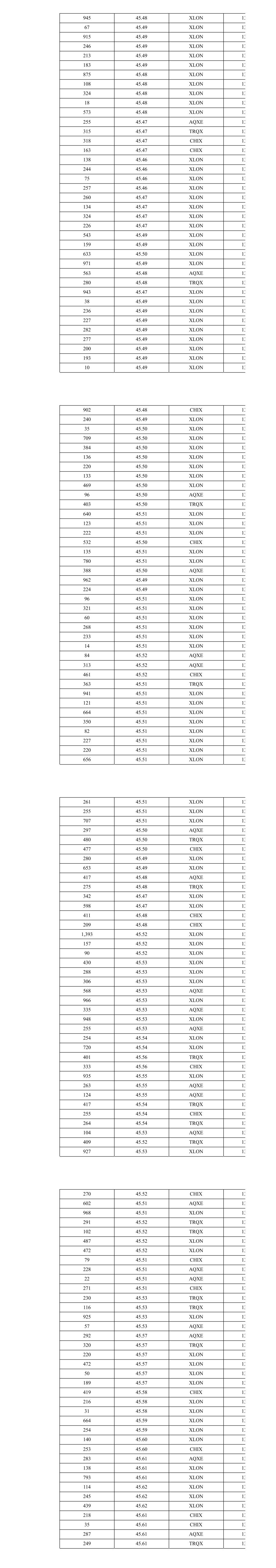 945 45.48 XLON 13 67 45.49 XLON 13 915 45.49 XLON 13 246 45.49 XLON 13 213 45.49 XLON 13 183 45.49 XLON 13 875 45.48 XLON 13 108 45.48 XLON 13 324 45.48 XLON 13 18 45.48 XLON 13 573 45.48 XLON 13 255 45.47 AQXE 13 315 45.47 TRQX 13 318 45.47 CHIX 13 163 45.47 CHIX 13 138 45.46 XLON 13 244 45.46 XLON 13 75 45.46 XLON 13 257 45.46 XLON 13 260 45.47 XLON 13 134 45.47 XLON 13 324 45.47 XLON 13 226 45.47 XLON 13 543 45.49 XLON 13 159 45.49 XLON 13 633 45.50 XLON 13 971 45.49 XLON 13 563 45.48 AQXE 13 280 45.48 TRQX 13 943 45.47 XLON 13 38 45.49 XLON 13 236 45.49 XLON 13 227 45.49 XLON 13 282 45.49 XLON 13 277 45.49 XLON 13 200 45.49 XLON 13 193 45.49 XLON 13 10 45.49 XLON 13 902 45.48 CHIX 13 240 45.49 XLON 13 35 45.50 XLON 13 709 45.50 XLON 13 384 45.50 XLON 13 136 45.50 XLON 13 220 45.50 XLON 13 133 45.50 XLON 13 469 45.50 XLON 13 96 45.50 AQXE 13 403 45.50 TRQX 13 640 45.51 XLON 13 123 45.51 XLON 13 222 45.51 XLON 13 532 45.50 CHIX 13 135 45.51 XLON 13 780 45.51 XLON 13 388 45.50 AQXE 13 962 45.49 XLON 13 224 45.49 XLON 13 96 45.51 XLON 13 321 45.51 XLON 13 60 45.51 XLON 13 268 45.51 XLON 13 233 45.51 XLON 13 14 45.51 XLON 13 84 45.52 AQXE 13 313 45.52 AQXE 13 461 45.52 CHIX 13 363 45.51 TRQX 13 941 45.51 XLON 13 121 45.51 XLON 13 664 45.51 XLON 13 350 45.51 XLON 13 82 45.51 XLON 13 227 45.51 XLON 13 220 45.51 XLON 13 656 45.51 XLON 13 261 45.51 XLON 13 255 45.51 XLON 13 707 45.51 XLON 13 297 45.50 AQXE 13 480 45.50 TRQX 13 477 45.50 CHIX 13 280 45.49 XLON 13 653 45.49 XLON 13 417 45.48 AQXE 13 275 45.48 TRQX 13 342 45.47 XLON 13 598 45.47 XLON 13 411 45.48 CHIX 13 209 45.48 CHIX 13 1,393 45.52 XLON 13 157 45.52 XLON 13 90 45.52 XLON 13 430 45.53 XLON 13 288 45.53 XLON 13 306 45.53 XLON 13 568 45.53 AQXE 13 966 45.53 XLON 13 335 45.53 AQXE 13 948 45.53 XLON 13 255 45.53 AQXE 13 254 45.54 XLON 13 720 45.54 XLON 13 401 45.56 TRQX 13 333 45.56 CHIX 13 935 45.55 XLON 13 263 45.55 AQXE 13 124 45.55 AQXE 13 417 45.54 TRQX 13 255 45.54 CHIX 13 264 45.54 TRQX 13 104 45.53 AQXE 13 409 45.52 TRQX 13 927 45.53 XLON 13 270 45.52 CHIX 13 602 45.51 AQXE 13 968 45.51 XLON 13 291 45.52 TRQX 13 102 45.52 TRQX 13 487 45.52 XLON 13 472 45.52 XLON 13 79 45.51 CHIX 13 228 45.51 AQXE 13 22 45.51 AQXE 13 271 45.51 CHIX 13 230 45.53 TRQX 13 116 45.53 TRQX 13 925 45.53 XLON 13 57 45.53 AQXE 13 292 45.57 AQXE 13 320 45.57 TRQX 13 220 45.57 XLON 13 472 45.57 XLON 13 50 45.57 XLON 13 189 45.57 XLON 13 419 45.58 CHIX 13 216 45.58 XLON 13 31 45.58 XLON 13 664 45.59 XLON 13 254 45.59 XLON 13 140 45.60 XLON 13 253 45.60 CHIX 13 283 45.61 AQXE 13 138 45.61 XLON 13 793 45.61 XLON 13 114 45.62 XLON 13 245 45.62 XLON 13 439 45.62 XLON 13 218 45.61 CHIX 13 35 45.61 CHIX 13 287 45.61 AQXE 13 249 45.61 TRQX 13