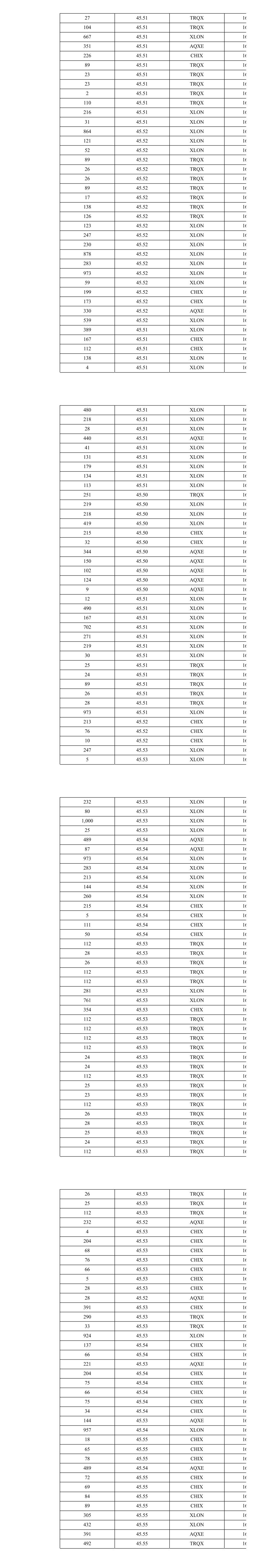 404 45.59 TRQX 16 578 45.59 XLON 16 355 45.59 XLON 16 126 45.59 XLON 16 219 45.59 XLON 16 943 45.59 XLON 16 778 45.59 XLON 16 135 45.59 XLON 16 216 45.59 XLON 16 168 45.59 XLON 16 240 45.59 XLON 16 778 45.59 XLON 16 125 45.59 XLON 16 210 45.59 XLON 16 235 45.59 XLON 16 738 45.59 XLON 16 252 45.59 AQXE 16 240 45.59 XLON 16 229 45.59 XLON 16 778 45.59 XLON 16 222 45.59 XLON 16 500 45.59 XLON 16 117 45.59 XLON 16 203 45.59 XLON 16 240 45.59 XLON 16 252 45.59 XLON 16 247 45.59 XLON 16 700 45.59 XLON 16 459 45.59 XLON 16 875 45.59 XLON 16 448 45.58 XLON 16 479 45.58 XLON 16 278 45.57 TRQX 16 868 45.57 XLON 16 463 45.57 CHIX 16 322 45.57 AQXE 16 438 45.55 TRQX 16 4 45.55 TRQX 16 298 45.55 XLON 16 973 45.55 XLON 16 200 45.55 AQXE 16 135 45.55 AQXE 16 973 45.54 XLON 16 137 45.54 XLON 16 216 45.54 XLON 16 227 45.54 XLON 16 579 45.54 XLON 16 49 45.54 XLON 16 322 45.54 XLON 16 633 45.54 XLON 16 349 45.55 TRQX 16 456 45.55 CHIX 16 604 45.54 XLON 16 2 45.54 AQXE 16 469 45.54 AQXE 16 229 45.55 XLON 16 246 45.55 XLON 16 205 45.55 XLON 16 381 45.55 XLON 16 141 45.55 XLON 16 220 45.55 XLON 16 181 45.55 XLON 16 122 45.55 AQXE 16 113 45.55 AQXE 16 12 45.55 AQXE 16 130 45.55 XLON 16 117 45.55 XLON 16 120 45.55 AQXE 16 111 45.55 AQXE 16 414 45.55 AQXE 16 120 45.55 AQXE 16 121 45.55 AQXE 16 261 45.55 AQXE 16 131 45.55 AQXE 16 459 45.54 TRQX 16 548 45.54 XLON 16 218 45.54 CHIX 16 228 45.54 CHIX 16 214 45.54 AQXE 16 973 45.55 XLON 16 248 45.55 XLON 16 214 45.55 XLON 16 212 45.55 XLON 16 240 45.55 XLON 16 252 45.55 XLON 16 973 45.55 XLON 16 135 45.55 XLON 16 8 45.54 AQXE 16 145 45.54 XLON 16 88 45.54 XLON 16 89 45.54 XLON 16 11 45.54 AQXE 16 158 45.54 AQXE 16 324 45.54 XLON 16 292 45.54 XLON 16 28 45.54 AQXE 16 62 45.55 XLON 16 973 45.55 XLON 16 250 45.55 XLON 16 121 45.55 AQXE 16 432 45.55 XLON 16 117 45.55 XLON 16 392 45.55 XLON 16 581 45.55 XLON 16 241 45.55 XLON 16 48 45.55 XLON 16 214 45.54 TRQX 16 78 45.54 TRQX 16 757 45.54 XLON 16 248 45.54 CHIX 16 378 45.54 AQXE 16 121 45.53 XLON 16 240 45.53 XLON 16 675 45.53 XLON 16 383 45.53 XLON 16 105 45.53 AQXE 16 388 45.53 AQXE 16 283 45.52 TRQX 16 139 45.52 XLON 16 529 45.52 XLON 16 279 45.52 XLON 16 372 45.52 AQXE 16 605 45.52 XLON 16 211 45.51 CHIX 16 36 45.51 CHIX 16 248 45.51 XLON 16 246 45.52 XLON 16 777 45.52 XLON 16 196 45.52 XLON 16 204 45.52 XLON 16 116 45.52 AQXE 16 104 45.52 AQXE 16 10 45.52 AQXE 16 218 45.52 XLON 16 249 45.52 XLON 16 6 45.52 AQXE 16 780 45.52 XLON 16 513 45.52 AQXE 16 541 45.51 XLON 16 26 45.51 TRQX 16 26 45.51 TRQX 16 122 45.51 XLON 16 216 45.51 XLON 16 973 45.51 XLON 16 209 45.51 XLON 16 3 45.51 XLON 16 217 45.51 XLON 16 240 45.51 XLON 16 384 45.51 CHIX 16 351 45.51 AQXE 16 89 45.51 TRQX 16 27 45.51 TRQX 16