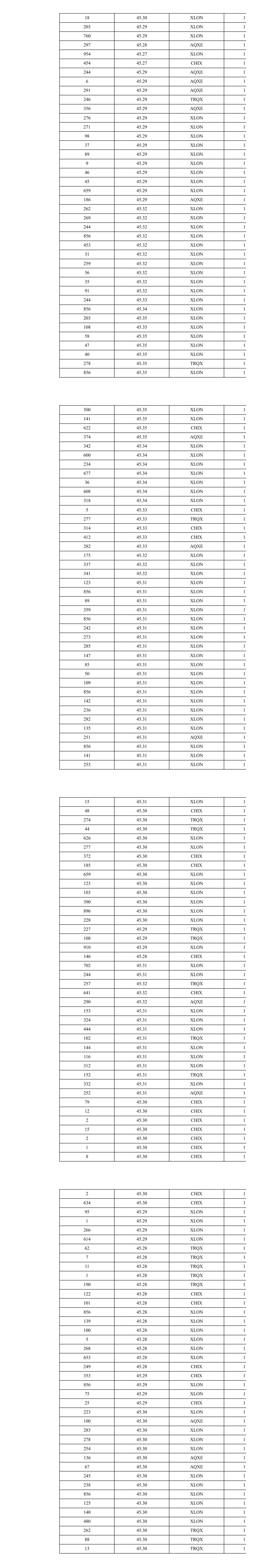18 45.30 XLON 11 203 45.29 XLON 11 760 45.29 XLON 11 297 45.28 AQXE 11 954 45.27 XLON 11 454 45.27 CHIX 11 244 45.29 AQXE 11 6 45.29 AQXE 11 291 45.29 AQXE 11 246 45.29 TRQX 11 356 45.29 AQXE 11 276 45.29 XLON 11 271 45.29 XLON 11 98 45.29 XLON 11 37 45.29 XLON 11 89 45.29 XLON 11 9 45.29 XLON 11 46 45.29 XLON 11 45 45.29 XLON 11 659 45.29 XLON 11 186 45.29 AQXE 11 262 45.32 XLON 11 269 45.32 XLON 11 244 45.32 XLON 11 856 45.32 XLON 11 453 45.32 XLON 11 31 45.32 XLON 11 259 45.32 XLON 11 56 45.32 XLON 11 35 45.32 XLON 11 91 45.32 XLON 11 244 45.33 XLON 11 856 45.34 XLON 11 203 45.35 XLON 11 108 45.35 XLON 11 58 45.35 XLON 11 47 45.35 XLON 11 40 45.35 XLON 11 278 45.35 TRQX 11 856 45.35 XLON 11 500 45.35 XLON 11 141 45.35 XLON 11 622 45.35 CHIX 11 374 45.35 AQXE 11 342 45.34 XLON 11 600 45.34 XLON 11 234 45.34 XLON 11 677 45.34 XLON 11 36 45.34 XLON 11 608 45.34 XLON 11 318 45.34 XLON 11 5 45.33 CHIX 11 277 45.33 TRQX 11 314 45.33 CHIX 11 412 45.33 CHIX 11 282 45.33 AQXE 11 175 45.32 XLON 11 337 45.32 XLON 11 341 45.32 XLON 11 123 45.31 XLON 11 856 45.31 XLON 11 89 45.31 XLON 11 359 45.31 XLON 11 856 45.31 XLON 11 242 45.31 XLON 11 273 45.31 XLON 11 285 45.31 XLON 11 147 45.31 XLON 11 85 45.31 XLON 11 50 45.31 XLON 11 109 45.31 XLON 11 856 45.31 XLON 11 142 45.31 XLON 11 236 45.31 XLON 11 282 45.31 XLON 11 135 45.31 XLON 11 251 45.31 AQXE 11 856 45.31 XLON 11 141 45.31 XLON 11 253 45.31 XLON 11 15 45.31 XLON 11 48 45.30 CHIX 11 274 45.30 TRQX 11 44 45.30 TRQX 11 626 45.30 XLON 11 277 45.30 XLON 11 372 45.30 CHIX 11 185 45.30 CHIX 11 659 45.30 XLON 11 123 45.30 XLON 11 103 45.30 XLON 11 390 45.30 XLON 11 896 45.30 XLON 11 228 45.30 XLON 11 227 45.29 TRQX 11 108 45.29 TRQX 11 910 45.29 XLON 11 146 45.28 CHIX 11 702 45.31 XLON 11 244 45.31 XLON 11 257 45.32 TRQX 11 641 45.32 CHIX 11 290 45.32 AQXE 11 153 45.31 XLON 11 324 45.31 XLON 11 444 45.31 XLON 11 102 45.31 TRQX 11 144 45.31 XLON 11 116 45.31 XLON 11 312 45.31 XLON 11 152 45.31 TRQX 11 332 45.31 XLON 11 252 45.31 AQXE 11 79 45.30 CHIX 11 12 45.30 CHIX 11 2 45.30 CHIX 11 15 45.30 CHIX 11 2 45.30 CHIX 11 1 45.30 CHIX 11 8 45.30 CHIX 11 2 45.30 CHIX 11 634 45.30 CHIX 11 95 45.29 XLON 11 1 45.29 XLON 11 266 45.29 XLON 11 614 45.29 XLON 11 62 45.28 TRQX 11 7 45.28 TRQX 11 11 45.28 TRQX 11 1 45.28 TRQX 11 190 45.28 TRQX 11 122 45.28 CHIX 11 101 45.28 CHIX 11 856 45.28 XLON 11 139 45.28 XLON 11 100 45.28 XLON 11 5 45.28 XLON 11 268 45.28 XLON 11 653 45.28 XLON 11 249 45.28 CHIX 11 353 45.29 CHIX 11 856 45.29 XLON 11 75 45.29 XLON 11 25 45.29 CHIX 11 223 45.30 XLON 11 100 45.30 AQXE 11 283 45.30 XLON 11 278 45.30 XLON 11 254 45.30 XLON 11 136 45.30 AQXE 11 67 45.30 AQXE 11 245 45.30 XLON 11 238 45.30 XLON 11 856 45.30 XLON 11 125 45.30 XLON 11 140 45.30 XLON 11 480 45.30 XLON 11 262 45.30 TRQX 11 88 45.30 TRQX 11 13 45.30 TRQX 11