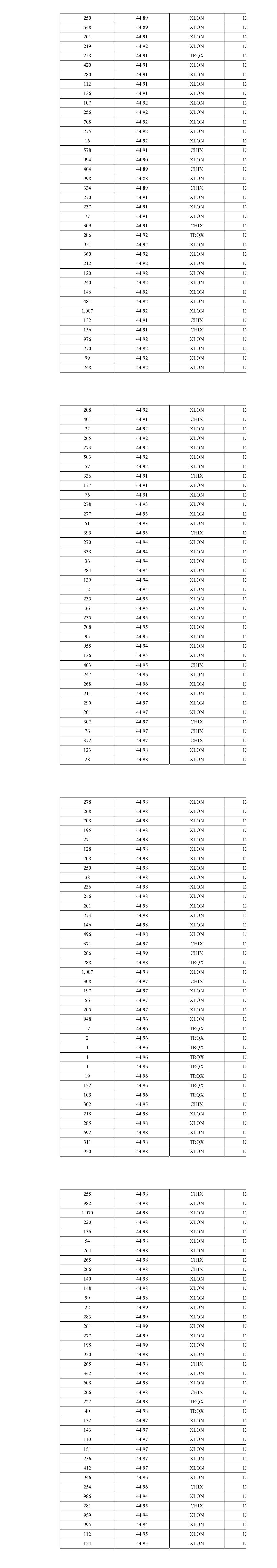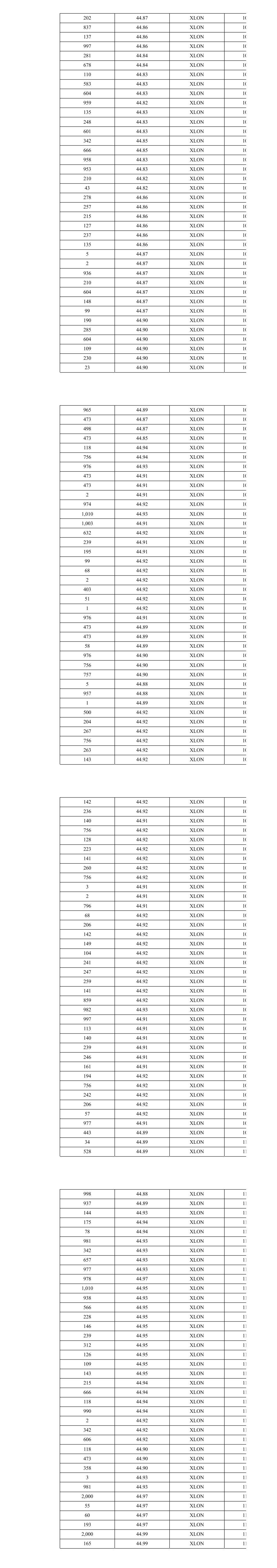 202 44.87 XLON 10 837 44.86 XLON 10 137 44.86 XLON 10 997 44.86 XLON 10 281 44.84 XLON 10 678 44.84 XLON 10 110 44.83 XLON 10 583 44.83 XLON 10 604 44.83 XLON 10 959 44.82 XLON 10 135 44.83 XLON 10 248 44.83 XLON 10 601 44.83 XLON 10 342 44.85 XLON 10 666 44.85 XLON 10 958 44.83 XLON 10 953 44.83 XLON 10 210 44.82 XLON 10 43 44.82 XLON 10 278 44.86 XLON 10 257 44.86 XLON 10 215 44.86 XLON 10 127 44.86 XLON 10 237 44.86 XLON 10 135 44.86 XLON 10 5 44.87 XLON 10 2 44.87 XLON 10 936 44.87 XLON 10 210 44.87 XLON 10 604 44.87 XLON 10 148 44.87 XLON 10 99 44.87 XLON 10 190 44.90 XLON 10 285 44.90 XLON 10 604 44.90 XLON 10 109 44.90 XLON 10 230 44.90 XLON 10 23 44.90 XLON 10 965 44.89 XLON 10 473 44.87 XLON 10 498 44.87 XLON 10 473 44.85 XLON 10 118 44.94 XLON 10 756 44.94 XLON 10 976 44.93 XLON 10 473 44.91 XLON 10 473 44.91 XLON 10 2 44.91 XLON 10 974 44.92 XLON 10 1,010 44.93 XLON 10 1,003 44.91 XLON 10 632 44.92 XLON 10 239 44.91 XLON 10 195 44.91 XLON 10 99 44.92 XLON 10 68 44.92 XLON 10 2 44.92 XLON 10 403 44.92 XLON 10 51 44.92 XLON 10 1 44.92 XLON 10 976 44.91 XLON 10 473 44.89 XLON 10 473 44.89 XLON 10 58 44.89 XLON 10 976 44.90 XLON 10 756 44.90 XLON 10 757 44.90 XLON 10 5 44.88 XLON 10 957 44.88 XLON 10 1 44.89 XLON 10 500 44.92 XLON 10 204 44.92 XLON 10 267 44.92 XLON 10 756 44.92 XLON 10 263 44.92 XLON 10 143 44.92 XLON 10 142 44.92 XLON 10 236 44.92 XLON 10 140 44.91 XLON 10 756 44.92 XLON 10 128 44.92 XLON 10 223 44.92 XLON 10 141 44.92 XLON 10 260 44.92 XLON 10 756 44.92 XLON 10 3 44.91 XLON 10 2 44.91 XLON 10 796 44.91 XLON 10 68 44.92 XLON 10 206 44.92 XLON 10 142 44.92 XLON 10 149 44.92 XLON 10 104 44.92 XLON 10 241 44.92 XLON 10 247 44.92 XLON 10 259 44.92 XLON 10 141 44.92 XLON 10 859 44.92 XLON 10 982 44.93 XLON 10 997 44.91 XLON 10 113 44.91 XLON 10 140 44.91 XLON 10 239 44.91 XLON 10 246 44.91 XLON 10 161 44.91 XLON 10 194 44.92 XLON 10 756 44.92 XLON 10 242 44.92 XLON 10 206 44.92 XLON 10 57 44.92 XLON 10 977 44.91 XLON 10 443 44.89 XLON 10 34 44.89 XLON 11 528 44.89 XLON 11 998 44.88 XLON 11 937 44.89 XLON 11 144 44.93 XLON 11 175 44.94 XLON 11 78 44.94 XLON 11 981 44.93 XLON 11 342 44.93 XLON 11 657 44.93 XLON 11 977 44.93 XLON 11 978 44.97 XLON 11 1,010 44.95 XLON 11 938 44.93 XLON 11 566 44.95 XLON 11 228 44.95 XLON 11 146 44.95 XLON 11 239 44.95 XLON 11 312 44.95 XLON 11 126 44.95 XLON 11 109 44.95 XLON 11 143 44.95 XLON 11 215 44.94 XLON 11 666 44.94 XLON 11 118 44.94 XLON 11 990 44.94 XLON 11 2 44.92 XLON 11 342 44.92 XLON 11 606 44.92 XLON 11 118 44.90 XLON 11 473 44.90 XLON 11 358 44.90 XLON 11 3 44.93 XLON 11 981 44.93 XLON 11 2,000 44.97 XLON 11 55 44.97 XLON 11 60 44.97 XLON 11 193 44.97 XLON 11 2,000 44.99 XLON 11 165 44.99 XLON 11